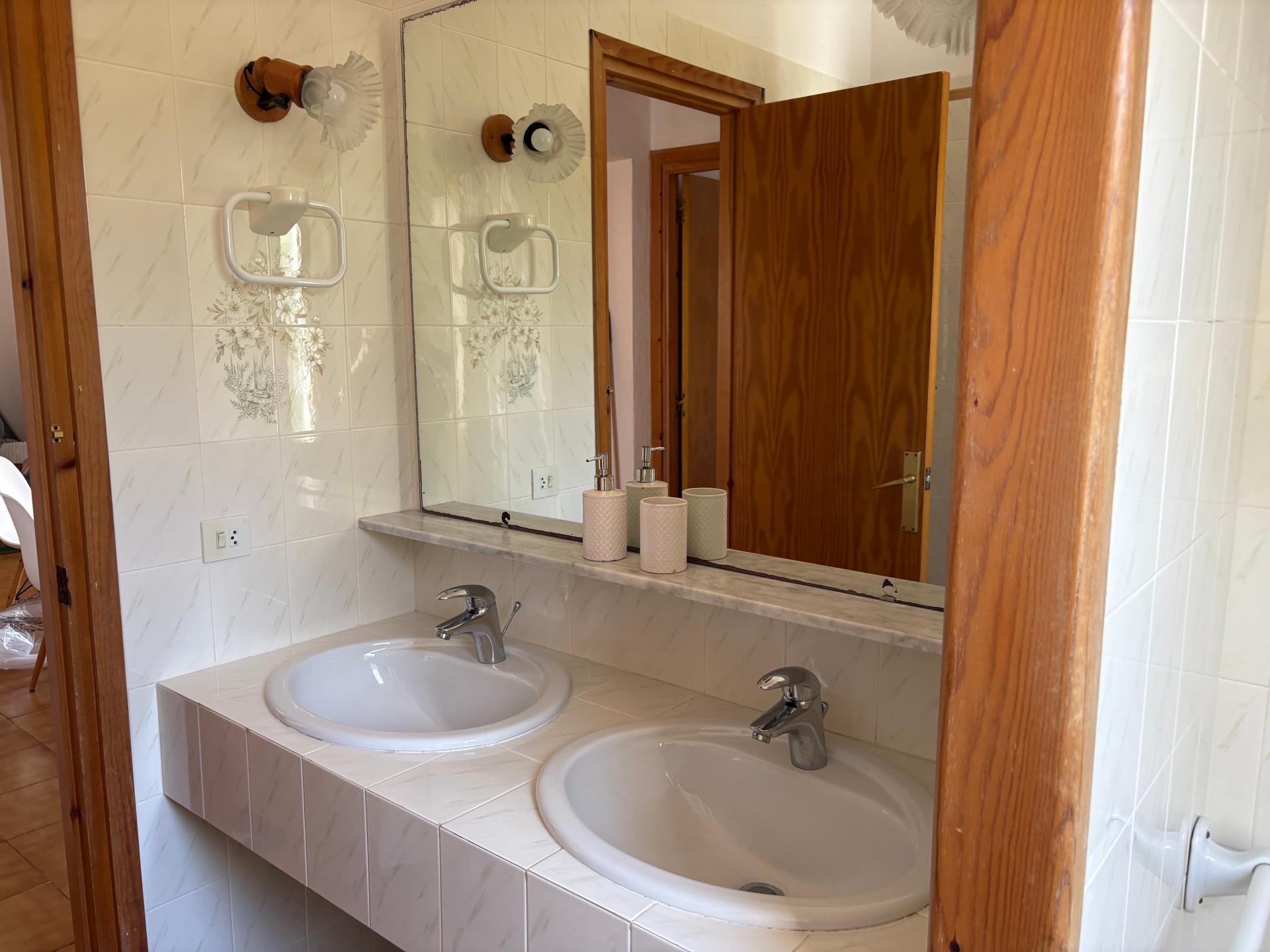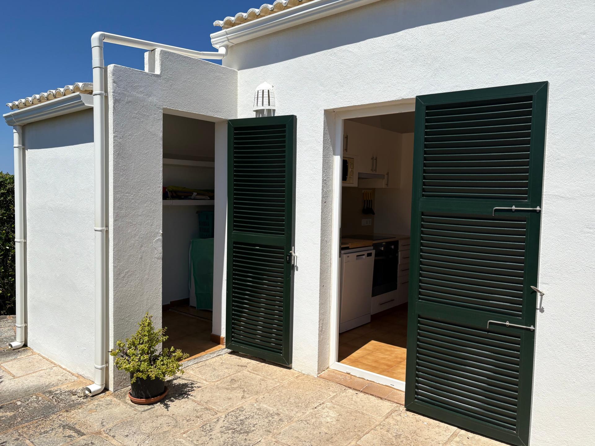 On the west coast of Menorca, with its expansive shoreline of clear, blue water, we offer you – for your enjoyment or family business – this remarkable: Villa with 3 double bedrooms; 2 full bathrooms; fully equipped kitchen; 2 terraces (north/south); living room; private garage; laundry room; pre-installed air conditioning wiring; communal pool and garden. For your enjoyment, it’s just a few meters from the coastline and blue beaches!