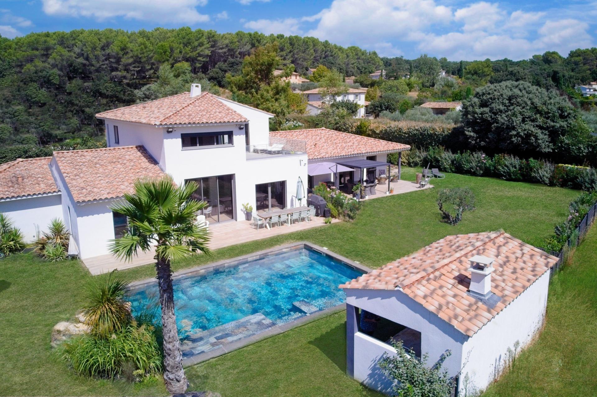 Cette superbe maison contemporaine d’architecte, construite en 2003, offre environ 260 m² d’élégance et de confort, complétés par une dépendance de 36 m², un garage et deux abris. Idéalement placée à 7min de l'hypercentre d'Aix-en-Provence et à pied des commerces de la Bastide sur la route du Puy-Sainte-Reparade. Orientée sud-ouest sur une parcelle de 2500 m², elle bénéficie de vastes terrasses en bois baignées de soleil et d’un espace extérieur paysagé avec une piscine béton au sel de 10 x 5 mètres, chauffée et agrémentée de deux cascades dont un spa. Dès l’entrée, vous serez séduit par un immense salon de 100 m² très lumineux, qui s’ouvre sur une cuisine Vogica de 2008 entièrement équipée donnant sur les terrasses. Le rez-de-chaussée comprend également deux bureaux, une buanderie, une salle d’eau avec WC et une grande chambre, qui bénéficie d’une entrée indépendante (possible suite, ou cabinet libéral par exemple). À l’étage, un vaste dégagement dessert quatre chambres, dont deux superbes suites avec dressing, salle de bain, salle d’eau et WC. Cette maison est dotée d’un chauffage au sol thermodynamique chaud/froid installé en 2020, et pour l'eau chaude deux ballons électriques. Permis de construire valide. Taxe foncière 3800€/an. Fosse septique (le tout à l'égout est possible). Eau du canal de Provence. DPE B. Très belles prestations. Appelez-moi à tout moment, je reste disponible avec plaisir pour répondre à vos questions ou convenir d'une visite !