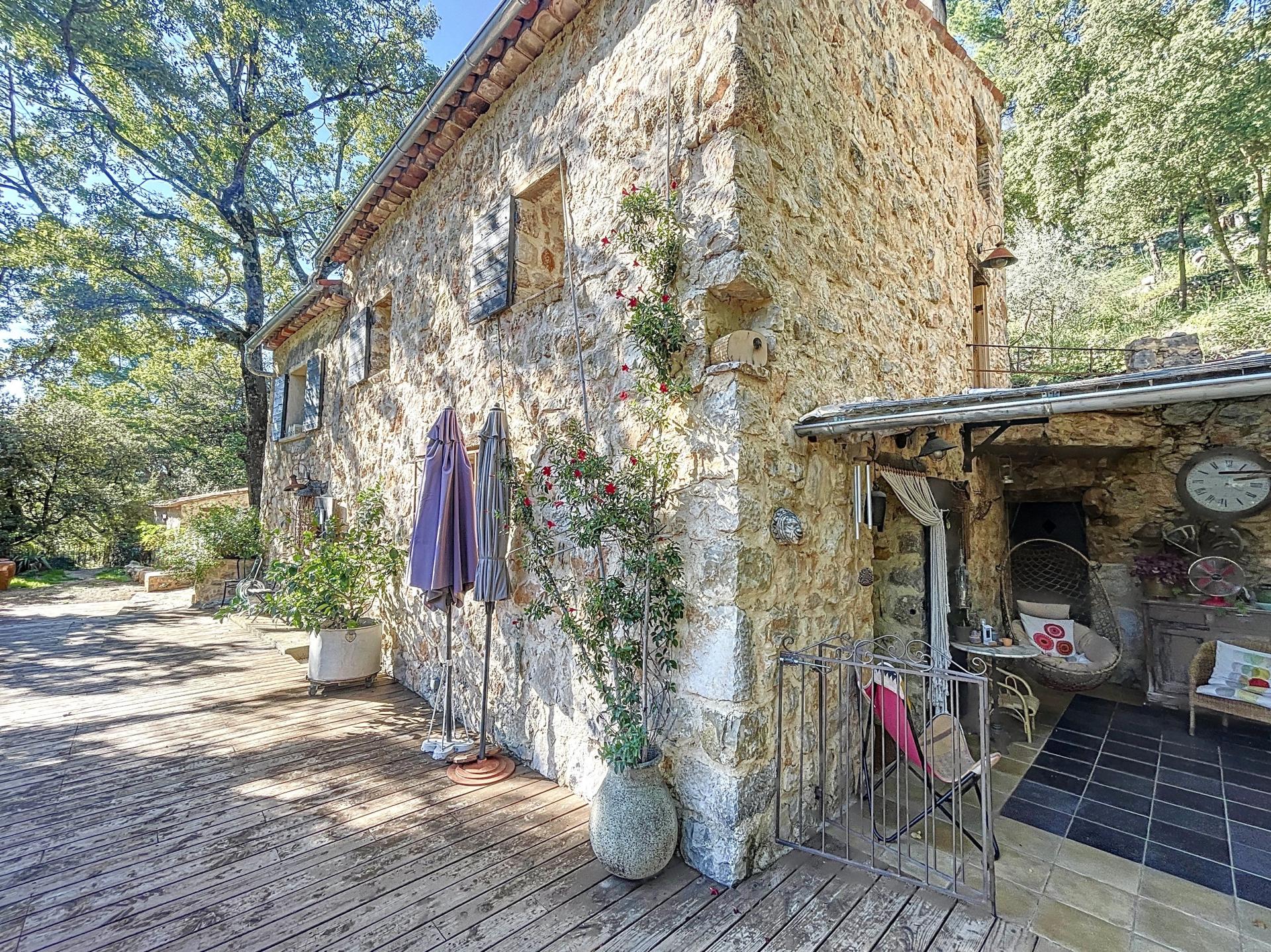 Discover this sumptuous period Bastide, built in 1830 and renovated with care, combining the charm of old and modern comfort. Upon entering the Bastide, you will be welcomed into the main living room, comprising an open kitchen, a living room and a dining room with a wood stove, creating a friendly and warm space. You will also find a kitchen with toilets. The property is distinguished by its magnificent spiral staircase, which serves two rooms separated by a shower room in the Italian mezzanine. At the back of the house, a workshop is also present and can be easily converted into a room. The wooden terrace offers a breathtaking view of the surrounding area, and the very large 23,000 m2 plot with a river will allow you to enjoy a vast natural space and tranquility. The exterior also includes a 25 m2 workshop, perfect for DIY enthusiasts or can be converted into a studio, as well as an outdoor shelter with a jacuzzi for relaxing moments in the middle of nature. Located in Bargemon, a charming Provencal village to discover, this house offers an exceptional quality of life. Bargemon, with its picturesque alleys, rich heritage and authentic atmosphere, is an ideal setting for a main or secondary residence.