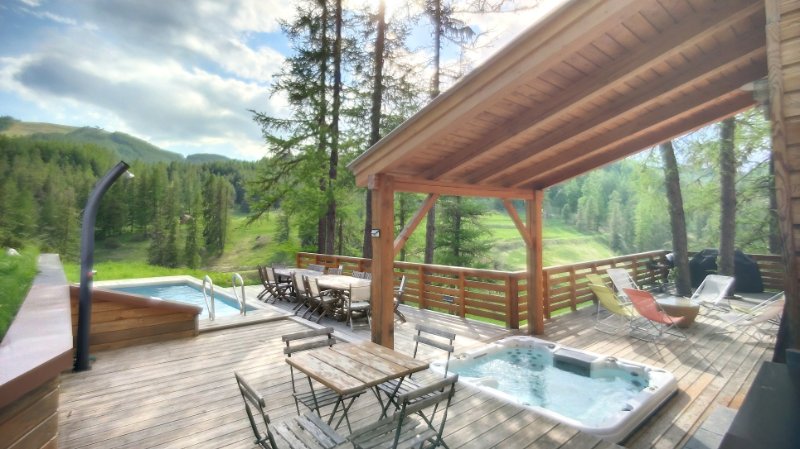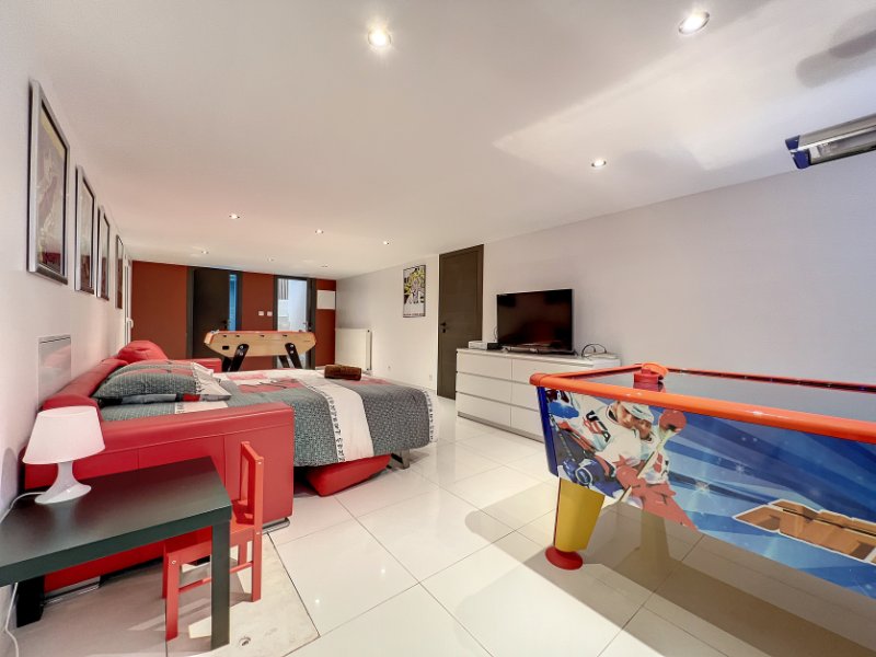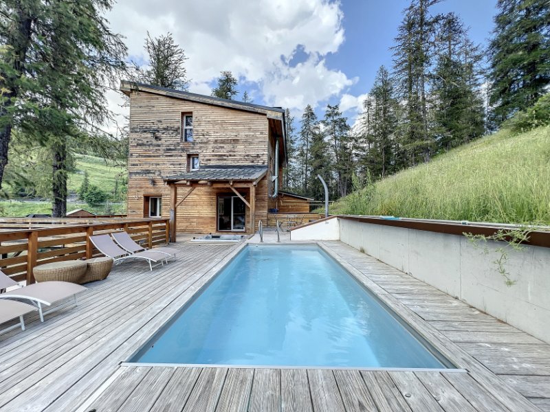 Valberg, at the foot of the Éguilles slopes, a magnificent chalet with over 380m2 of living space, comprising 4 suites, a large living area with open-plan kitchen, dining room and lounge/fireplace. The chalet also features a games room, laundry room, sauna and outdoor heated pool/spa area on a huge terrace with uninterrupted views. A parking area in front of the chalet and an area with a double garage will allow you to welcome your guests with a quick charge for electric vehicles. It's the ideal place to unwind and enjoy the great outdoors. The chalet is also classified as a 5-star ‘meublés de tourisme’ residence, making it an exceptional, high-quality place to stay. (71% tax deduction on turnover). In addition, planning permission has been applied for and approved for a 240 m2 building on the ground floor (with the possibility of conversion, a gym and guaranteed rental income). For nature lovers with all the comforts of home, this is the property for you.