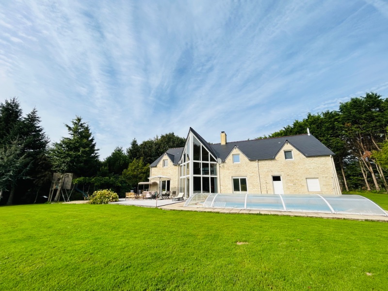 Bien d’exception situé dans le sud Manche près de Granville à environ 45mn de CAEN et de RENNES. La maison d’environ 300m2 de surface habitable dispose, au rez-de-chaussée : - une pièce de vie ouverte de 88m2 avec cuisine, salle et salon, grande cheminée - une chambre avec grand dressing, - une salle d’eau , - 1wc, - 1 petite lingerie, - 1 arrière cuisine - 1 salle de gym - 1 garage débarras - 1 cave à vin à l’étage : - 4 chambres dont une avec suite ( lavabo, baignoire, douche, wc ), 1 autre salle de bain et WC pour 2 chambres et une autre chambre avec cabinet de toilette et wc - 1 grande mezzanine Le tout construit sur un terrain de 20 ha dont 17 ha de bois, 3ha de parc avec plans d’eau avec un gabion, piscine, kiosques, box à cheval , petit herbage, poulailler, etc... Un atelier d’environ 100m2, 2 car-ports pour voitures, un grand abri pour rangement salon de jardin et autres, allée goudronnée ainsi que la cour, grande terrasse en bois sur dalle béton. Photos sur demande