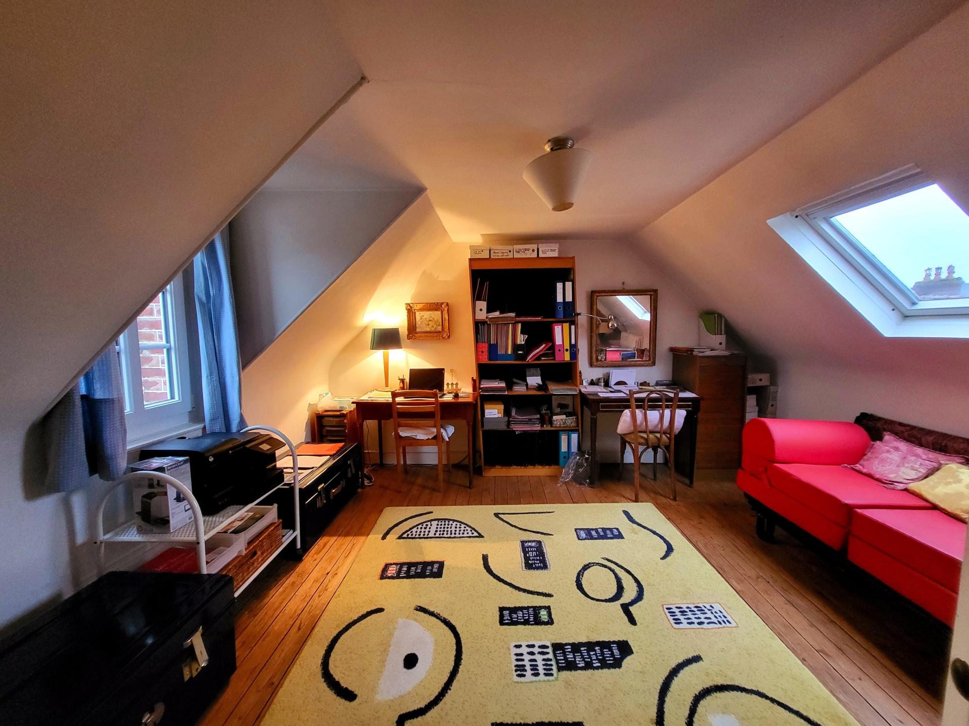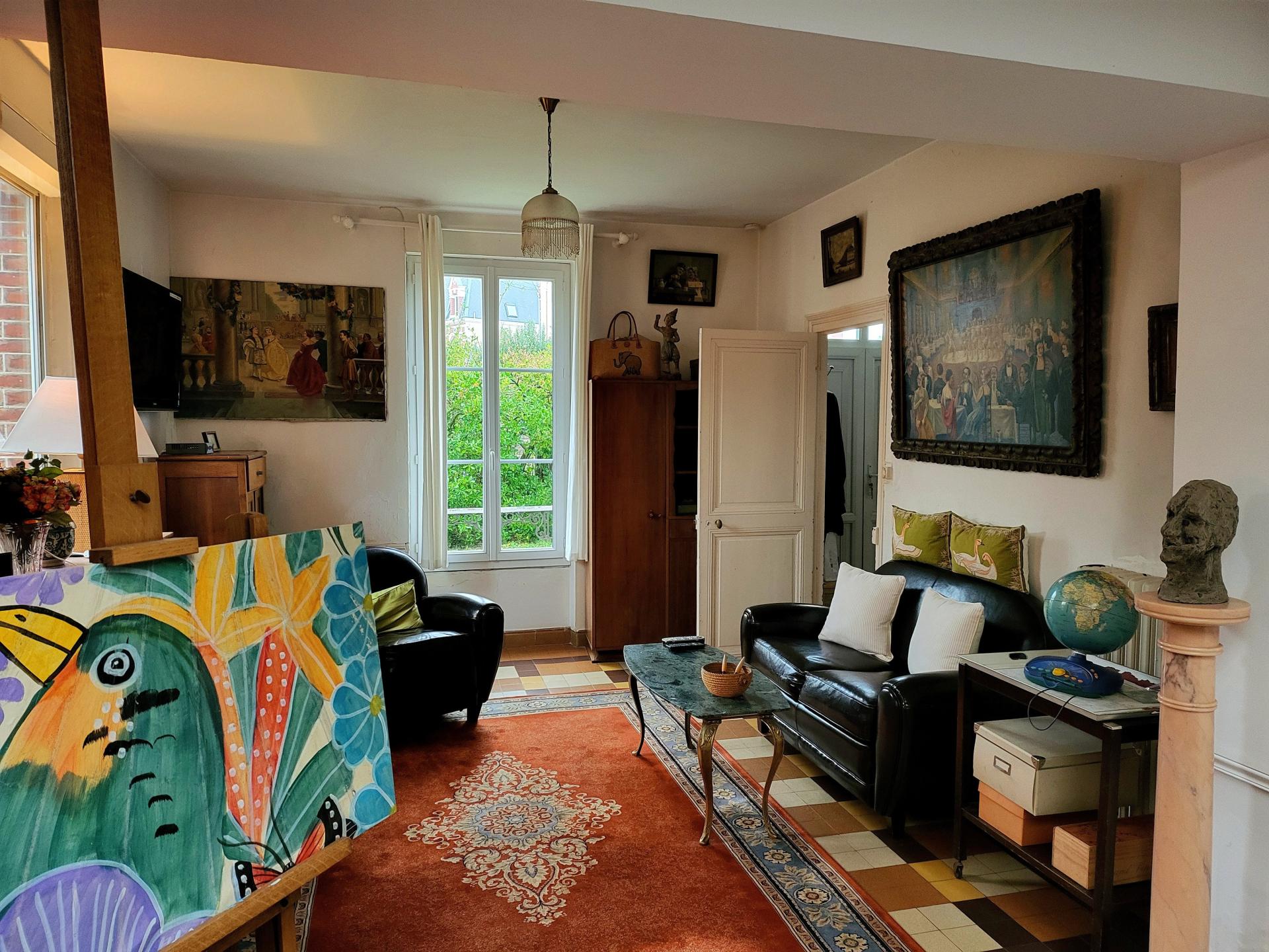 I am very happy to present to you this small, very warm and cosy mansion nestled in the heart of the city centre of Cabourg; At the foot of the market with its small garden which almost goes around it facing due south, it welcomes you comfortably; Starting with the car with two possible places in the garden; A 10m² shed as a workshop and bicycle storage room and once the luggage is unloaded, we do everything on foot, shopping, errands, the beach! So good! Right? It benefits from an extension which has allowed a larger kitchen, a second living room, a bedroom or office on the ground floor with its bathroom. In this interior which still exudes the Roaring Twenties, a pretty staircase leads to the bedrooms on the two floors above. Between the landings, a small shower room. On the first floor, the master bedroom has its own bathroom. On the 2nd floor, the toilet is between the two bedrooms. Ideal for a liberal profession thanks to the side extension which can be independent of the house.