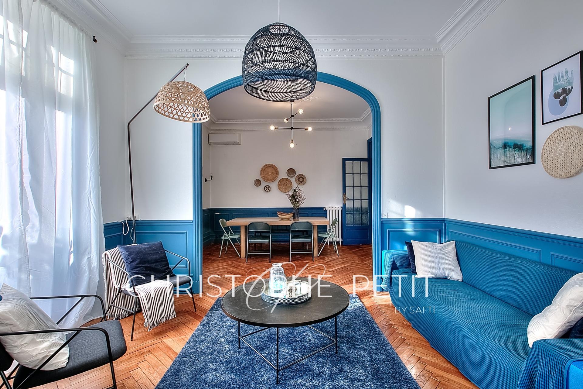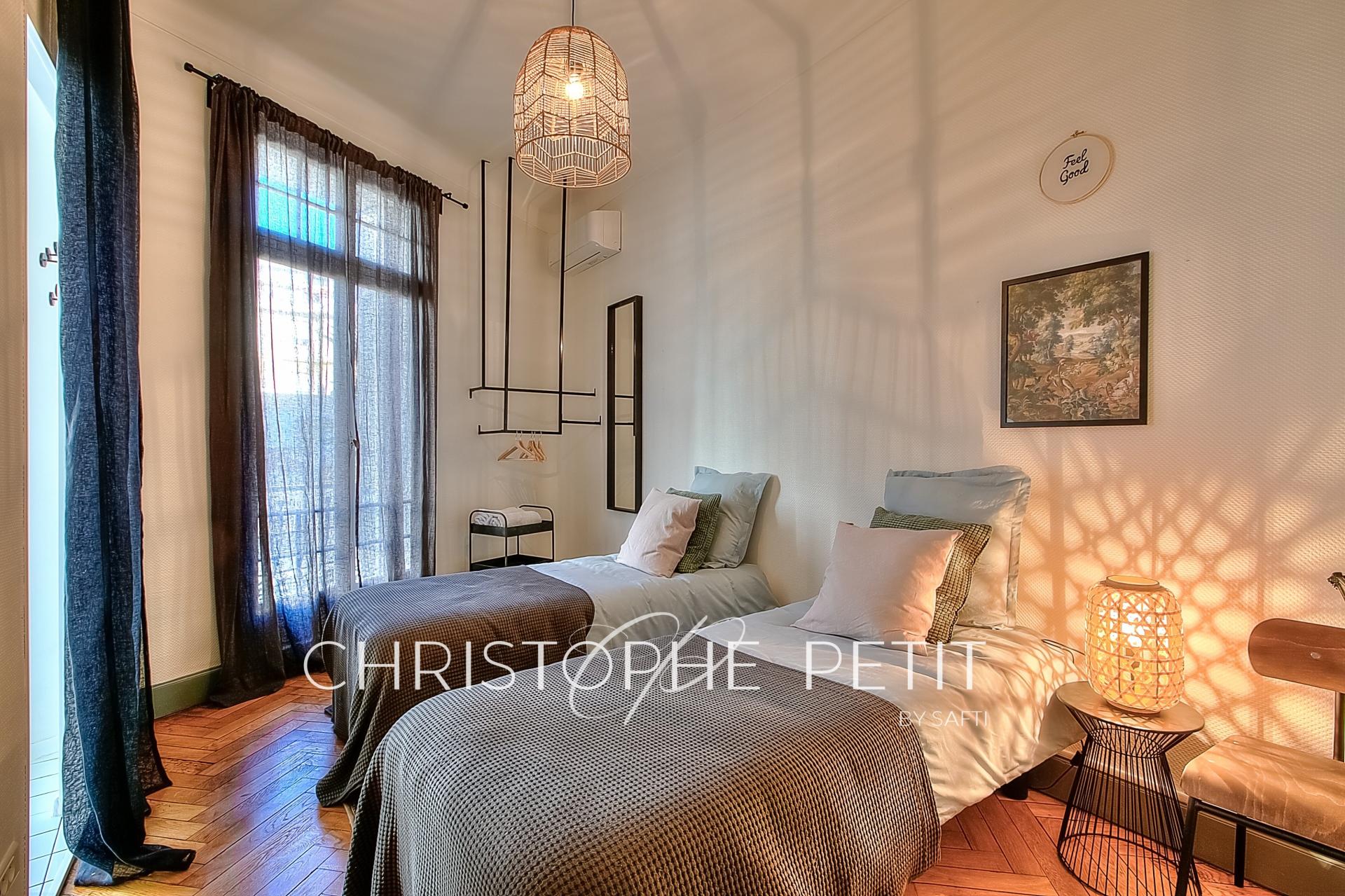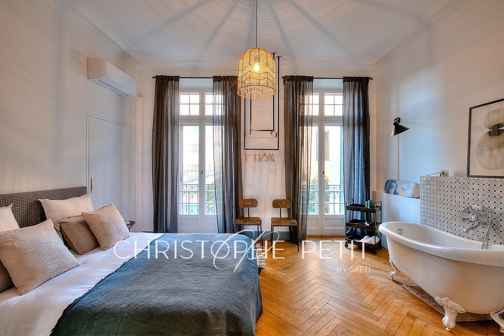 Exclusivité, Cannes centre, dans une belle petite copropriété bourgeoise, ce magnifique appartement de 115m² en 5 pièces, triple exposition, vaste séjour de 36m² avec bow-window, 3 chambres dont une suite parentale, moulures, parquet, entièrement rénové avec des prestations de grandes qualités et meublé avec goût et raffinement. De plus, une chambre de service de 8m² est également disponible au 5ème étage. Avec ses espaces bien agencés et sa situation géographique idéale, cet appartement représente une opportunité unique d'acquérir un bien d'exception à Cannes. Possibilité de diviser en 2 appartements (4pc et 2pc). Convient parfaitement pour de la résidence principale ou une profession libérale. À visiter sans tarder.