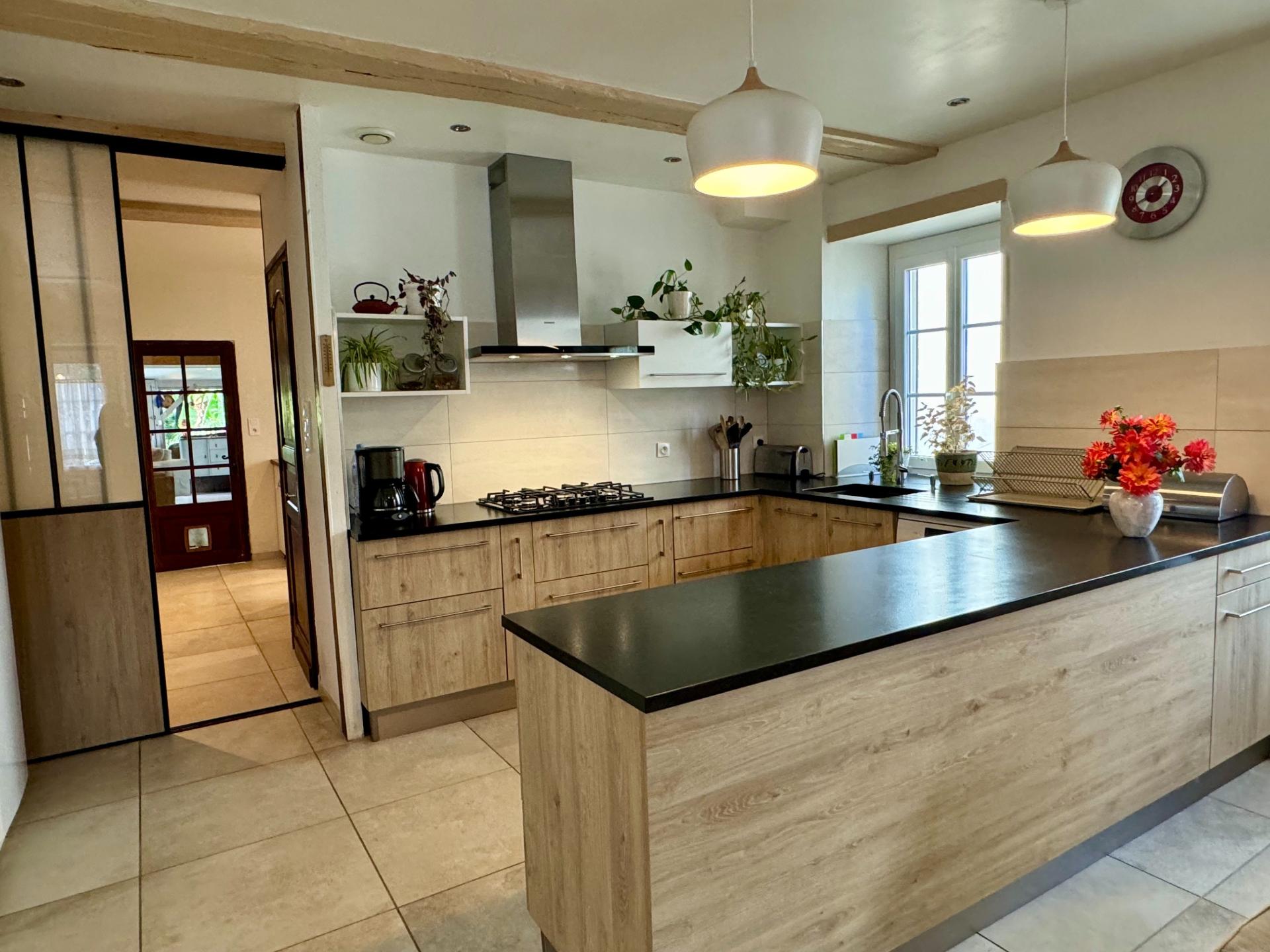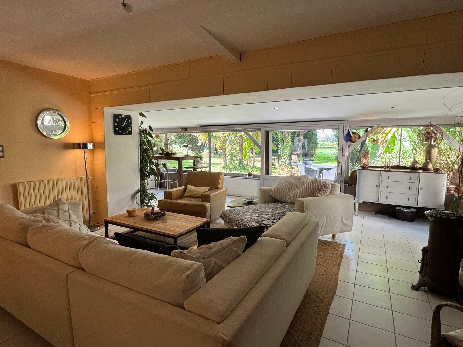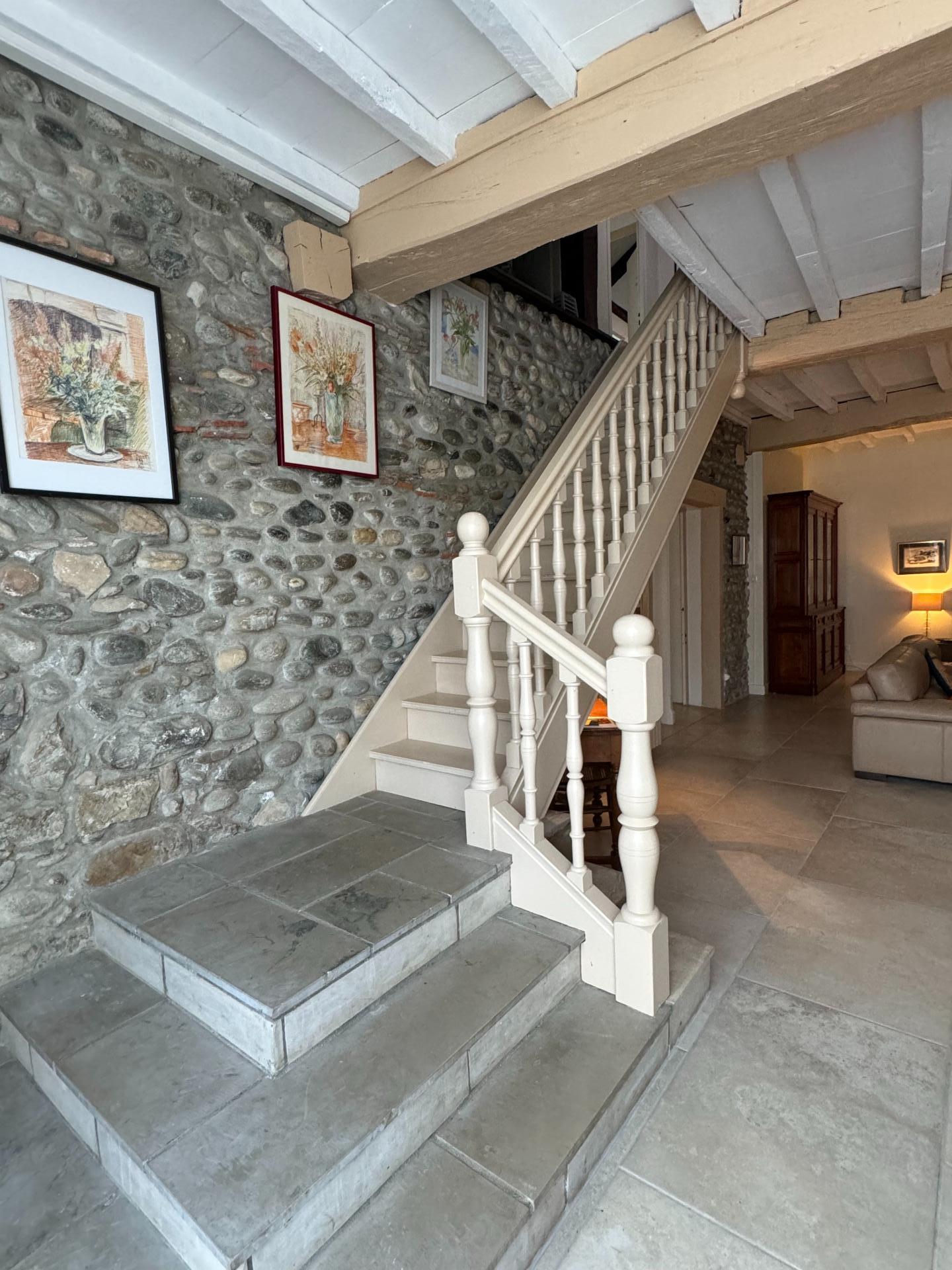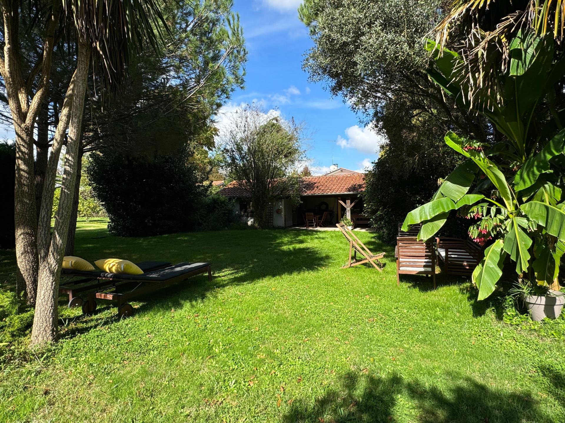 This traditional Landaise farmhouse dating to 1771 has been professionally renovated in recent years and offers everything you would need for an ideal family home, or second residence. The ground floor entrance hall leads through to a sumptuous 56m2 central reception room with heigh ceilings, exposed stone walls and a magnificent stone fireplace. Beyond here can be found a large, modern fitted kitchen, with seating around a second cosy fireplace fitted with a wood-buring stove - the perfect family room. Behind the kitchen is a second preparation kitchen and pantry, which leads to the veranda / summer room overlooking the lush landscaped gardens. A further summer kitchen / utilty room, two WC's, a downstairs bedroom, dressing room and spacious bathroom complete the ground floor. The upper floor level provides 4 further bedrooms, two bathrooms and spacious study and TV room. The interior decoration harmoniously blends period authentic charm with modern facilities and comforts. Outside, the mature landscaped gardens offer a haven of peace and tranquility; its half an acre of private grounds extending from the rear of the farmhouse, with an open-sided barn providing a covered dining area and several shady spots for relaxing away from the heat of the summer sunshine. For keen gardeners, a spectacular vegetable plot and orchard is situated at the far end of the garden, with an enclosed chicken run. This part of the garden overlooks open fields and pasture land. The property is situated in the heart of a quiet village which boasts one of the regions most reputable restaurant and access to some fabulous riverside beaches. Furthermore, the popular thermal spa town of Salies de Bearn is just a short 6km drive and the atlantic coast around Biarritz just 40 minutes.