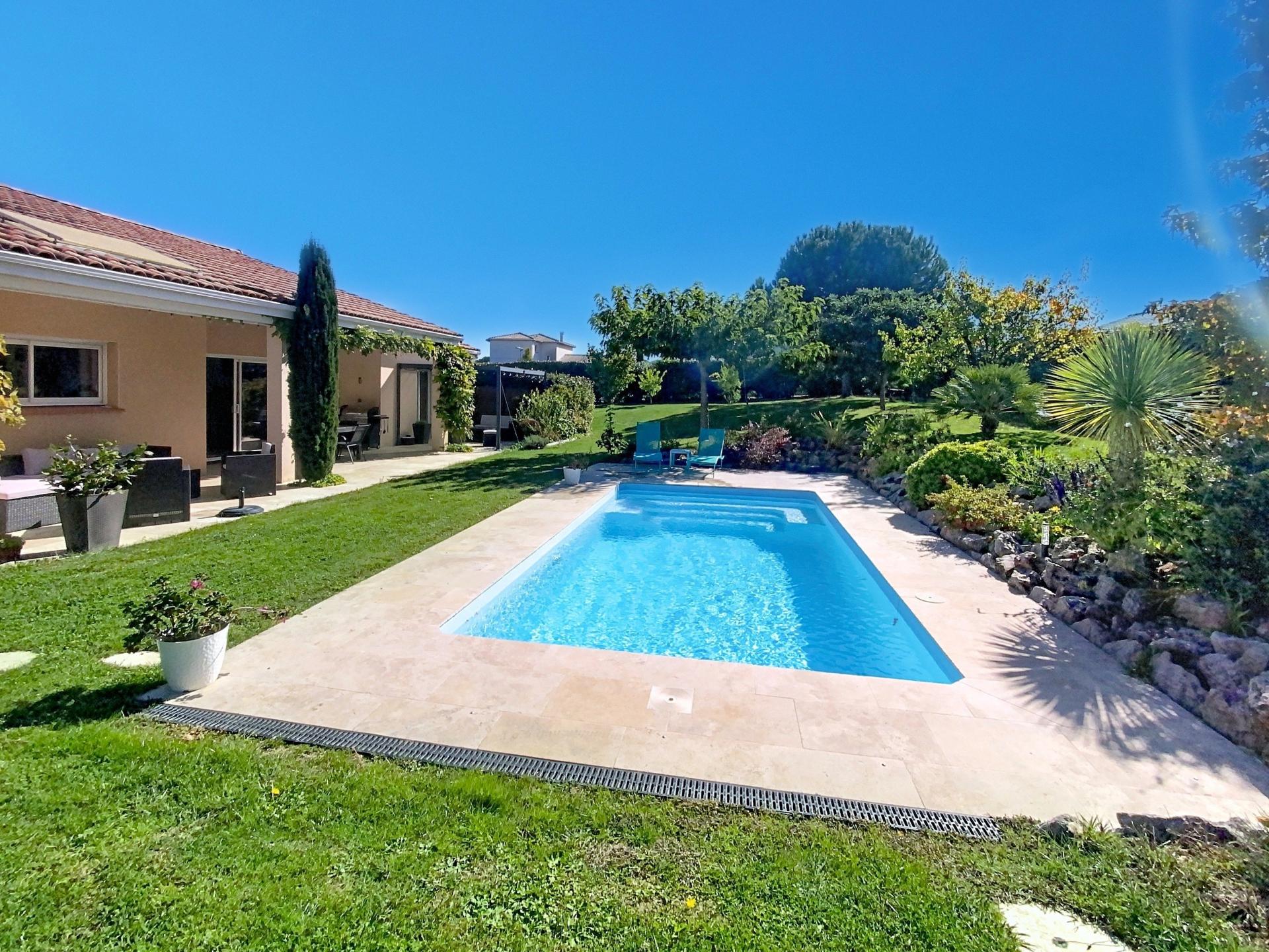 Located in Castelmaurou, just 5 minutes from Rouffiac Tolosan, in a residential area, here is a beautiful T4 house of 130m² in perfect condition, built on a basement of 100m² isolated with two motorized doors and window. The house is set on a divisible plot of 2500m² with swimming pool not overlooked. It is a real haven of peace. The entrance welcomes you in the living room of 54m ² which consists of a living area arranged around the fireplace, a dining area and a contemporary kitchen open, perfectly equipped, all overlooking 2 beautiful terraces of which one is covered. The night part contains 2 spacious bedrooms of 12 and 14m², a bathroom with whirlpool bath, a separate toilet and a lovely laundry. Upstairs the landing serves the master suite with closet, bathroom with Italian shower and a second separate toilet. The basement has two motorized garage doors. A space with window can also be converted into an office or guest room. The exterior will fill you with the almost absence of opposite and the swimming pool (Desjoyaux) 10x5 beautifully implanted. On the comfort side the house has everything of a great, it offers beautiful services: heating-cooling by the floor via an air / water PAC, centralized suction, whirlpool bath, multi-jet shower, motorized gate and garage doors, blind banana with automatic winding, very good insulation under roof, tiled maintained. It is a beautiful house, welcoming, comfortable, easy to live and especially in perfect condition, ready to live; I look forward to making you discover it! Feel free to contact me for more information.