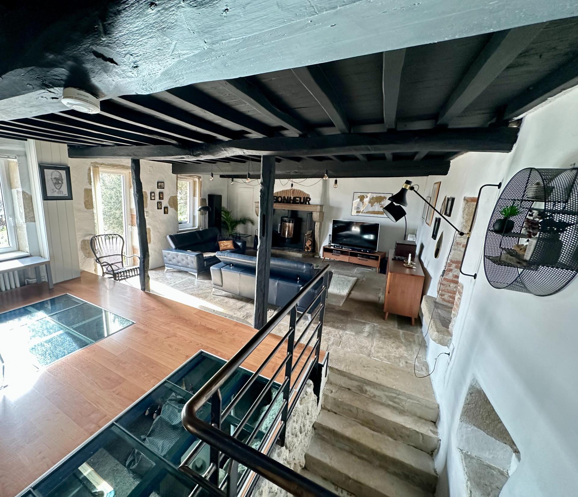 À vendre – Maison de caractère avec 2 gîtes indépendants à 30 min de Clermont-Ferrand Située dans un charmant village à seulement 30 minutes de Clermont-Ferrand, cette magnifique propriété en pierre d’environ 270 m² habitables offre un cadre de vie exceptionnel alliant authenticité et modernité. Sur un terrain d’environ 1 880 m², vous profiterez d’un superbe extérieur avec une vue dégagée et un environnement paisible. La maison principale propose des volumes généreux avec une grande cuisine, un vaste salon lumineux, ainsi qu’un élément unique : une cave avec un plafond vitré donnant sur le salon, intégrant un billard pour une ambiance conviviale et originale. Cette propriété dispose également de deux gîtes indépendants, offrant une belle opportunité d’exploitation touristique ou la possibilité de les relier à la maison principale selon vos besoins. • Premier gîte : installé dans une ancienne étable, il allie charme et confort. • Deuxième gîte : aménagé dans un ancien pigeonnier, un cadre atypique et plein de cachet. Idéal pour une résidence familiale avec de l’espace ou pour une activité de gîtes clé en main, ce bien unique saura séduire les amateurs de belles pierres et d’authenticité. Si vous manquez d'espace ou souhaitez developper l'activité de gîte ou chambres d'hôtes, une partie supplémentaire est aménageable... Un coup de cœur assuré ! Contactez-moi pour plus d’informations ou pour organiser une visite.