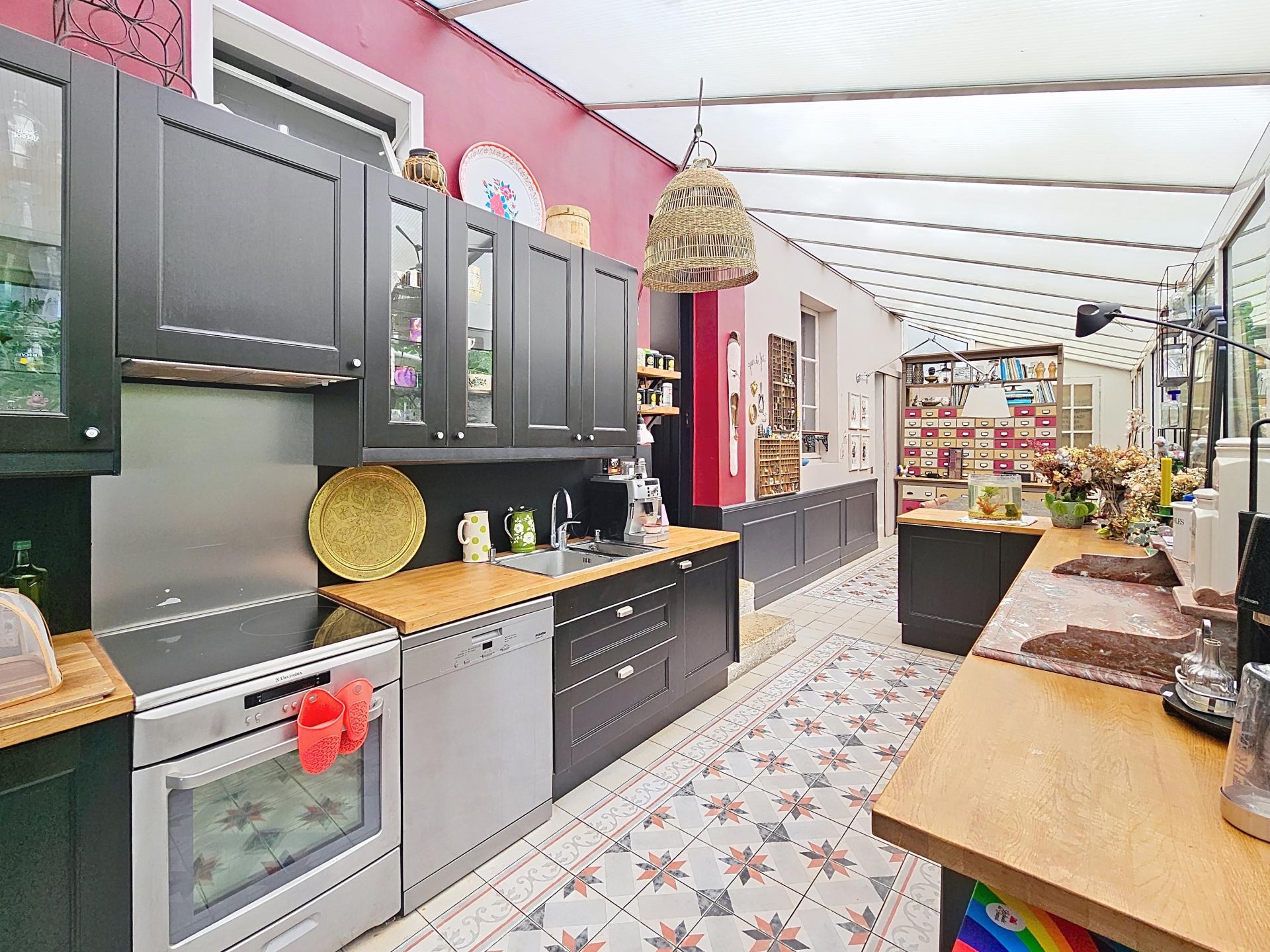 Dans le centre de Clamart, à proximité des transports et de la gare de Clamart (future L15), belle maison en meulière des années 1900 implantée sur un terrain d'environ 405 m² avec de nombreux arbres (lilas, noisetier, oliviers, vigne...). D'une surface d'environ 168 m², elle est distribuée sur 3 niveaux. Au rez de chaussée, deux salons cosy avec une cheminée, une cuisine salle à manger lumineuse sous une véranda ouvrant sur une terrasse et un jardin d'environ 150 m², un bureau ou arrière cuisine avec un accès à une allée pavée, des toilettes. Au 1er étage, deux chambres dont une avec sa salle de bains et un dressing, une salle d'eau avec wc. Au 2ème étage, deux chambres dont une avec une salle de bains et wc. Au sous sol une cave organisée avec une partie rangement et une partie buanderie et chaufferie. Un box complète la maison. Possibilité de garer deux véhicules dans l'allée de la maison. Toiture refaite et isolée en 2020, fenêtres double vitrage, ballon solaire, portail électrique.