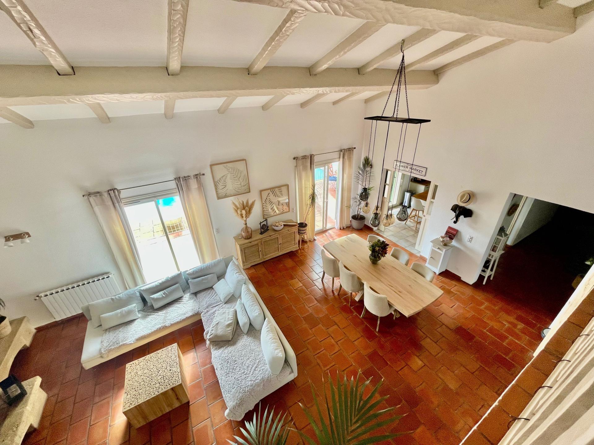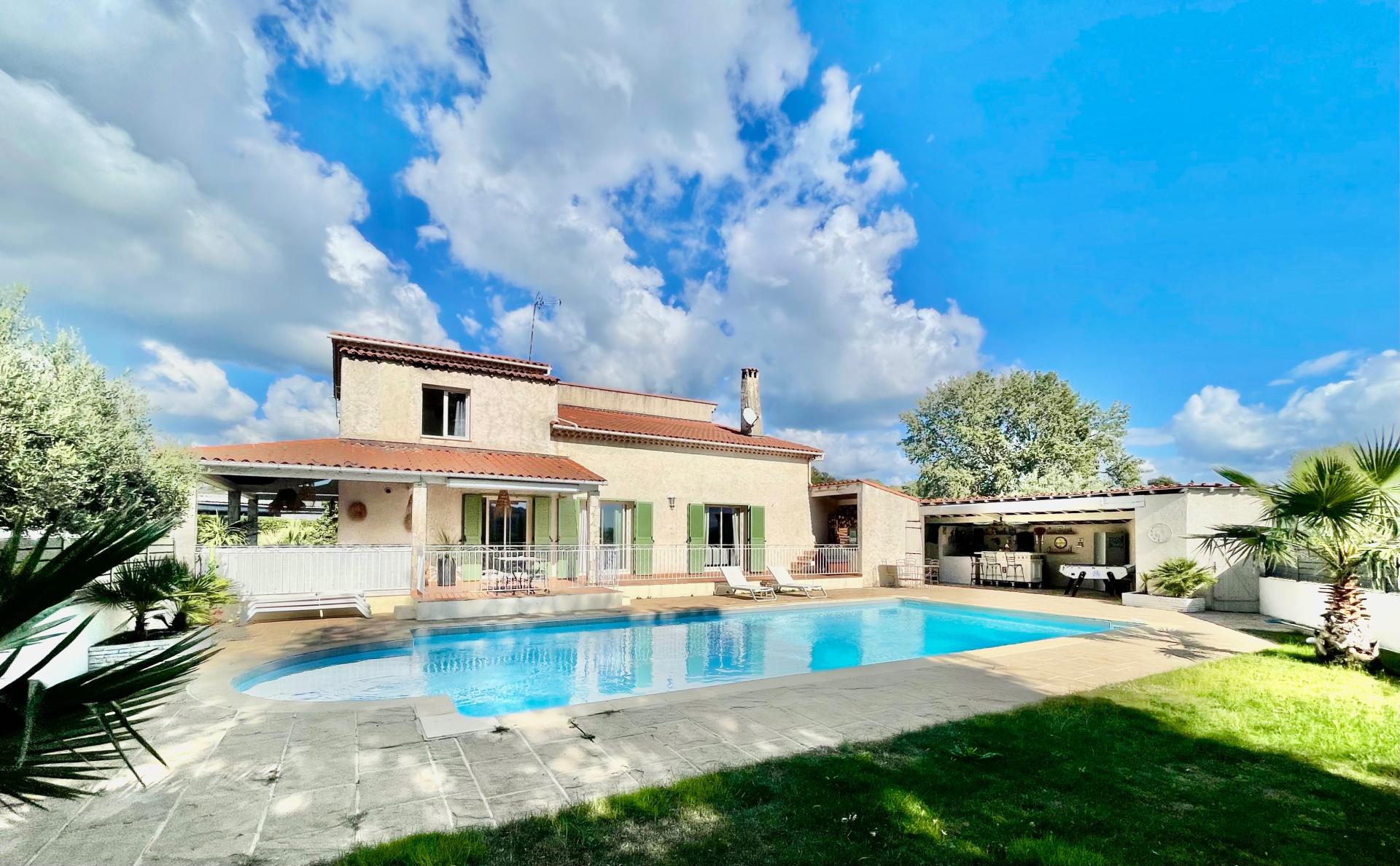 Maison de retour à la vente ( financement nom obtenue) offrant environ 200m2 habitables, de type T6, édifiée sur un terrain plat et clos de 2000 m². De plain-pied, vous découvrirez, un hall d’entrée donnant l’accès à un spacieux espace de vie lumineux avec un plafond en cathédrale, une cuisine ouverte et traversante, équipée d’une grande porte en galandage, coté séjour. Le tout donne l’accès à une grande terrasse, sa piscine chauffée, ses plages et son pool house. Une chambre, une salle d’eau et un WC, un cellier, buanderie assez grande pour y accueillir un dressing et au sous sol une cave à vin. À l'étage 4 chambres, dont une avec dressing, salle de bain et WC. Tout à l’égout. Plomberie refaite, chauffage gaz ou électrique, électricité aux normes. Cette demeure traditionnelle bien entretenue offre un cadre de vie confortable et agréable Un forage avec eau potable, une piscine avec un pool house, un double garage, une cave à vin, un terrain de boules . A visiter sans tarder!