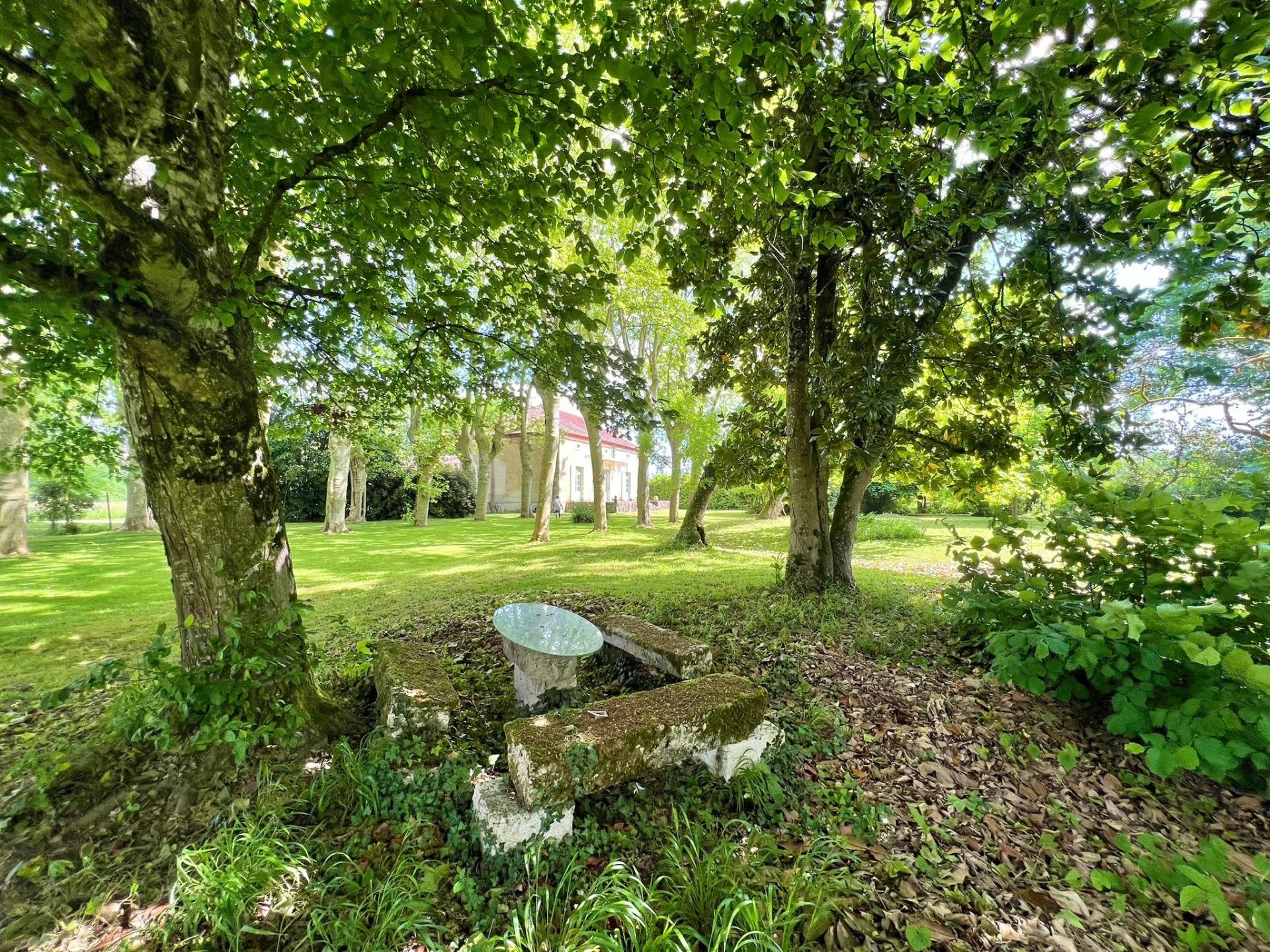 Exclusivité Safti Immobilier Eauze , pour ce magnifique domaine de plus de 6 Hectares constitué d' une maison de Maître avec dépendance attenante et cave , d'une maison secondaire avec rapport locatif , type "cottage" avec dépendance également et d'un pigeonnier , le tout donnant un accès direct à des chemins de randonnées dont Compostelle , plan d'eau et différents bois . Avec ses platanes centenaires , le jardin et son allée prennent une dimension châtelaine remarquable , pruniers , pêchers , cerisiers figuiers et autres fruitiers complètent les alentours du site . La demeure principale est composée sur 242 m2 au total de 5 chambres et une 6ème à créer , Grand hall d'entrée avec verrière , cuisine , salle à manger et salon séparés , 1 salle d'eau , 1 salle de bain et 2 Wc . Équipement : Plancher hourdis ,chauffage au sol pompe à chaleur Air/Eau , VMC , Menuiserie rénovées à l'identique et Tout à l'égout . Le Cottage de 76 m2 , dispose de 2 chambres , Pièce de vie avec grande cheminée , cellier et salle de bain avec Wc . Équipement : Poêle à bois , chauffage au sol électrique. Disposant de plus de 350 m2 de dépendances supplémentaires , Ce domaine peut accueillir projets de chambres d’hôtes , ferme équestre , Permaculture avec puits sur place , Possibilité d'acquérir 1,2 hectare de terres attenantes . Commerces , écoles , centre médical , Golf 18 trous , Casino de jeux et station thermale à proximité . Gares 50 min , Aéroports 1h45 , Autoroute 35 min .