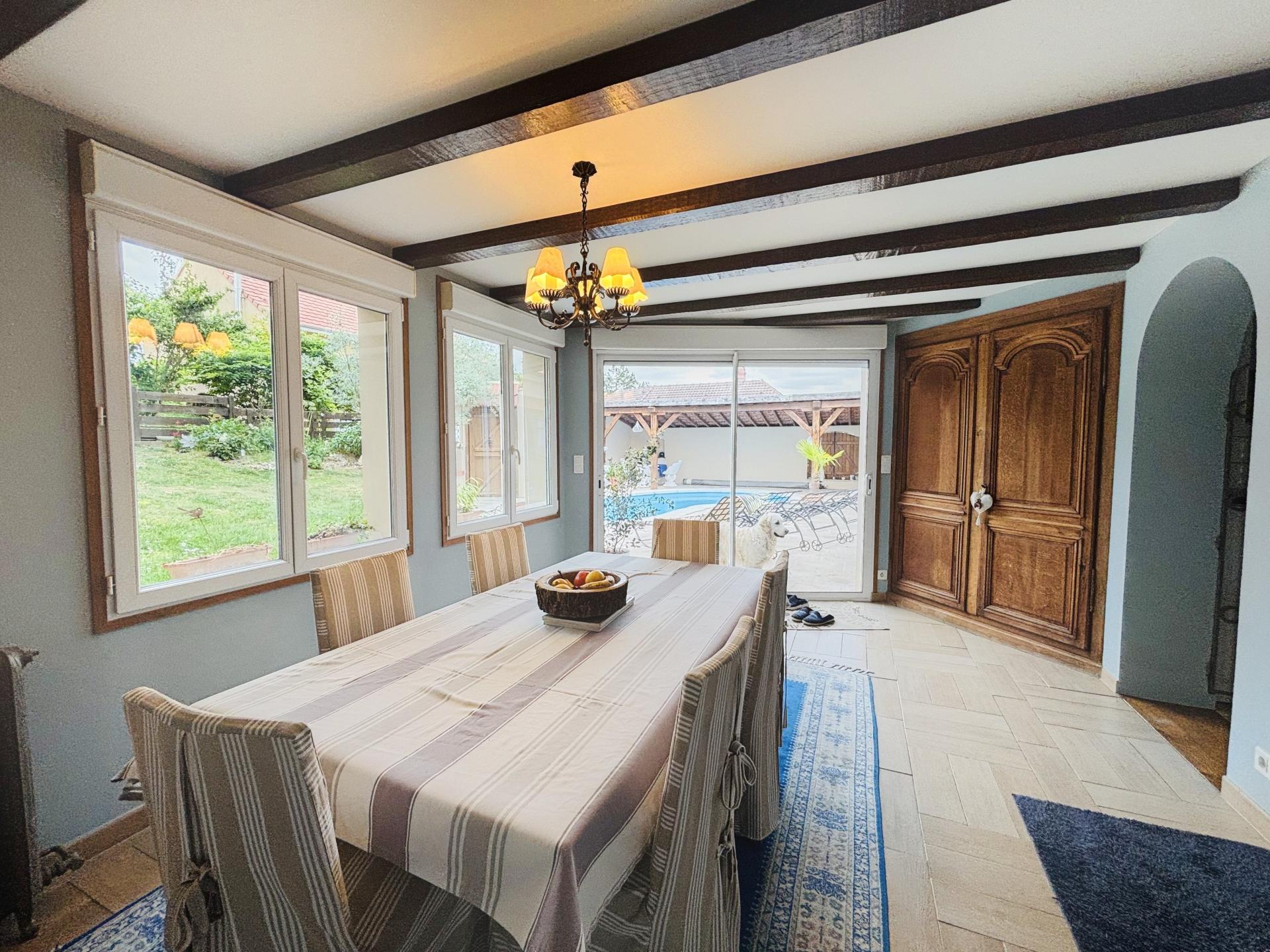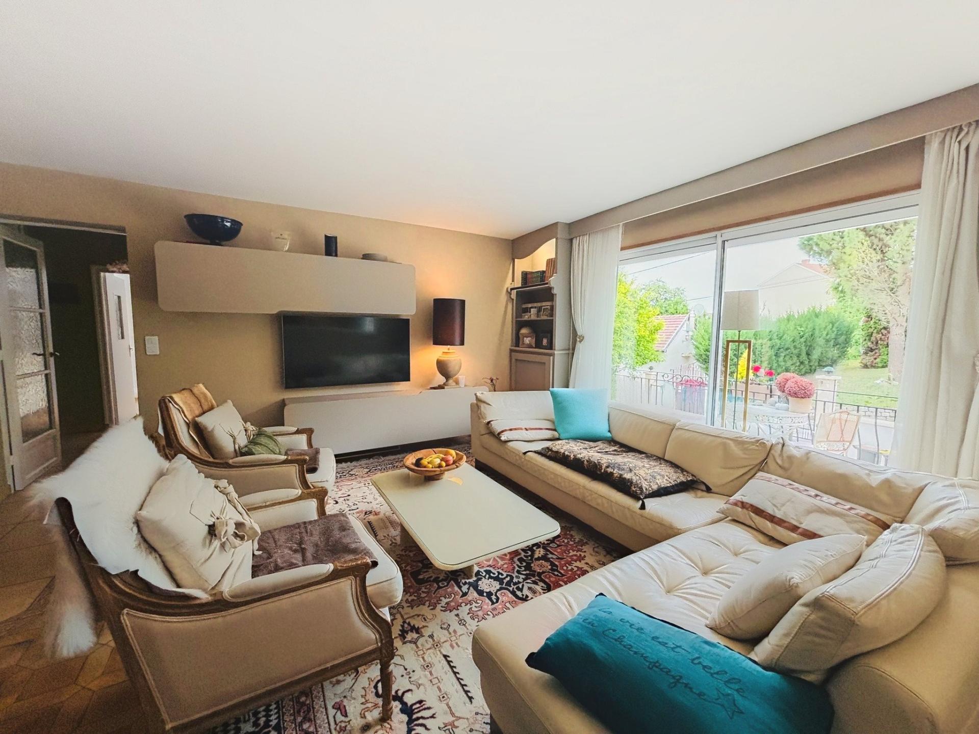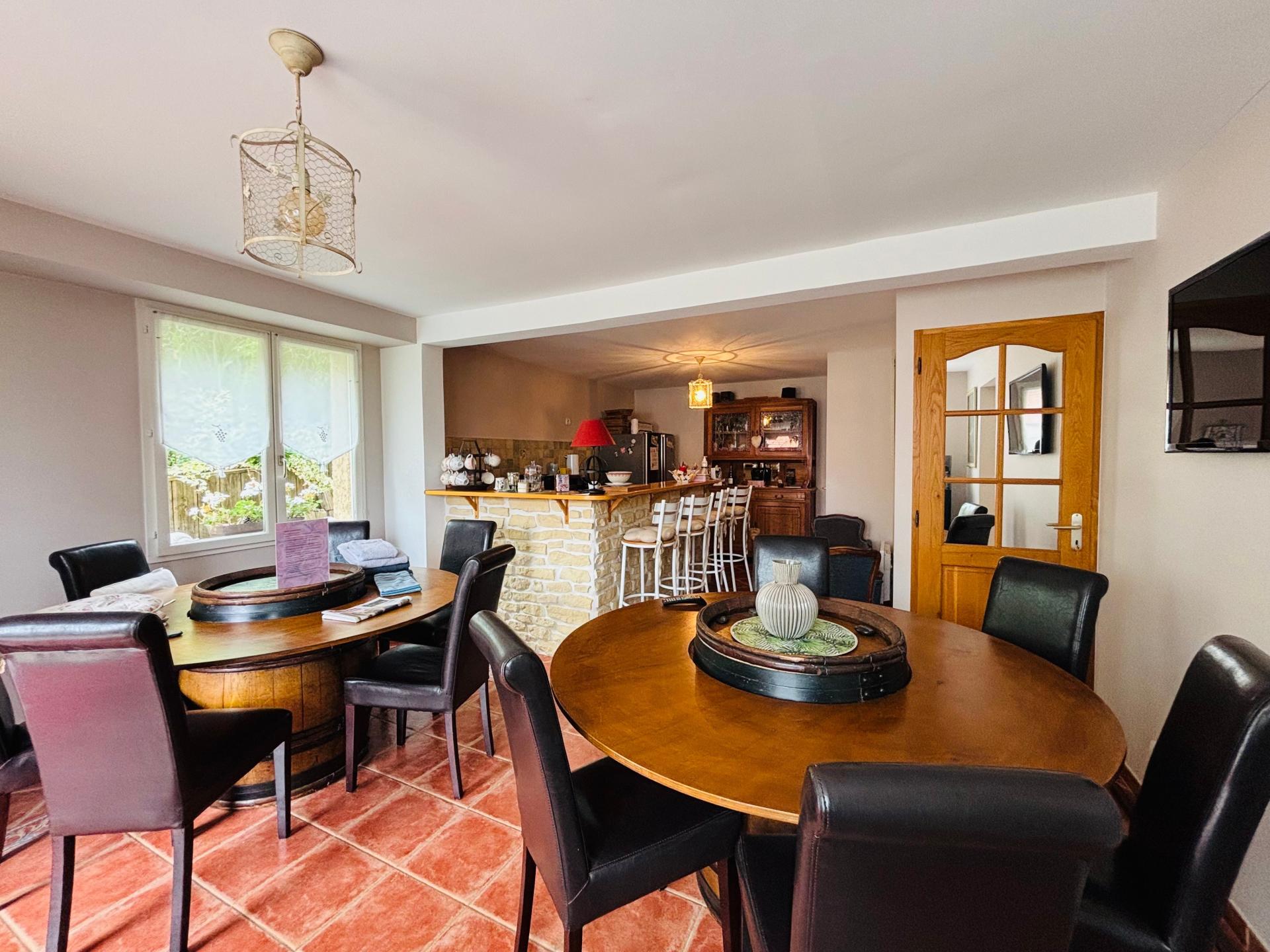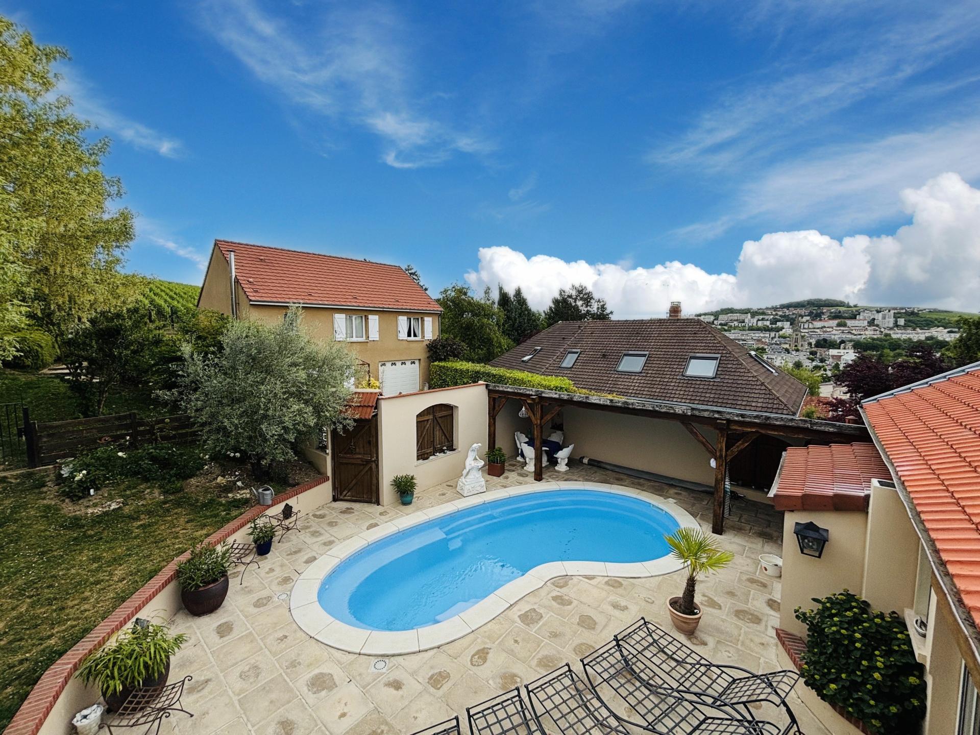 Située dans la charmante ville d'Épernay (51200), cette maison offre un cadre de vie privilégié au cœur de la région Champagne. Proche des vignobles renommés de la région, cette propriété bénéficie d'un environnement paisible et verdoyant, idéal pour les amateurs de calme et de nature. À quelques pas des commerces locaux et des écoles, son emplacement central offre un équilibre parfait entre tranquillité et praticité. Cette spacieuse maison de 150 m² présente des espaces de vie généreux répartis sur deux niveaux. Au rez-de-chaussée, vous découvrirez une entrée accueillante, un salon chaleureux avec cheminée ,une salle à manger avec vue sur la terrasse et la piscine, une cuisine ouverte, un bureau, une lingerie, une grande chambre et une salle d’eau à terminer pour vous offrir un vrai confort de plain pied. A l'étage, une suite parentale avec baignoire et petit coin salon avec terrasse et deux autres chambres en enfilade offrant confort et intimité. L'extérieur comprend une piscine agréable avec terrasse et cuisine d'été, une douche et un wc, un sous sol spacieux pouvant accueillir 3 voitures et une cour à l'avant pour vous stationner facilement. À l’arrière de la maison vous trouverez une maison d'hôtes de 147m2 comprenant 5 chambres avec salles d'eau et wc privatifs, un espace commun de repas, le tout entouré d'un jardin arboré et d’une jolie terrasse avec une vue imprenable sur les vignes environnantes.Les chambres d’hôtes sont en place depuis 20 ans et fonctionnent très bien, le CA dégagé par l'activité n'est pas négligeable et celui-ci peut facilement évoluer en ajoutant des prestations annexes. Les deux maisons peuvent être vendues séparément et un accès séparé dans la rue peut être crée.