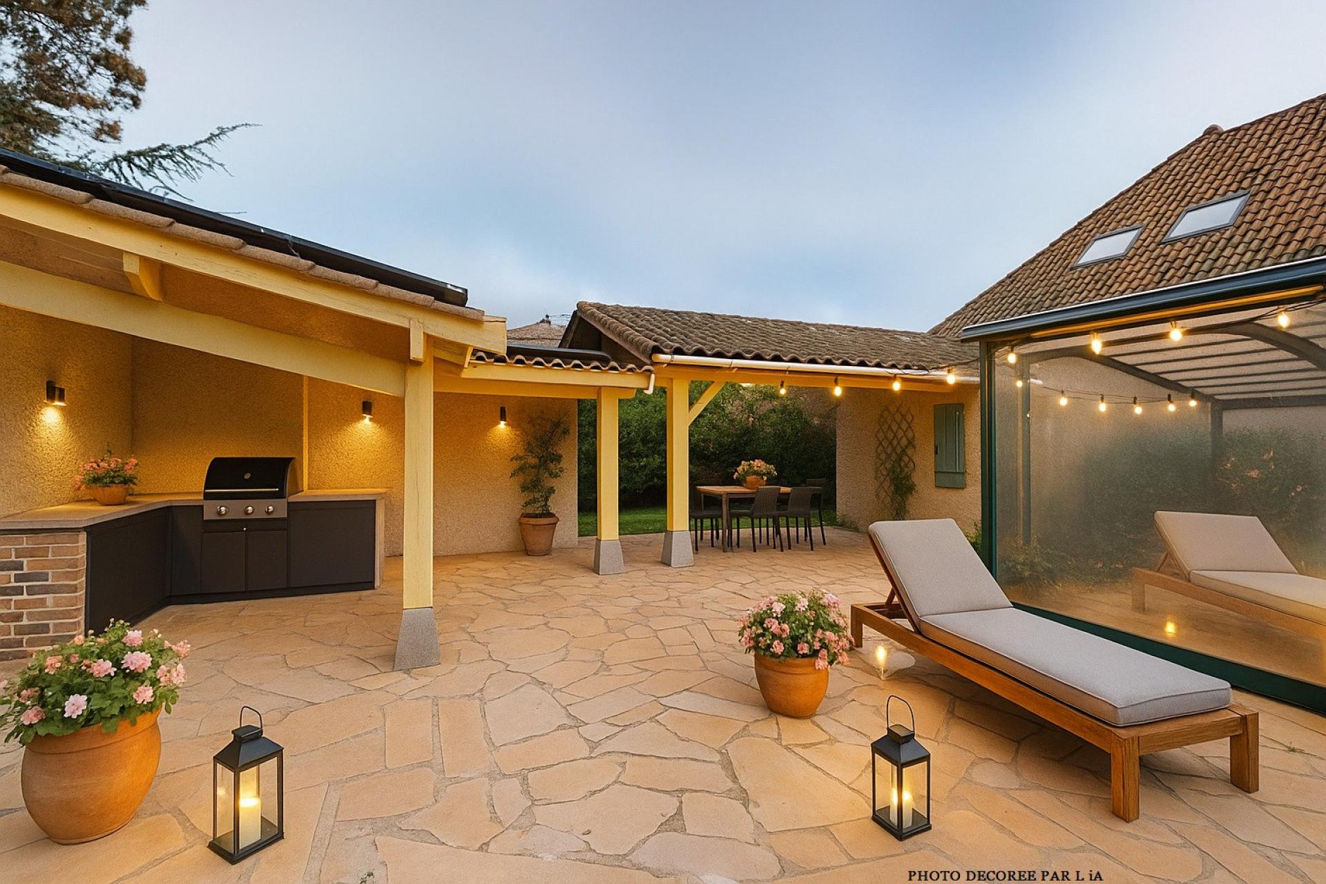 En exclusivité sur la commune très recherchée de Fontaines St Martin, (commerces, école et bus à pied), je vous invite à découvrir cette magnifique maison familiale de plus de 190m² habitable complétée par un sous sol total, sans aucun vis-à-vis et au calme absolu, édifiée sur un somptueux terrain clos et paysagé de plus de 3500m² . Véritable havre de paix ! Vous serez charmé par cet environnement exceptionnel et rare qui offre un cadre idyllique pour se ressourcer. Cette propriété vous promet des moments de détente et de convivialité inoubliables avec ses arbres centenaires, sa piscine couverte, et son terrain de pétanque, le tout agrémenté de 2 terrasses dont 1 abritée avec sa cuisine d’été. Ce beau bien aux proportions généreuses vous offre de plain pied une entrée lumineuse qui mène à une spacieuse pièce de vie de 50m² dotée d’un beau sol en travertin et d’une cheminée avec insert pour vos belles soirées d’hiver. Baignée de lumière grâce à sa triple exposition, cette pièce qui s’ouvre sur une agréable terrasse en pierre invite à la détente et au bien-être. Vous bénéficiez également d’une cuisine entièrement meublée qui peut s’ouvrir sur la salle à manger si vous le souhaitez, et sur ce même niveau, d’un coin nuit qui dessert 1 chambre, 1 SDE avec sa douche à l’italienne, 1 suite parentale de plus de 25m² avec SDB privative, et 1 WC séparé avec lave main. A l’étage un dégagement équipé de placards intégrés dessert 3 grandes chambres d’environ 15m² chacune et une SDE avec WC. Au sous sol vous disposez d’un espace de 140m² composé de 2 garages avec portes motorisées pouvant aisément accueillir 4 véhicules, d’une pièce carrelée d’environ 35m² avec fenestrons pouvant faire office de salle de jeu ou d’atelier, d’une grande cave ainsi que d’un local technique pour la piscine. Cette maison intelligemment pensée est extrêmement bien entretenue. Pour plus de confort de nombreuses améliorations ont été apportées ces dernières années : un chauffe-eau thermodynamique, une PAC air/air dans la pièce de vie, des panneaux solaires, un adoucisseur d’eau, des volets en aluminium sur toute la partie plain pied, les forgets et les bandeaux en PVC…… Ne manquez pas cette opportunité unique d’acquérir une maison alliant confort charme et nature !