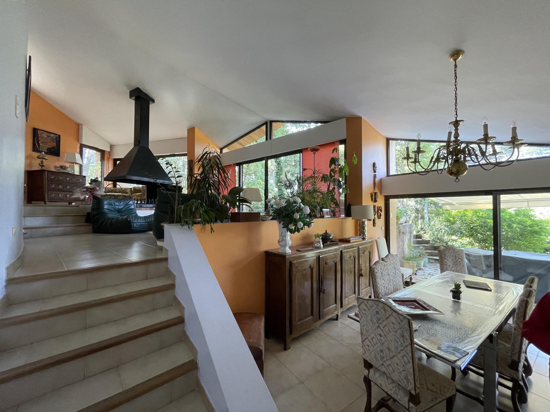 ARCHITECT'S HOUSE IN ITS NATURAL SETTING Exceptional consrtuction in Harmony with its natural environment. A magnificient living room with rare volumes and brightness. you have 2 separate sleeping areas each including2 bedrooms and a bathroom as well as an office. A laudry room,a pantry and a spacious garage. A large swimming pool completes this property with its asymetrique shape. Beautiful services for this Villa of about 200m2 with its terraces and its many ancillary rooms including an independant cottage in its oak forest,its sauna and its Jacuzzi.