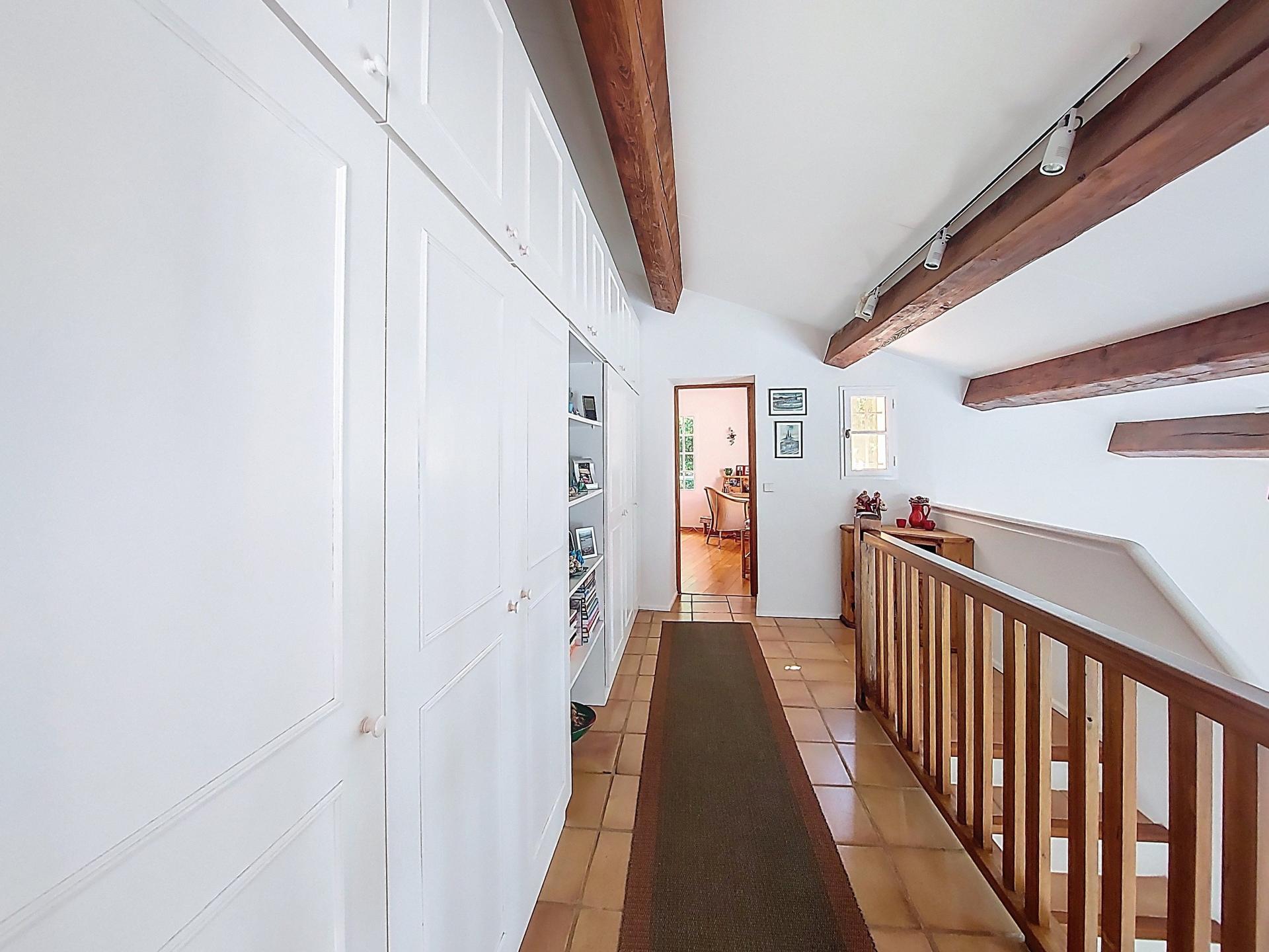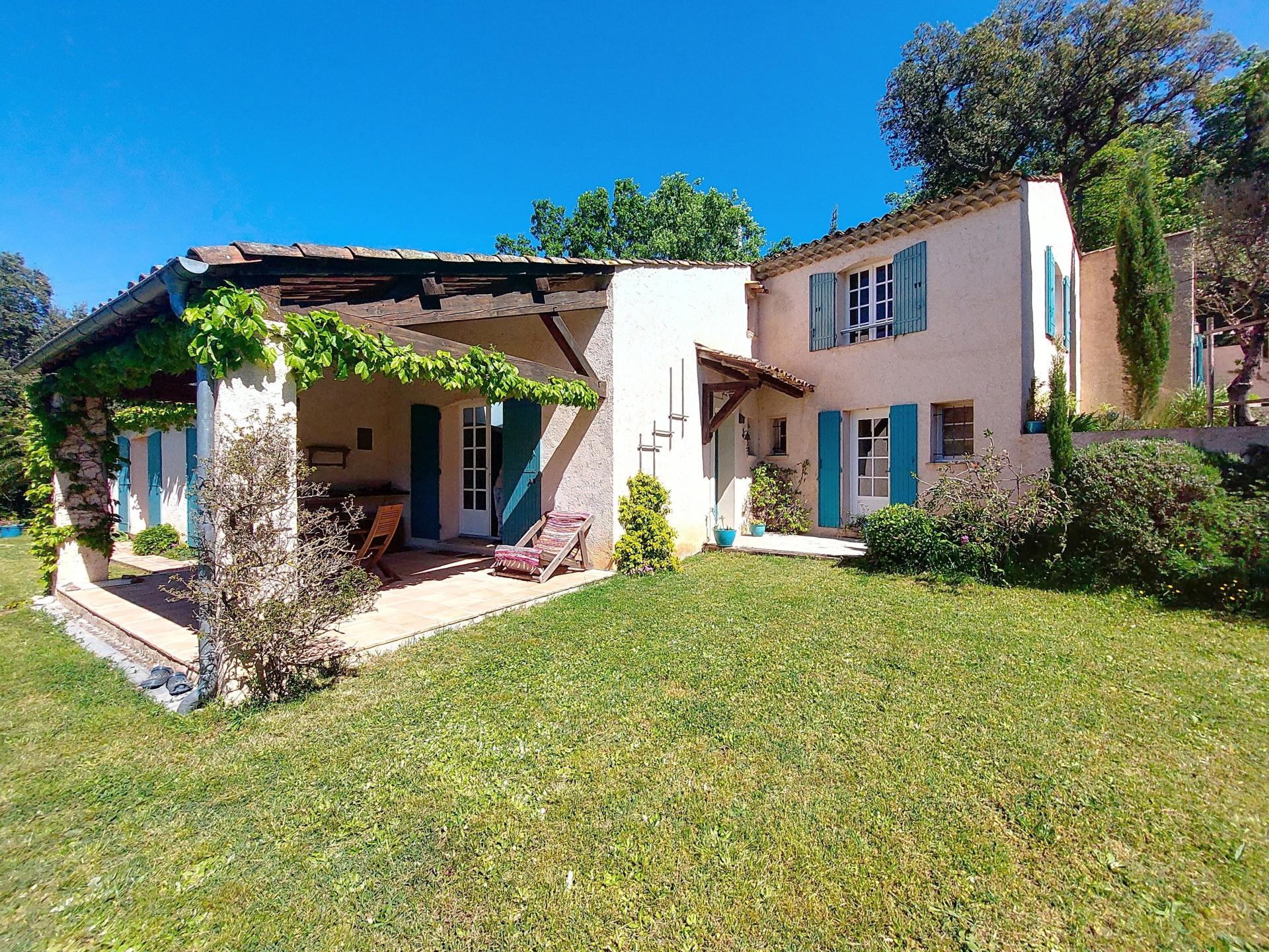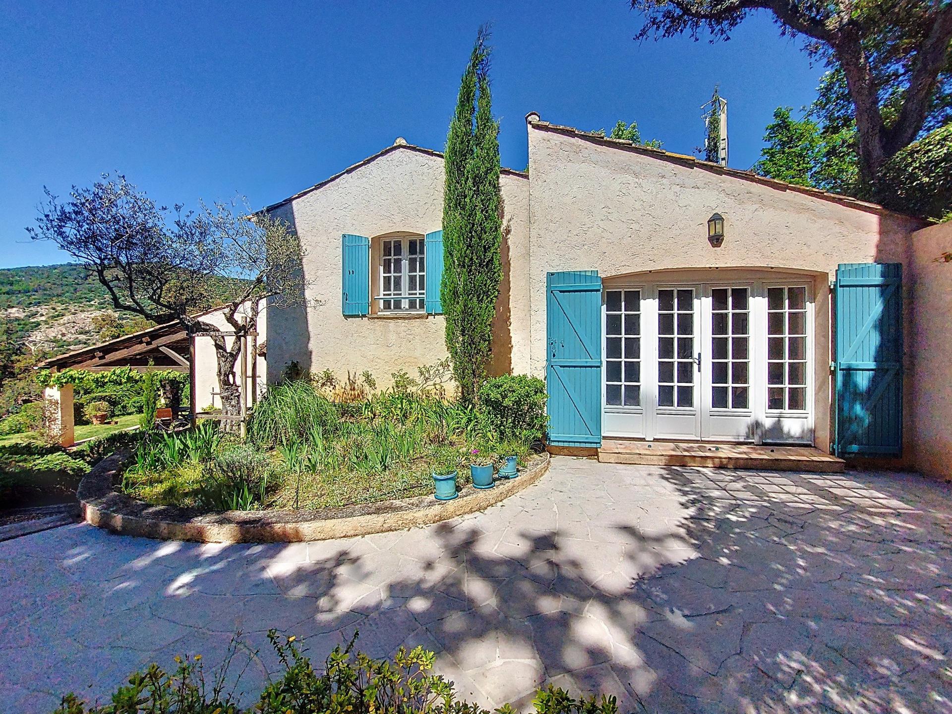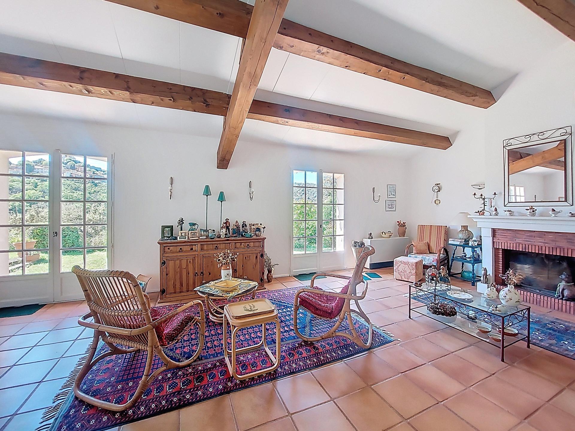 This villa stands out for its Provencal charm and exceptional setting. Set in a dominant position on a 2,500 m² plot, it enjoys panoramic views over the village of Grimaud, its medieval castle and the mill, while being just a stone's throw from the centre and shops. With a surface area of 225 m², this quality villa combines top-of-the-range features with meticulous finishing touches. On the ground floor, you'll find a huge, bright living room of 75 m² with a fireplace, high ceilings, exposed beams and a terrace with splendid views over the village. The semi-open fitted kitchen conceals a double scullery and a utility room. Upstairs, two large, light-filled bedrooms with views, each with its own private bathroom, including one with a roof terrace, provide comfort and privacy. An added bonus: an adjoining but independent 60 m² flat has a fully-equipped kitchen with dining area, a shower room and a large, bright bedroom on a mezzanine floor, with direct access to a terrace and the garden. This space can be reserved for your nearest and dearest or can provide you with a significant additional income if rented out on a seasonal basis. There is a carport for your vehicle, several parking spaces and a large workshop. The land is suitable for swimming pools and is ideally located for building. . This rare and elegant property offers a peaceful and comfortable living environment, with interesting prospects for personalising and extending your future home. Possibility to sell furnished if desired! I invite you to discover it, starting with a virtual visit, by contacting me on 06 31 98 57 48.
