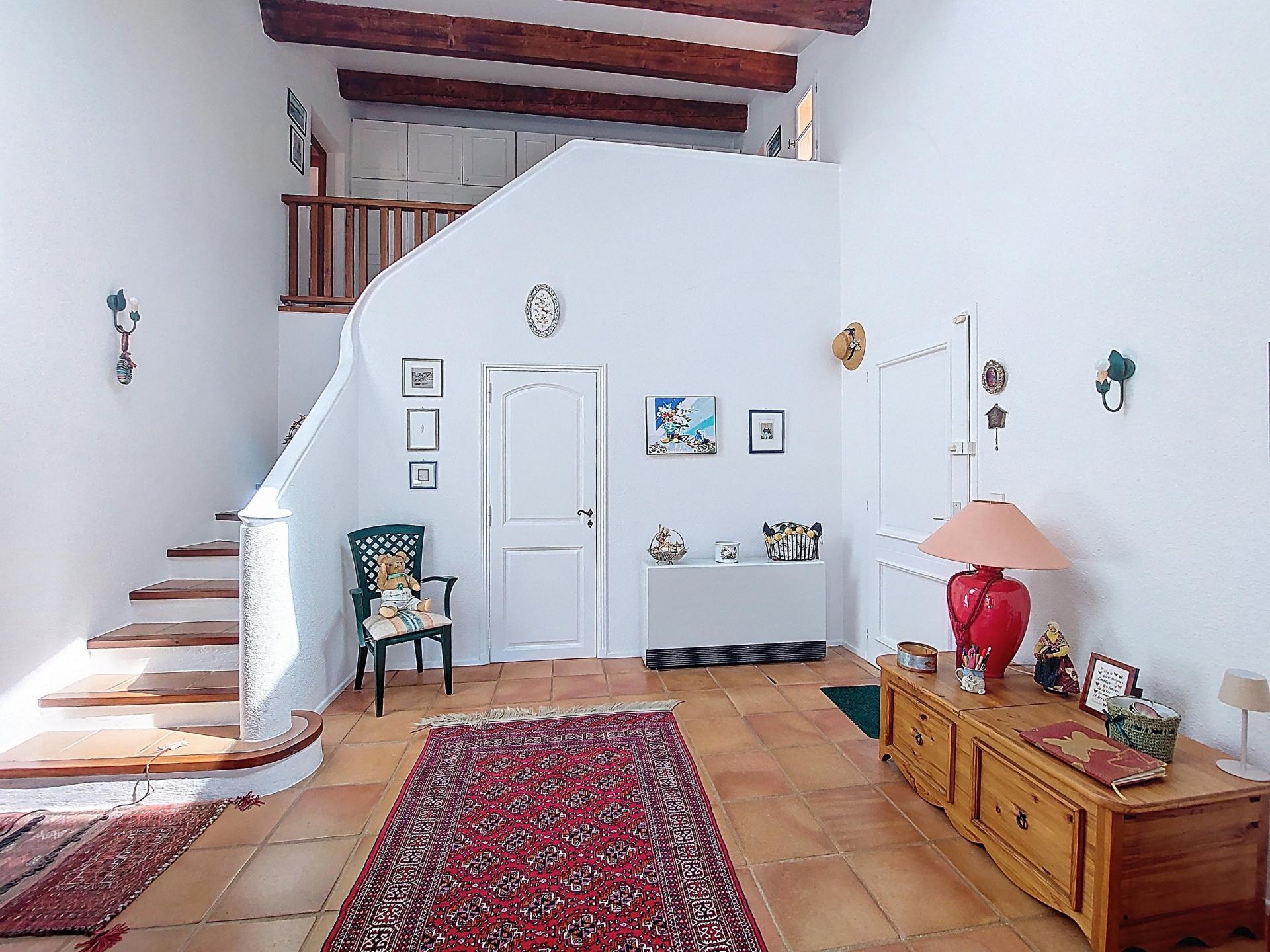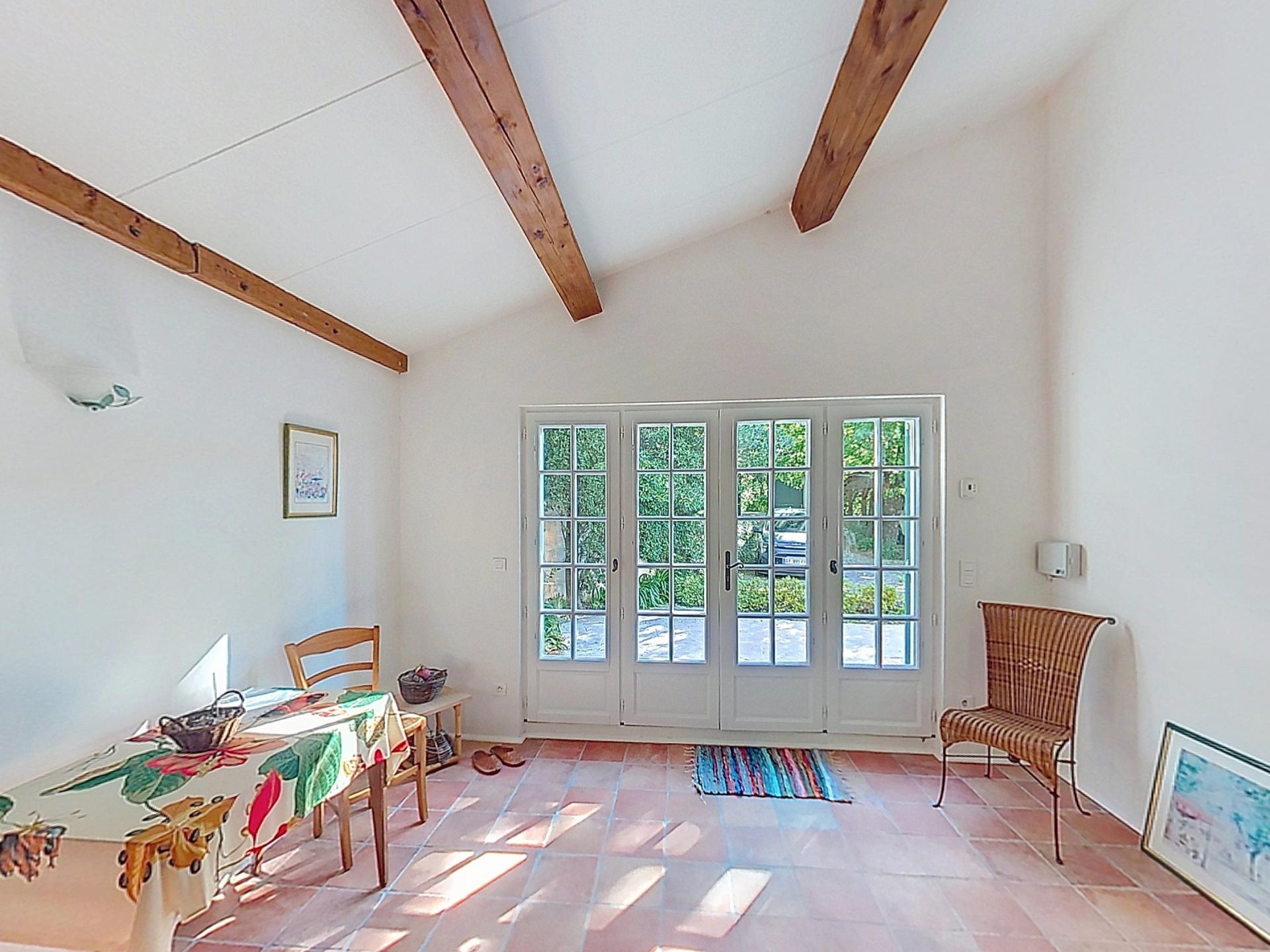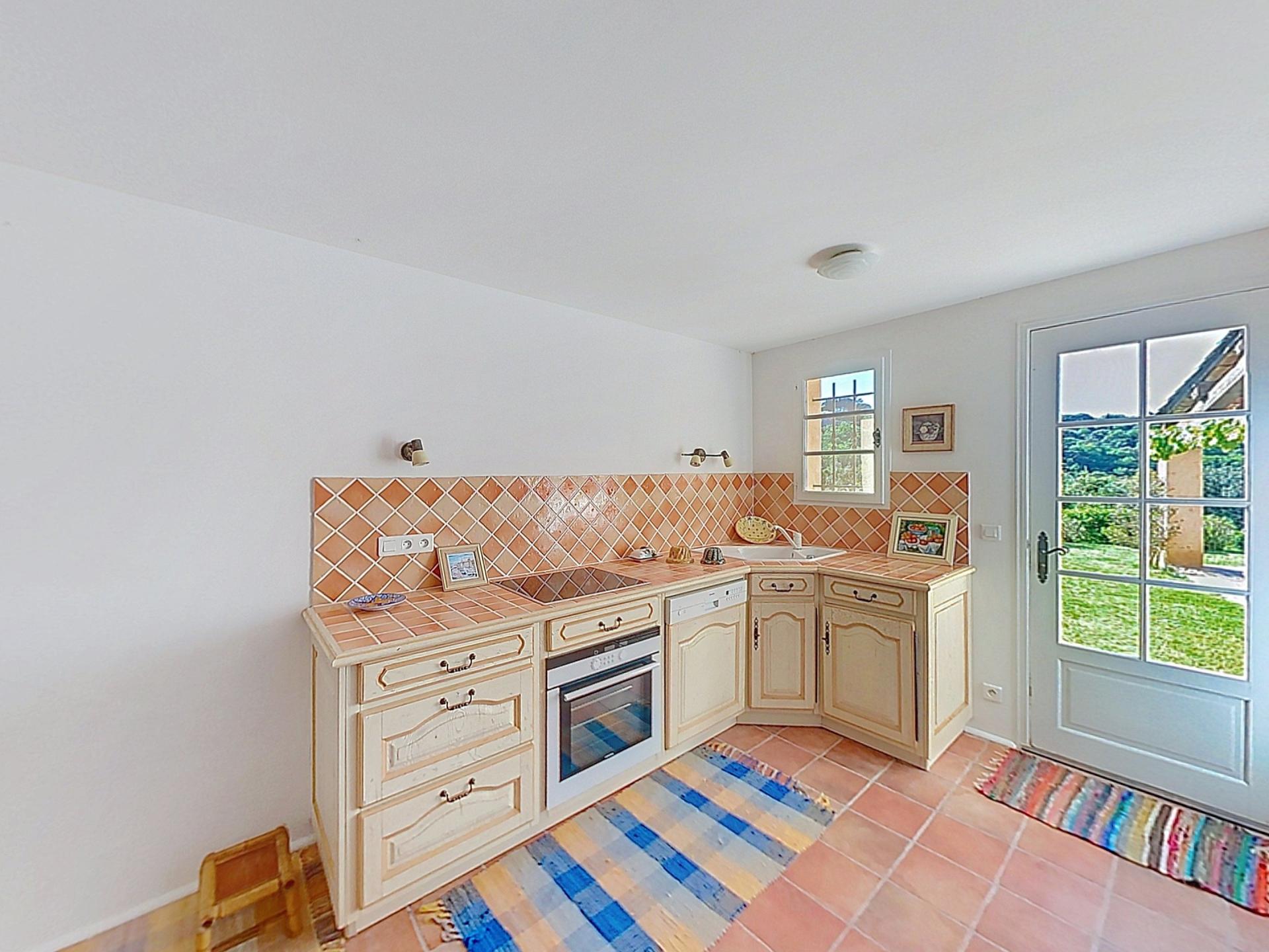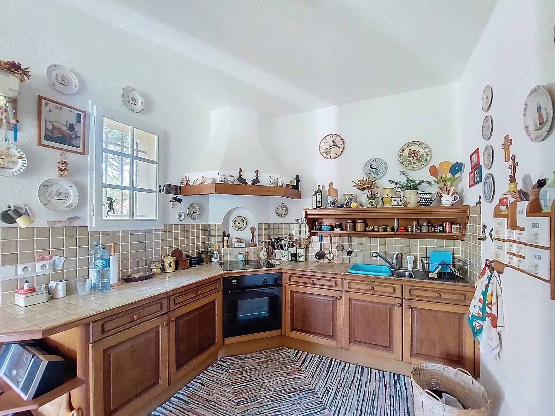 This villa stands out for its Provencal charm and exceptional setting. Set in a dominant position on a 2,500 m² plot, it enjoys panoramic views over the village of Grimaud, its medieval castle and the mill, while being just a stone's throw from the centre and shops. With a surface area of 225 m², this quality villa combines top-of-the-range features with meticulous finishing touches. On the ground floor, you'll find a huge, bright living room of 75 m² with a fireplace, high ceilings, exposed beams and a terrace with splendid views over the village. The semi-open fitted kitchen conceals a double scullery and a utility room. Upstairs, two large, light-filled bedrooms with views, each with its own private bathroom, including one with a roof terrace, provide comfort and privacy. An added bonus: an adjoining but independent 60 m² flat has a fully-equipped kitchen with dining area, a shower room and a large, bright bedroom on a mezzanine floor, with direct access to a terrace and the garden. This space can be reserved for your nearest and dearest or can provide you with a significant additional income if rented out on a seasonal basis. There is a carport for your vehicle, several parking spaces and a large workshop. The land is suitable for swimming pools and is ideally located for building. . This rare and elegant property offers a peaceful and comfortable living environment, with interesting prospects for personalising and extending your future home. Possibility to sell furnished if desired! I invite you to discover it, starting with a virtual visit, by contacting me on 06 31 98 57 48.