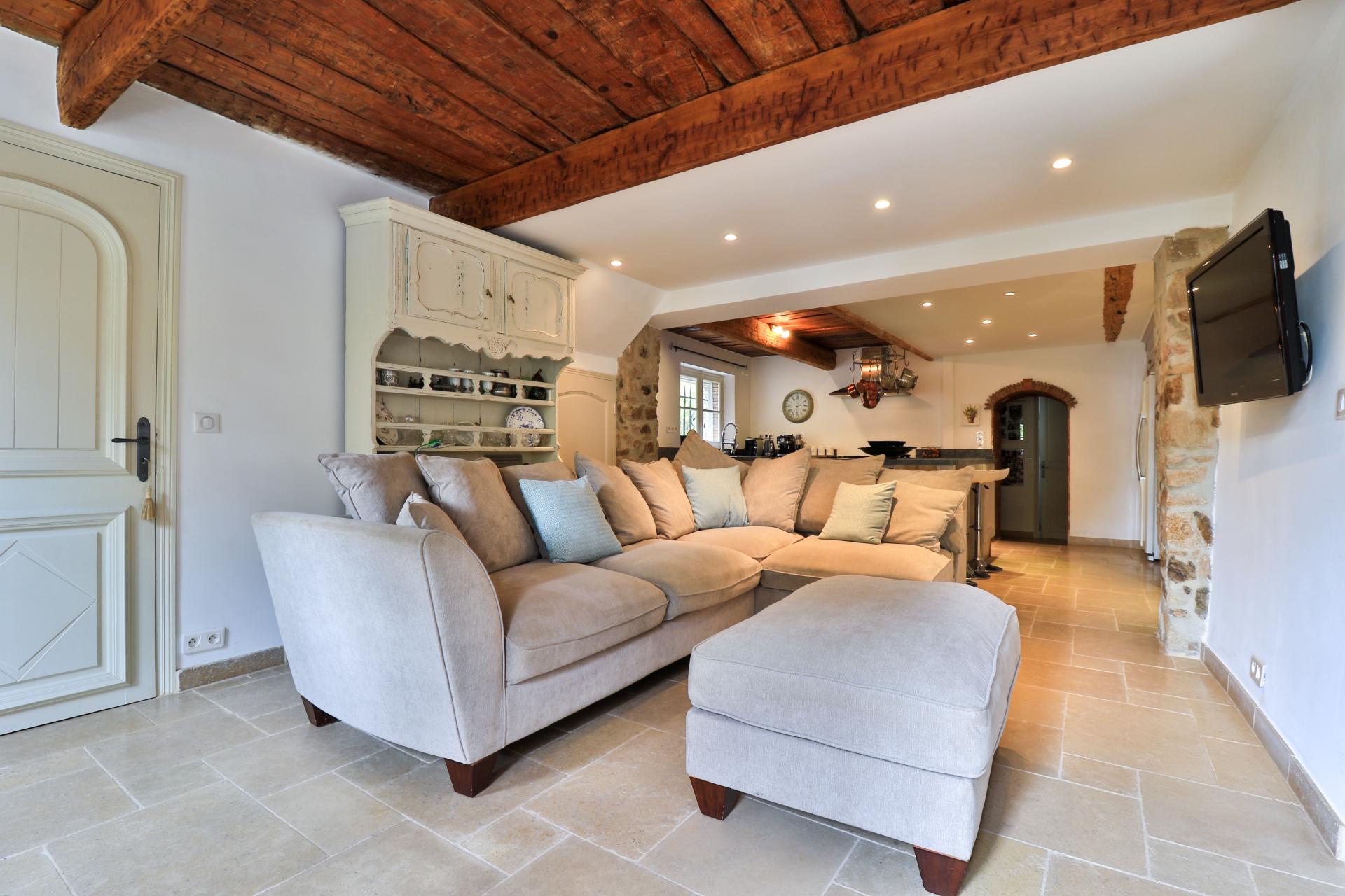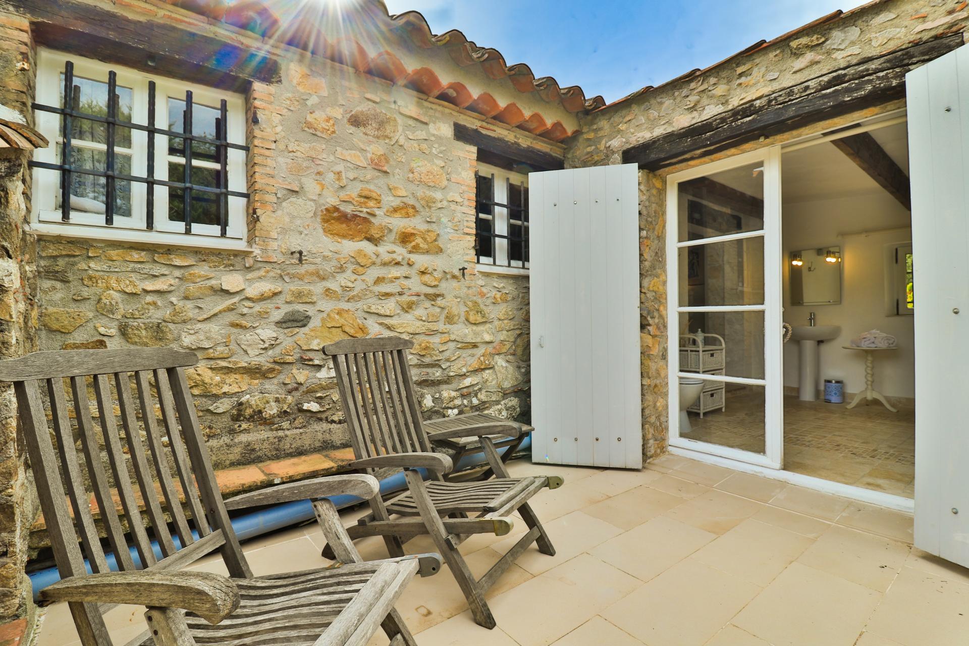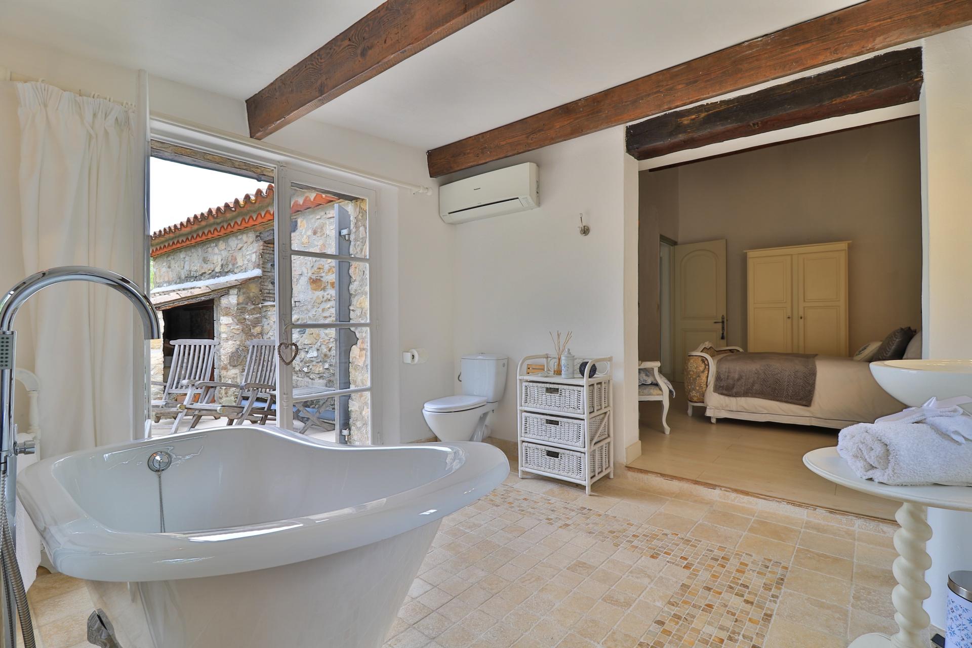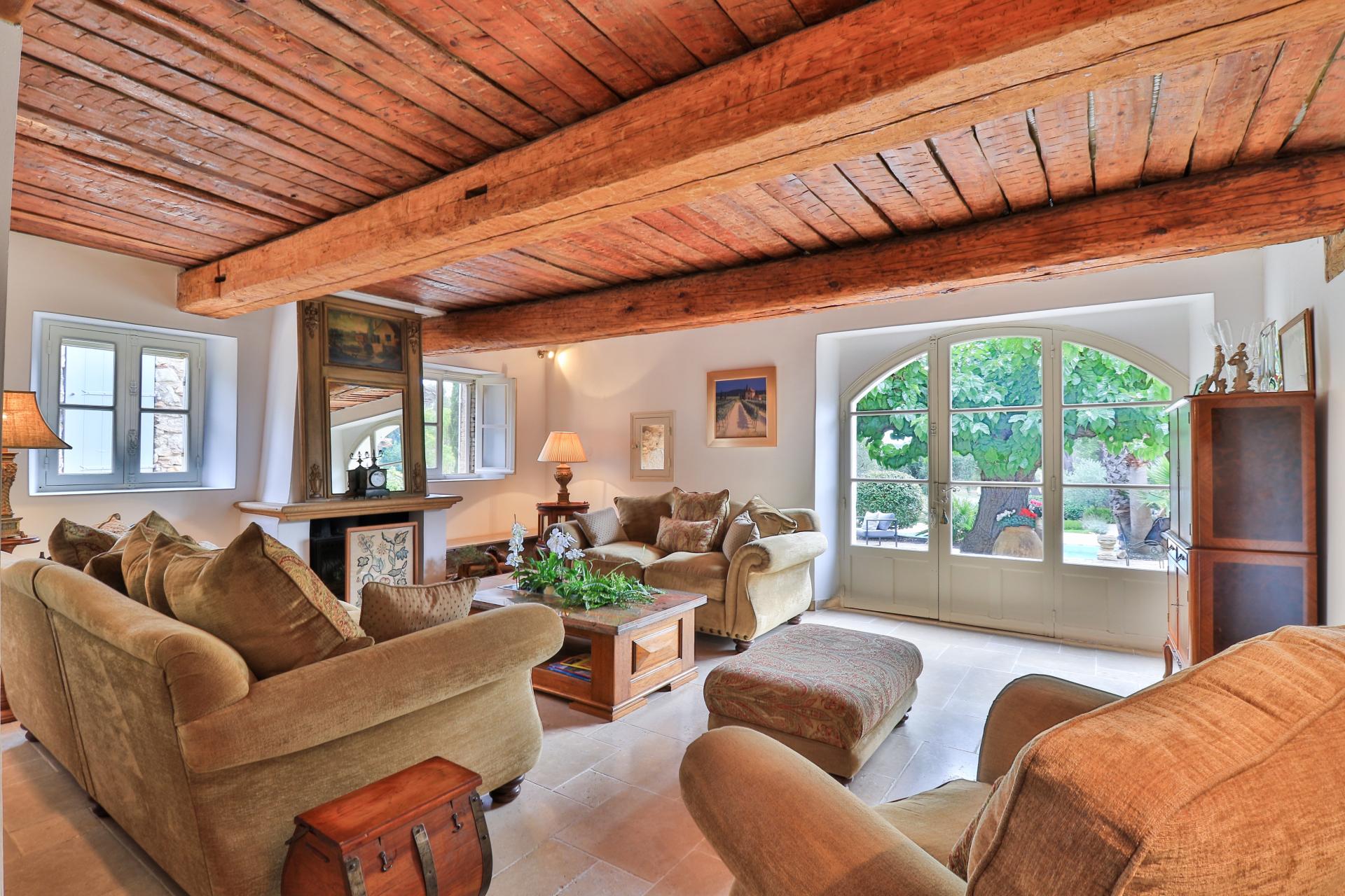 Ideally positioned between the medieval village of Grimaud and the pristine beaches of the Gulf of Saint-Tropez, this exceptional Provençal estate seamlessly blends timeless authenticity with refined contemporary comforts. This beautifully restored 18th-century stone bastide offers approximately 400 m² of elegant living space. The interiors are enhanced by exposed beams, a majestic fireplace, and generous volumes flooded with natural light. The main residence features two luminous reception rooms, a stylish bar area, an open-plan kitchen with central island, and a welcoming dining room—perfectly suited for both intimate gatherings and grand entertaining. Four spacious en-suite bedrooms, a mezzanine office, a laundry room, underfloor heating, and reversible air conditioning ensure year-round comfort. Recently repainted throughout—including all shutters—the home also boasts a charming terrace ideal for al fresco living. Two fully independent guest apartments offer additional accommodation, each comprising a bedroom, kitchen, bathroom, and dressing space—ideal for hosting friends or generating rental income. Set within 2,840 m² of meticulously landscaped gardens, the property features a stunning 12 x 5 meter swimming pool, a large pool house, a private well, and an electric gated entrance. This turnkey residence presents a rare opportunity to acquire a truly unique property in one of the Côte d’Azur’s most sought-after locations.