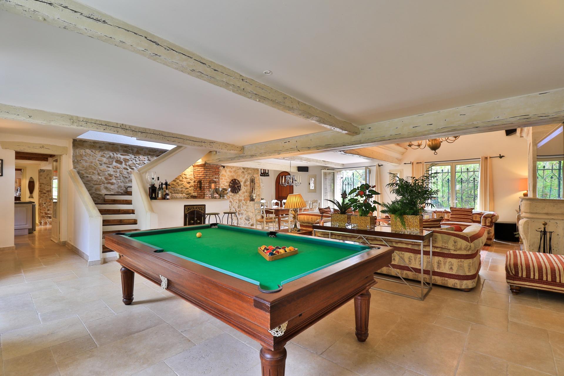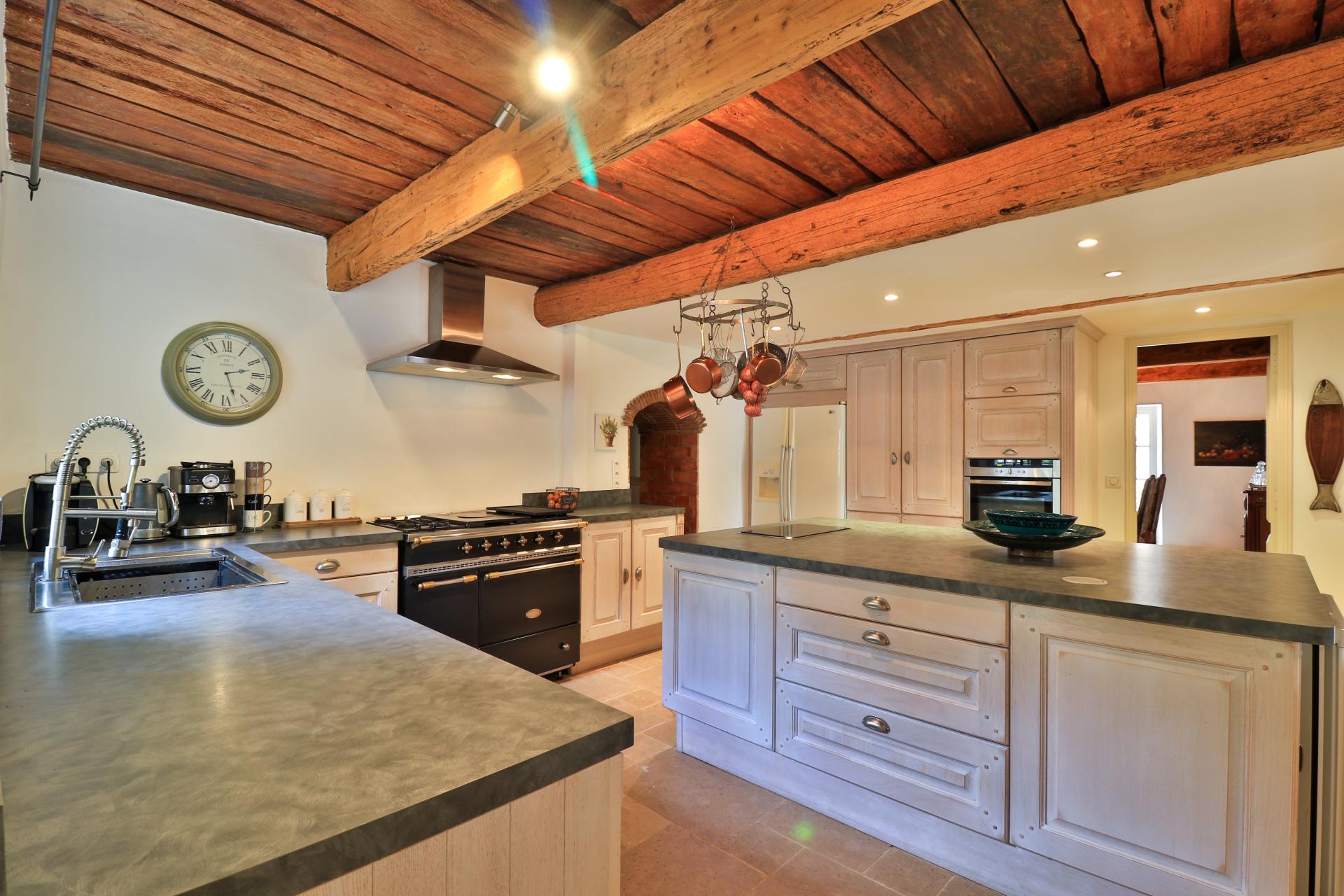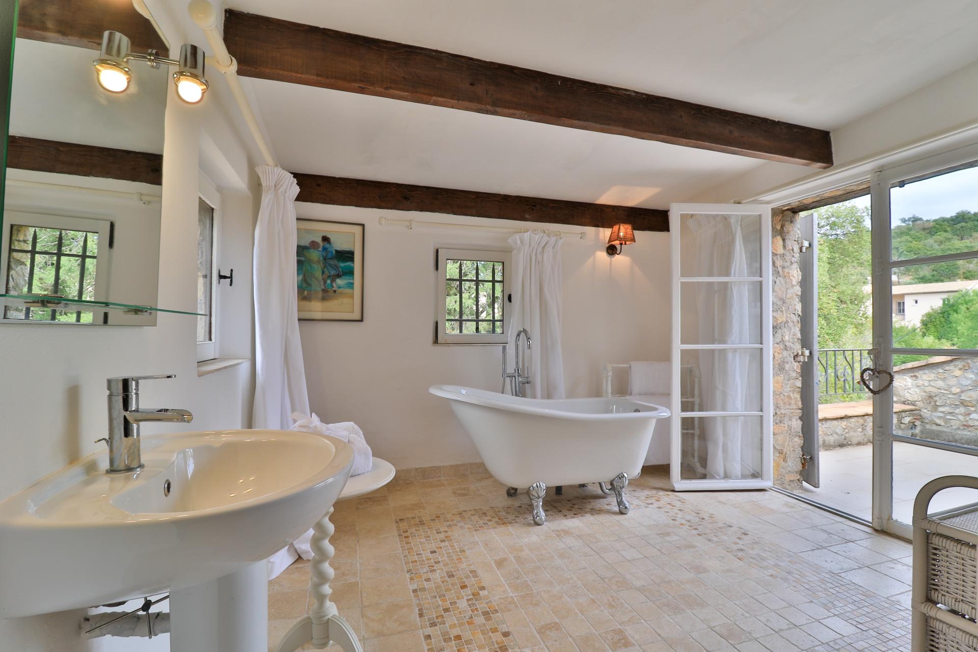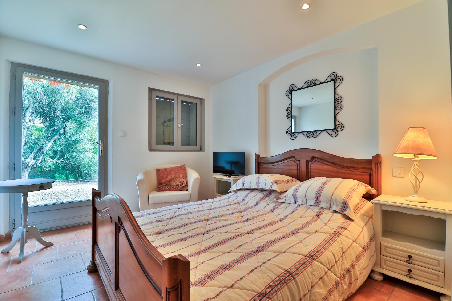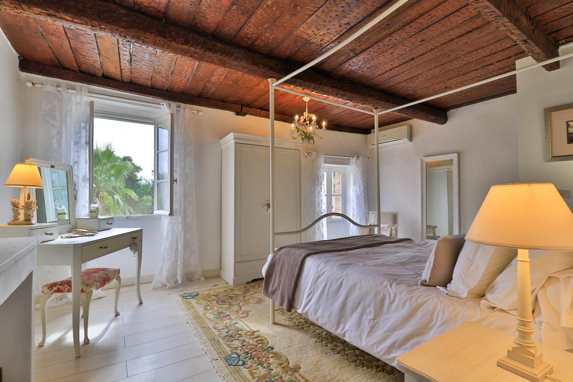 Ideally positioned between the medieval village of Grimaud and the pristine beaches of the Gulf of Saint-Tropez, this exceptional Provençal estate seamlessly blends timeless authenticity with refined contemporary comforts. This beautifully restored 18th-century stone bastide offers approximately 400 m² of elegant living space. The interiors are enhanced by exposed beams, a majestic fireplace, and generous volumes flooded with natural light. The main residence features two luminous reception rooms, a stylish bar area, an open-plan kitchen with central island, and a welcoming dining room—perfectly suited for both intimate gatherings and grand entertaining. Four spacious en-suite bedrooms, a mezzanine office, a laundry room, underfloor heating, and reversible air conditioning ensure year-round comfort. Recently repainted throughout—including all shutters—the home also boasts a charming terrace ideal for al fresco living. Two fully independent guest apartments offer additional accommodation, each comprising a bedroom, kitchen, bathroom, and dressing space—ideal for hosting friends or generating rental income. Set within 2,840 m² of meticulously landscaped gardens, the property features a stunning 12 x 5 meter swimming pool, a large pool house, a private well, and an electric gated entrance. This turnkey residence presents a rare opportunity to acquire a truly unique property in one of the Côte d’Azur’s most sought-after locations.