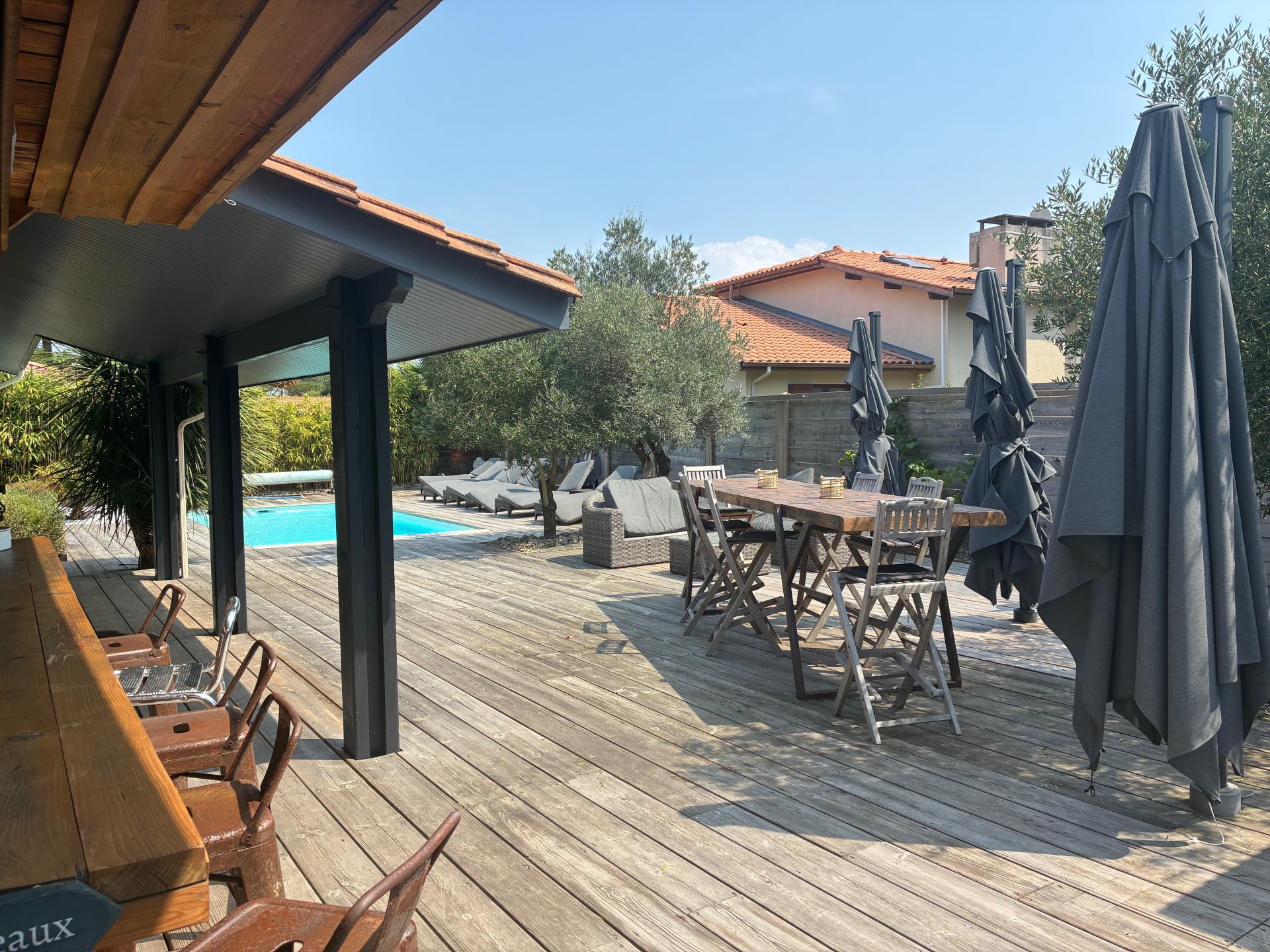 Et Située au calme absolu, à proximité immédiate des commerces, du collège et des ports ostréicoles, cette maison entièrement rénovée est un véritable coup de cœur sur le Bassin d’Arcachon. Édifiée sur une parcelle entièrement close de plus de 700 m², elle offre un cadre de vie rare, prêt à habiter. Vous y découvrirez une belle pièce de vie lumineuse avec poêle, prolongée par une cuisine ouverte moderne et conviviale, le tout donnant sur une vaste terrasse en bois exposée sud-ouest. Côté nuit, quatre chambres accueillantes et une salle de bain complètent l’ensemble. À l’extérieur, place à la détente et à la convivialité : une superbe piscine au sel avec pompe à chaleur, un pool-house aménagé pour recevoir famille et amis, ainsi qu’un jardin soigné idéalement orienté. La propriété dispose également d’un garage et permet de stationner jusqu’à quatre véhicules à l’intérieur, grâce à son portail électrique. Un bien clé en main, rare sur le secteur, alliant confort moderne, prestations de qualité et emplacement recherché au cœur de Gujan-Mestras.