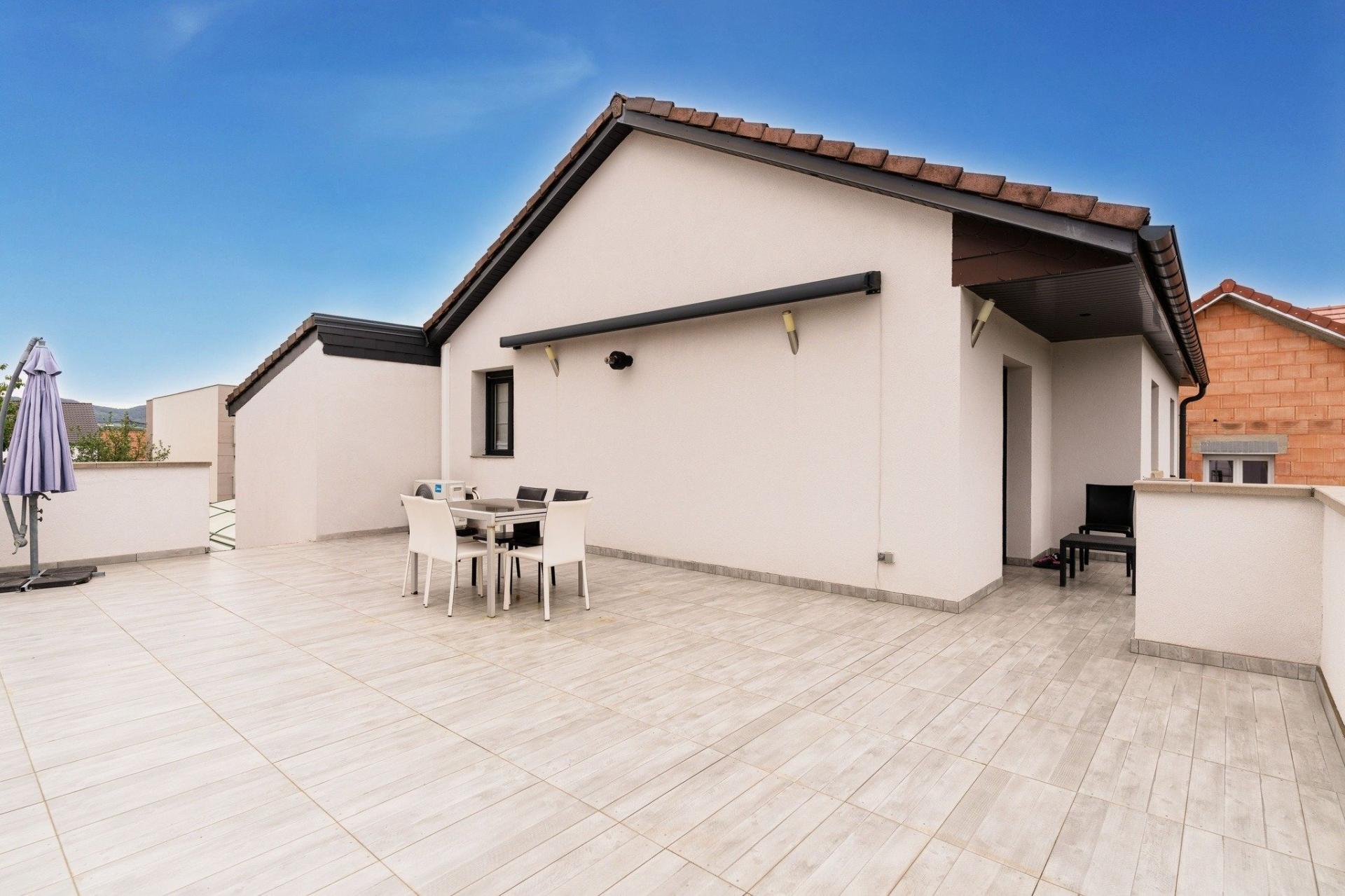 À vendre – Maison familiale rénovée avec piscine à Hettange-Grande Située à Hettange-Grande Route du Benelux, dans une commune dynamique de la Moselle, cette maison individuelle entièrement rénovée vous séduira par son emplacement privilégié, à proximité immédiate des commerces, écoles et axes de transport. Caractéristiques principales : - Surface habitable : 187 m² - Terrain : 683 m² - Pièces : 8 dont 5 chambres - Garage d’environ 50 m² - Piscine creusée et couverte Agencement : - Rez-de-chaussée : une entrée, trois chambres dont deux avec placards intégrés et une avec dressing, une buanderie, une salle de douche avec WC. - Étage : un vaste espace de vie avec salon, séjour et cuisine américaine, donnant accès à une terrasse d’environ 50 m², un bureau, deux chambres, un cagibi, une salle de bains/douches ainsi qu’un WC séparé. - Extérieur : un jardin, une piscine creusée avec espace terrasse abritée, un abri de jardin et un grand garage d’environ 50 m². Confort et prestations : - Chauffage assuré par climatisation réversible et radiateurs électriques - Double vitrage PVC avec volets motorisés - Façade récemment refaite Cette maison est idéale pour une grande famille en quête d’espace, de confort moderne et de moments de détente au bord de la piscine. Localisation recherchée : Hettange-Grande, à seulement quelques minutes de la frontière luxembourgeoise, un cadre de vie privilégié alliant tranquillité et praticité.