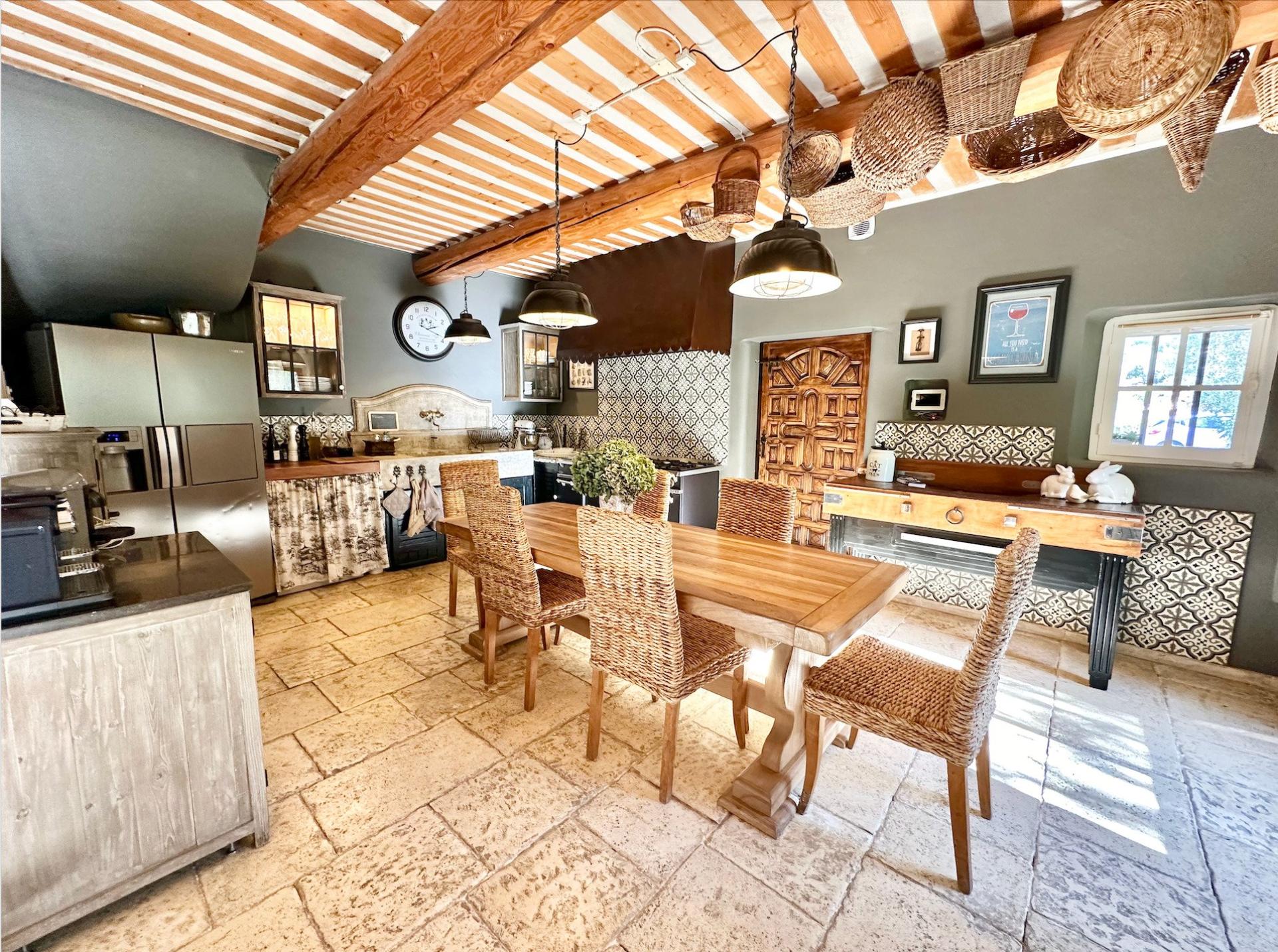 Christophe MARTIN vous présente à quelques minutes de l'Isle-sur-la-Sorgue, sur la colline St Jacques de Cavaillon, un magnifique mas provençal d'environ 236 m2 construit en 2001. La propriété est située au calme, à l'abri des regards, sur une parcelle de 2093 m2. Elle propose au RDC une très grande pièce de vie avec un poêle à bois, une cuisine équipée ouverte avec un sublime piano de cuisson, une chambre, une salle d'eau, un wc et une buanderie. Très beaux plafonds à la Française et sols en pierre de Ménerbes. Un escalier central vous donne accès à l'espace nuit de l'étage qui se compose de 3 belles chambres (dont une avec dressing), une salle de bains, une salle d'eau, des wc séparés. Le sous-sol a été aménagé en deux espaces : un bar/salle de jeux et une salle de sport complétement équipée, une chaufferie et des wc. Décoration soignée. La maison est vendue entièrement meublée ! A l'extérieur, vous profiterez d'un parc paysagé arboré d'oliviers, palmiers et essences méditerranéennes, avec une piscine chauffée, un pool house et un garage. Jolie vue sur le Mont Ventoux. Côté technique : arrosage automatique, chauffage au sol au gaz au RDC, poêle à bois Godin, forage, adoucisseur d'eau, portail automatique avec visiophone. Un bien rare à visiter sans tarder. Vidéo disponible sur demande. (*informations non contractuelles - les surfaces ne sont pas garanties)