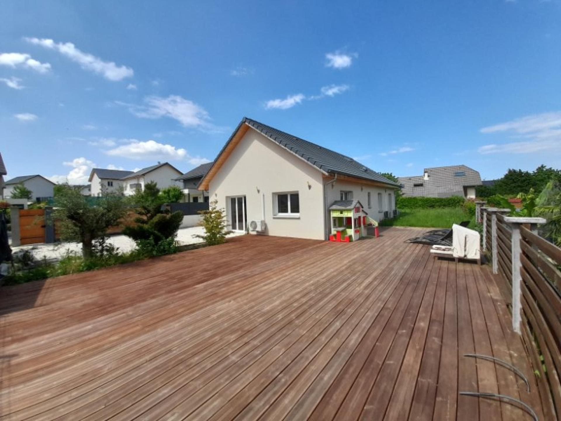 A proximité des axes routiers, vous vous rendrez facilement vers les bassins d'emploi d'Annecy ou d'Aix/Chambéry, dans un village disposant de tous commerces, médecins et écoles.<br/>Dans cette agréable résidence récente, cette maison de 2018 est idéalement érigée sur un terrain intégralement clos qui permet de garer vos véhicules, de disposer d'une très belle terrasse avec vue sur la montagne, et d'offrir une aire de jeux à vos enfants et un jardin potager, le cas échéant.<br/>Le très beau séjour, lumineux, ouvre sur le jardin et la terrasse et dispose d'une vaste cuisine; quatre chambres, permettent de loger votre famille.<br/>Envie de davantage de place? Près de 70 m2 de plancher sont exploitables rapidement sous les combles.<br/>Villa très économique.<br/>Pour une famille nombreuse ou amateurs d'espace et de tranquillité.