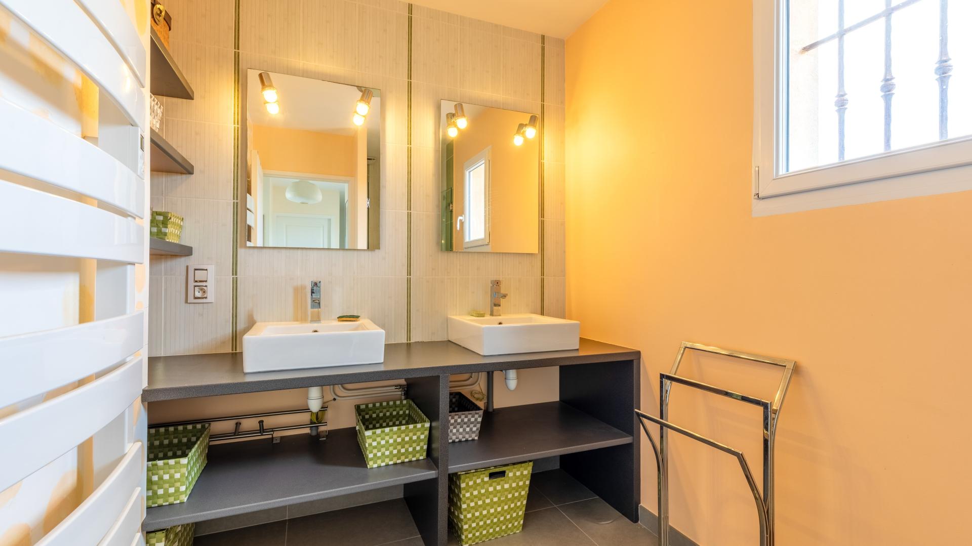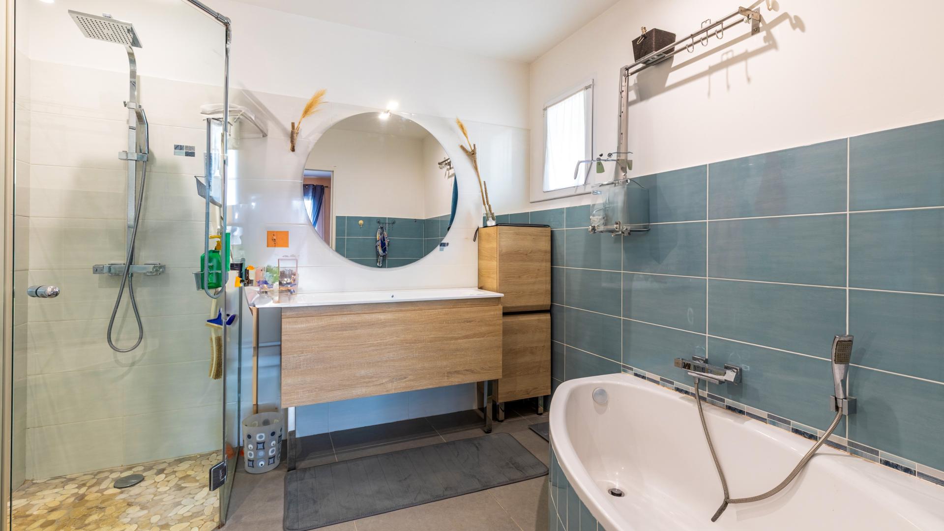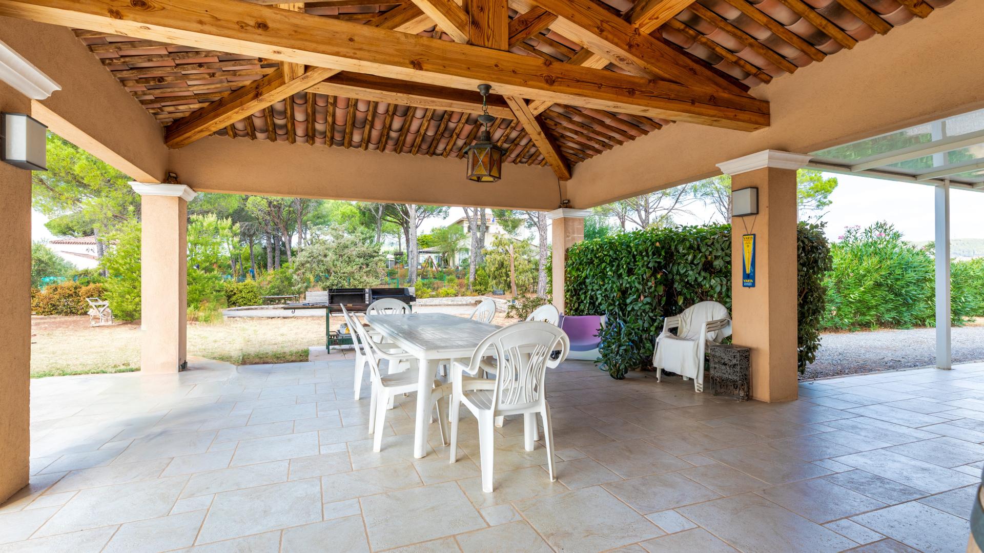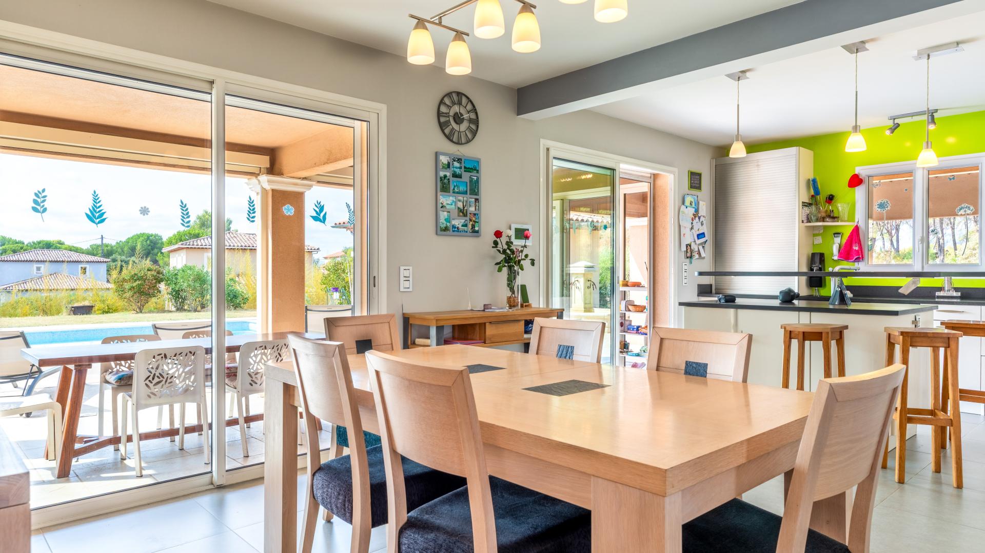 In a preserved green setting and in absolute calm, this very upscale villa will seduce you with its generous volumes and quality services. It offers, on the ground floor, a beautiful entrance hall opening onto a large bright living room, where are side dining room, elegantly furnished open kitchen and living room with fireplace, 2 real master bedrooms, as well as an ideal office for telecommuting. An open-plan kitchen with a scullery, a large laundry room. The floor offers 2 bedrooms, one on the terrace, a bathroom and a toilet. A veranda leads you to a vast garden, numerous terraces including a covered one, a summer kitchen, a 12/6 swimming pool equipped with a solar cover and a pool house, a pétanque field, a fountain as well as a space arranged to accommodate a camper. And finally a basement and a double garage. All with high-end services. Its architecture and privileged environment make it a rare property on the market, combining comfort, functionality and refinement. A haven of peace to discover without delay!