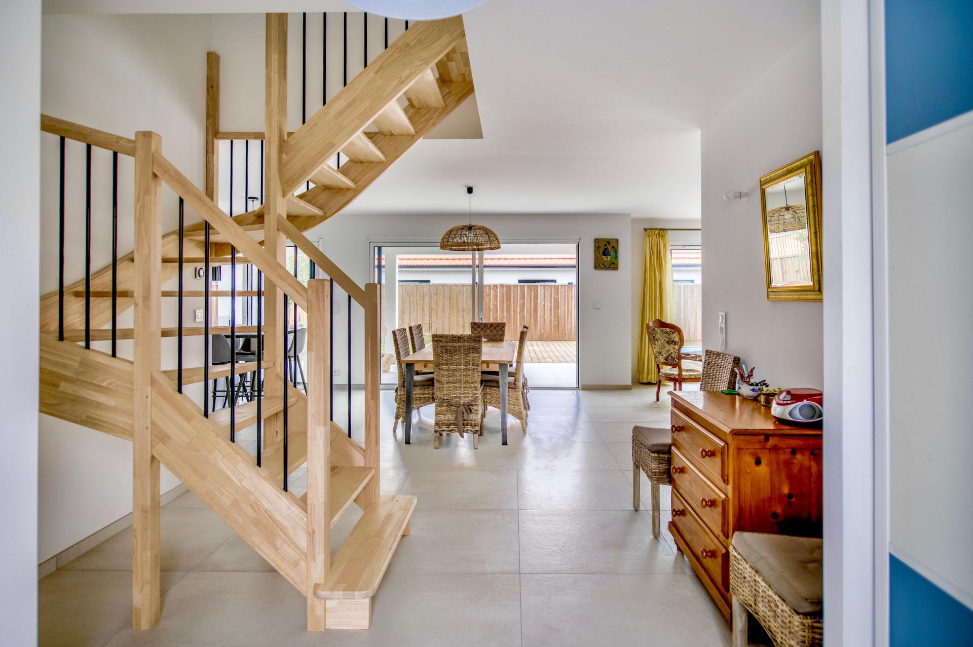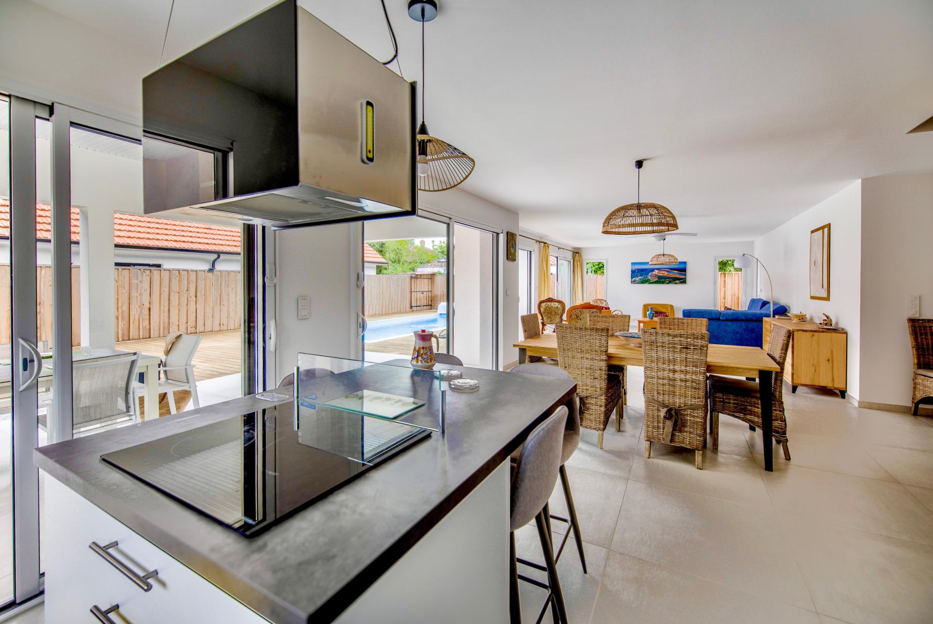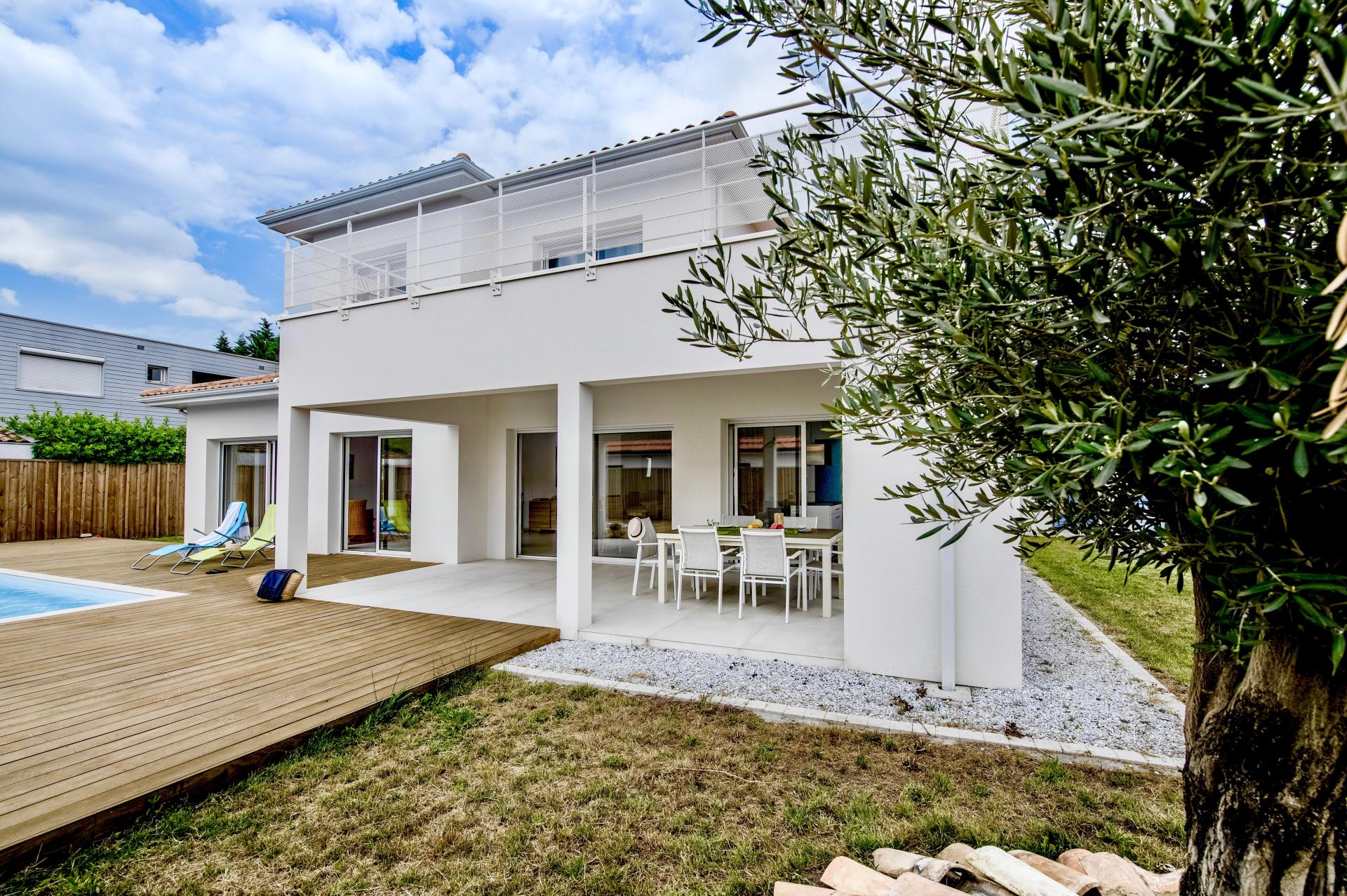 Située à La Teste de Buch (33260), près de la place du marché et de la place Gambetta, cette maison d'architecte de 2021, 176m2, vous séduira avec ses deux niveaux, par son emplacement et ses prestations haut de gamme. Elle est bien située à l’abri des nuisances, dans une impasse très calme. L'extérieur de cette charmante maison de 590m2 comprend une terrasse en bois de 80m2, une terrasse carrelée de 24m2, une piscine au sel 3x8m avec robot et volet de protection, un garage séparé de 40m2 (place pour 2 voitures) et un parking goudronné pour 3 voitures. Le terrain est entièrement clôturé. En RDC: Entrée avec placard, WC avec lavabo et douche, séjour, cellier, 2 chambres parmi lesquelles l'une est une suite parentale avec dressing et salle d'eau. A l'étage: une salle de bains, des WC, 3 chambres avec placards et une terrasse carrelée de 21m2. Le chauffage est au sol, et l'eau chaude est produite par pompe à chaleur. Réalisez votre rêve dès aujourd’hui avec cette maison moderne, élégante et éco-responsable!
