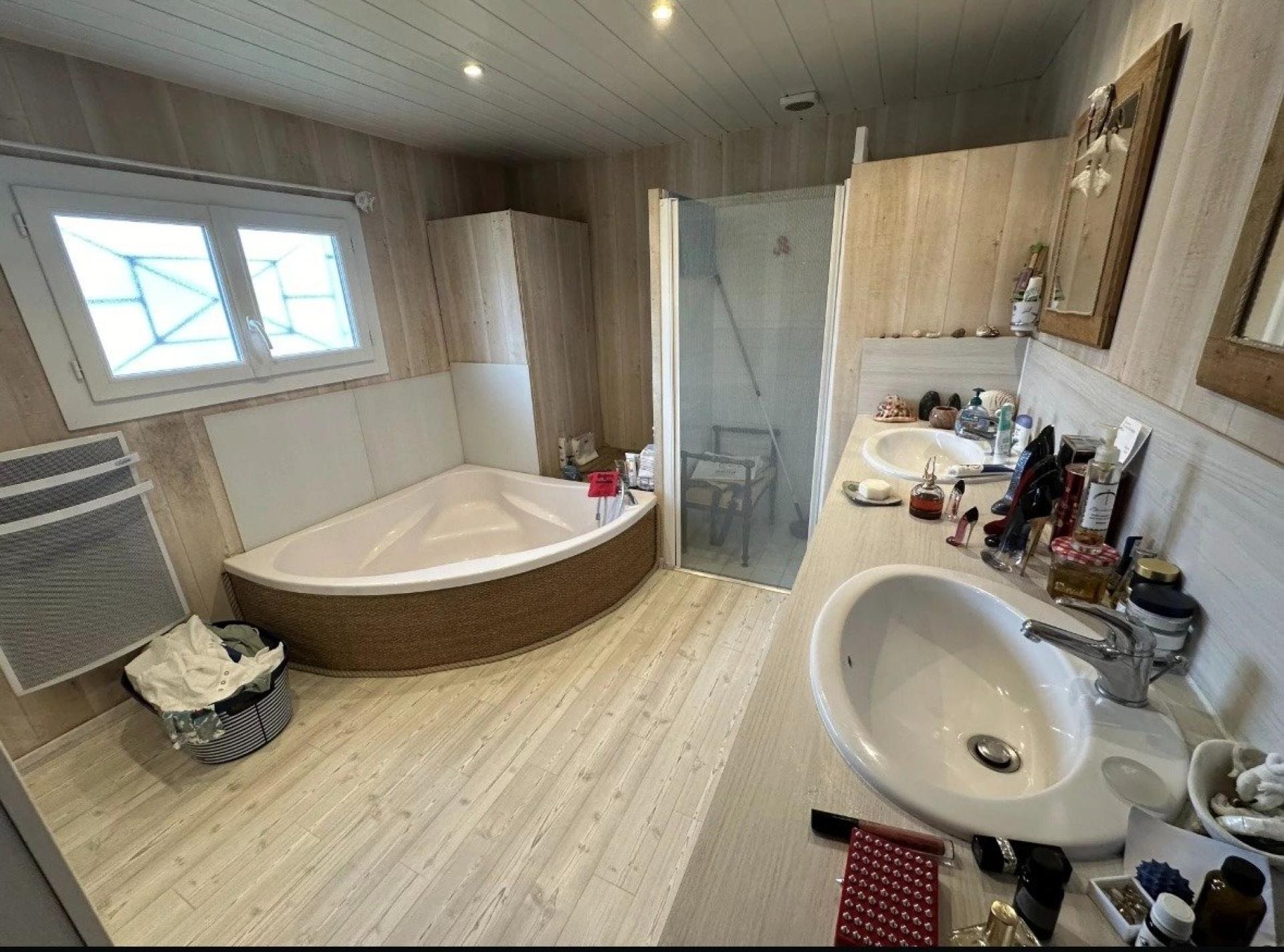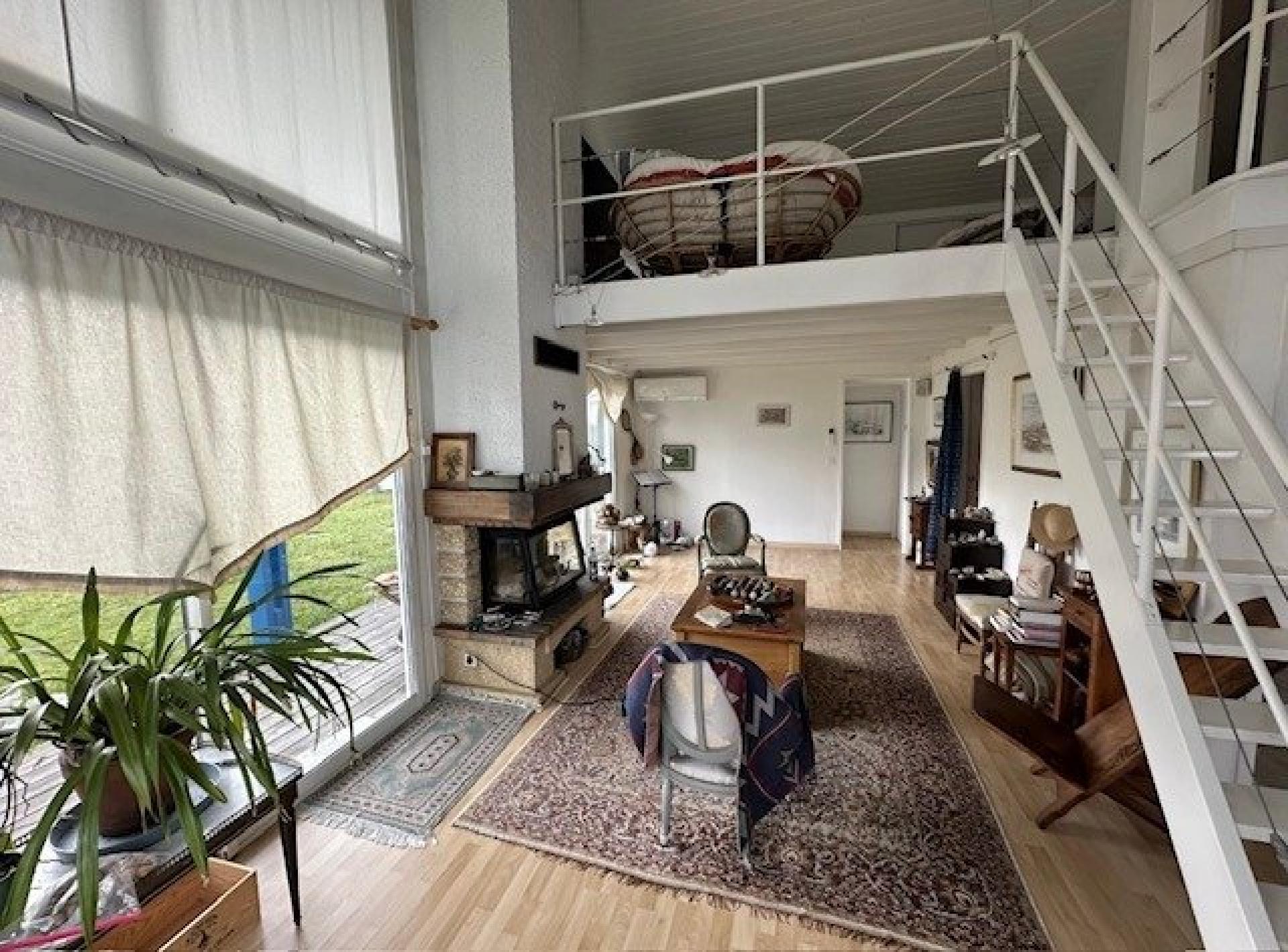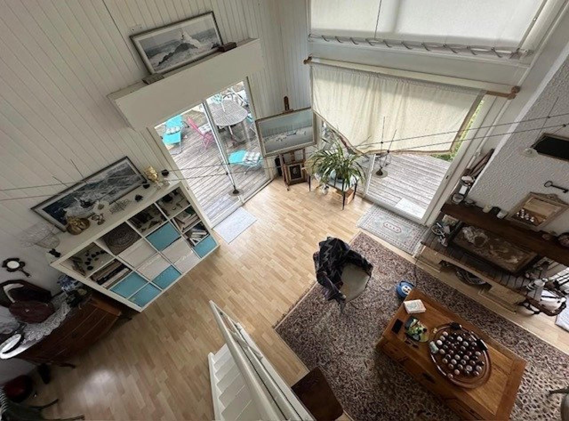 Laissez vous séduire par cette très jolie maison ossature bois édifiée en 1987 qui nous rappelle sans cesse le bien être du bassin d'Arcachon. Entièrement aux goûts du jour, cette maison style duplex se compose d'une entrée avec placard, un séjour lumineux avec cuisine semi-ouverte et équipée. Le toit cathédrale de la pièce principale d'environ 55m² vous offre un confort et un espace de vie ultra agréable. Coté nuit, vous disposerez de trois chambres dont une en RDC, une salle de bains avec douche et baignoire, un WC indépendant et une mezzanine de 13m². Le plus, plus, plus de ce bien est son studio entièrement autonome et équipé . Il dispose également d'une place de parking. Le tout sur un terrain de 499m² avec piscine 8*4 et terrasse bois.......... Située dans ce quartier arboré et résidentiel, vous apprécierez le calme et la tranquilité du secteur, le tout à equi-distance entre le centre ville de La Teste et le quartier de La Hume. Cette maison coup de coeur n'attend plus que vous. Pour visiter ou pour plus de renseignements, contactez-moi.