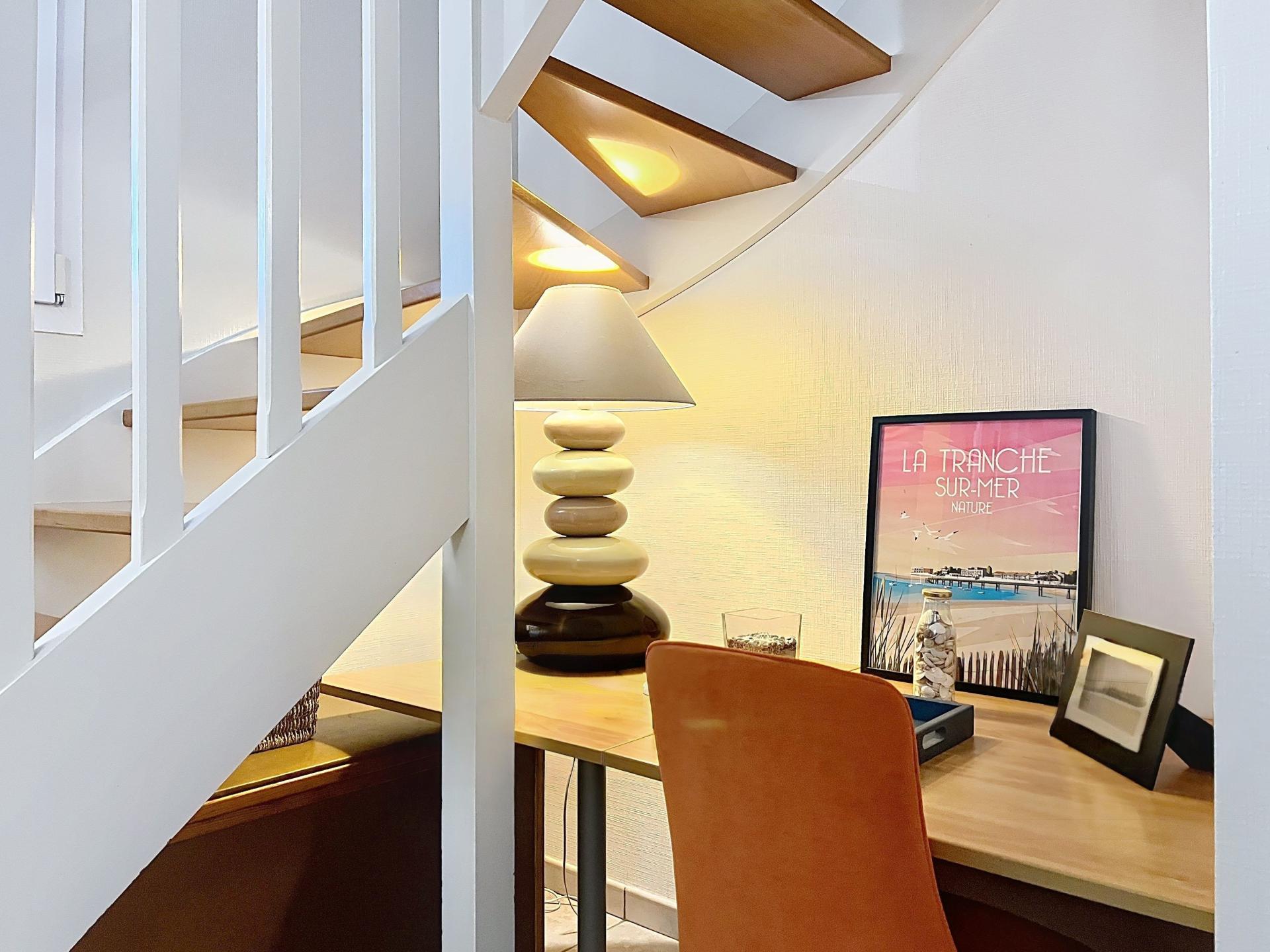 En exclusivité et ouverte au partage avec les confrères Emmanuelle FERRETTI by Safti vous propose, située dans l’un des secteurs les plus recherchés de La Tranche-sur-Mer, à seulement 900 m de la plage accessible par un charmant sentier forestier, cette maison bâtie par un maître d’œuvre en 2000 se distingue par son emplacement unique et sa vue exceptionnelle sur toute la ville. Édifiée sur un terrain entièrement aménagé de 1 420 m², elle offre un cadre de vie intime, soigné et parfaitement entretenu, avec de belles terrasses à l’avant comme à l’arrière. Description intérieure – 160 m² parfaitement distribués Rez-de-chaussée • Entrée accueillante avec rangements et espace bureau / secrétaire, pratique pour le télétravail. • Superbe pièce de vie feutrée, chaleureuse, dotée d’une cheminée à foyer fermé. • Salle à manger lumineuse, grâce à une belle lumière traversante. • Cuisine indépendante récente, entièrement équipée. • Buanderie attenante. • Espace nuit de plain-pied composé de : • 3 chambres avec rangements, • 1 salle de douche, • 1 WC indépendant. Étage • Une suite parentale avec salle de douche rénovée, accès direct à un balcon-terrasse offrant un superbe panorama. Sous-sol complet : un atout rare • Double garage permettant de stationner deux véhicules. • Cave et espaces de stockage. • Accès direct à la maison. Extérieurs & environnement • Terrasses avant et arrière permettant de profiter du soleil à tout moment de la journée. • Terrain paysagé et soigné, sans vis-à-vis. • Premier commerce à 100 mètres seulement : confort de vie absolu. • Quartier calme, boisé et très recherché. Les + de cette propriété • Vue dominante exceptionnelle • Accès plage à pied par sentier forestier • Maison parfaitement entretenue, décoration récente • Cuisine & salles d’eau refaites • Suite parentale avec terrasse • Double garage et cave • Terrain rare sur le secteur (1 420 m²)