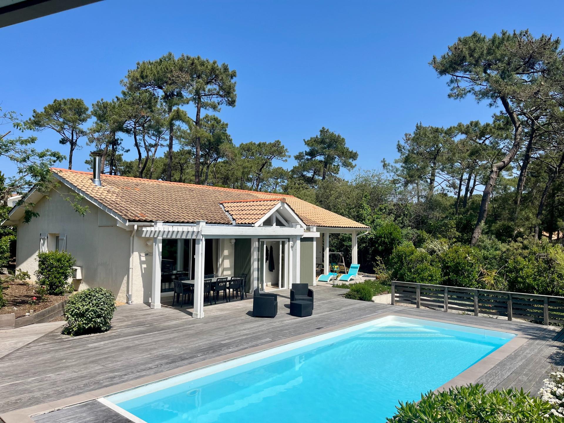 Located in the commune of Lacanau (33680), this house sits on a 1,200 m² divisible plot, offering a peaceful and green setting. Just 900 m from the lake and 12 km from the ocean, this property enjoys an ideal location for lovers of nature and outdoor activities. Furthermore, the proximity of cycle paths facilitates gentle travel in the region. This property includes a 40 m² garage with an attic. Nestled in a very quiet neighborhood, this 170 m² stone farmhouse consists of 5 rooms, including 4 bedrooms. Two bathrooms and two toilets complete this property, offering comfort and functionality to its residents. An apartment is also rented year-round, adding an additional income opportunity. This house is ideal for welcoming a family or visitors in complete privacy. With bright rooms and a well-thought-out layout, this property represents a haven of peace close to amenities.