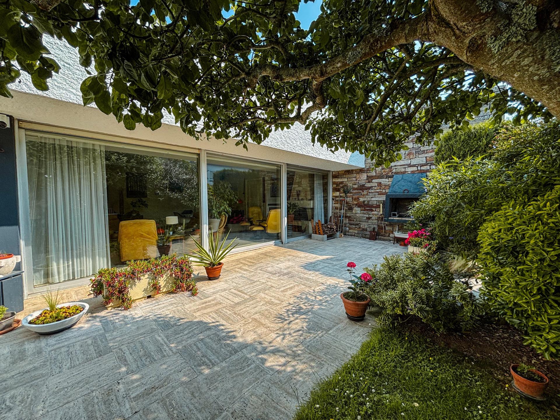 RARE ! 5min de la plage et bourg - Maison de plain-pied de l'architecte René Delayre ! Alexandre Ferré - SAFTI Immobilier, vous présente une maison de 1965 dessiné par l'architecte de renom, René Delayre. Pour les amoureux du style Moderniste (Le Corbusier, Bauhaus) avec une vie de plain-pied, vous serez séduit par la situation exceptionnelle du bien. Cette maison "historique" de Larmor d'environ 175m² habitable, offre un potentiel incroyable. La maison propose deux entrées indépendantes qui permet une activité libérale et/ou locative. Des travaux de rafraîchissement seront les bienvenus, pour cette magnifique maison d'architecte, qui fût mise en lumière dans la revue "Maisons d'Ouest - octobre 1966" Partie jour : Palier à l'entrée avec WC indépendant et lave mains. Grand salon-séjour avec cheminée. Une cuisine ouverte avec coin repas de 18m2 donne sur le patio-jardin d'hiver. Un séchoir côté nord accessible depuis la buanderie. Partie nuit : 1 Bureau/chambre de 11m2 1 Chambre donnant sur le patio de 13m2 1 Chambre de 22m2 avec petite SDE (deux chambres fusionnées) 1 SDB à double communications entre les chambres 13m2 et 22m2 1 WC indépendant et de nombreux rangements Partie indépendante (communique avec le reste du bien par le couloir cf. photo) : Ancien garage 6X5m, transformé en partie nuit avec un accès extérieur indépendant 1 chambre de 11m2 1 chambre de 9m2 SDB avec WC Pourrait être reconvertie en espace de travail pour une activité libérale ou en partie locative. Une buanderie avec placards dessert une grande cave d'environ 70m2 saine, qui sert de pièce de stockage, d'établi et de réserve. Un ballon Atlantic de 230L thermodynamique y est installé. Chauffage par PAC AIR/EAU de 2009, installé en extérieur dans le séchoir. Radiateurs en fonte d'origine. Cheminée fonctionnelle. Un grand garage de 60m2 complète le bien. Toit plat (dalle béton, couverture zinc fixée sur charpente) pente de 6° avec chéneau central dans la longueur en bonne état général. Murs en pierre de Calan à joints vifs. jardin paysagé bordé d'une grande terrasse, barbecue en béton dessiné par le fils de René Delayre et un abris de jardin-stockage, offrent un petit cocon de verdure le tout exposé au Sud. Les points forts : Maison faisant partie du patrimoine de Larmor et du courant architectural Moderniste (Le Corbusier, Bauhaus) Vie de plain-pied Investissement locatif, Libérale, Gîte/Airbnb Emplacement privilégié - proche écoles, plages, bourg *** René Delayre est une figure emblématique de l’architecture moderniste en Bretagne. Diplômé des Beaux-Arts et acteur clé de la reconstruction de Lorient après-guerre, il a marqué le paysage urbain avec des réalisations mêlant lignes épurées, toits plats et volumes fonctionnels. On lui doit notamment l’église Notre-Dame-de-Pitié à Kervignac (labellisée Patrimoine du XXe siècle), les ensembles urbains « Plein Ciel » à Lorient, ainsi que plus de 200 maisons individuelles à Larmor-Plage, Carnac ou Ploemeur. Son travail incarne une modernité sobre et lumineuse, parfaitement intégrée à l’environnement breton.*** N'attendez plus pour découvrir ce bien ! Contactez-moi dès maintenant pour organiser une visite !