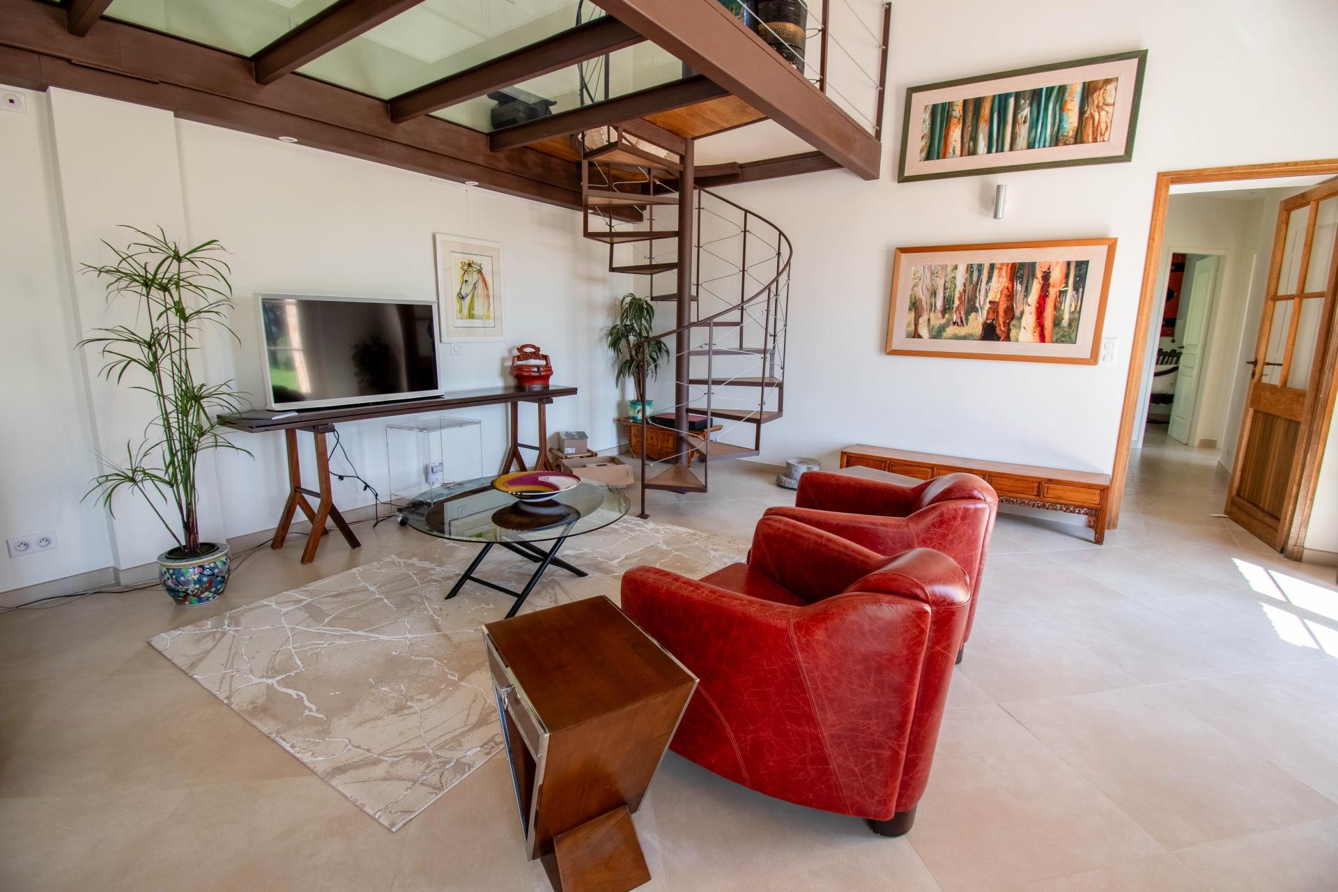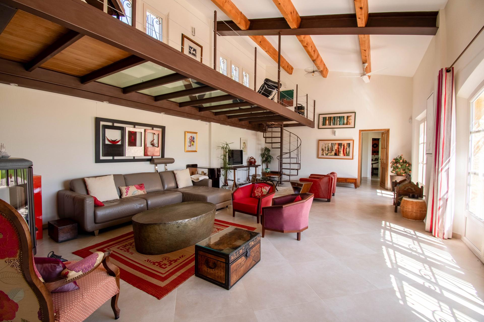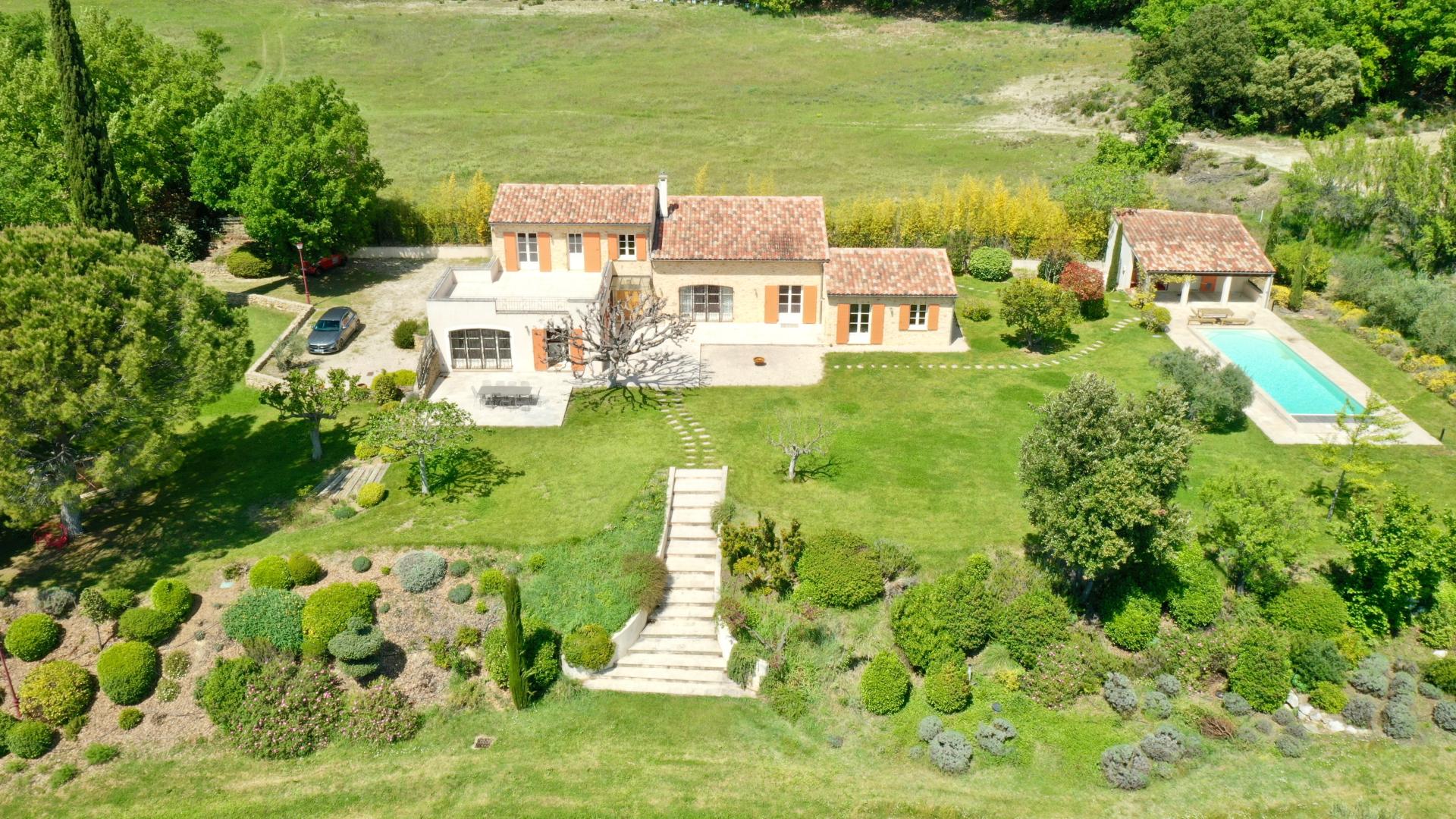 Au pied du LUBERON, située dans la superbe et pittoresque commune de LAURIS, à 5 minutes de LOURMARIN, au cœur d'un écrin de verdure, au calme absolu, cette jolie propriété de 340m2 est idéalement nichée dans un quartier paisible offrant une vue panoramique époustouflante. À proximité des commodités essentielles et des transports en commun tels que des arrêts de bus, elle bénéficie d'un emplacement privilégié. Le parc paysager de 15585m², agrémenté de 55 oliviers et divers arbres fruitiers, abrite une belle piscine, une mare, offrant un cadre extérieur idyllique. Dotée d'une surface habitable de 300m² répartie sur trois niveaux avec des matériaux de qualité, cette villa de caractère se compose d'une entrée spacieuse, d'une magnifique séjour lumineux avec sa mezzanine vitrée, amenant sur 2 belles terrasse exposées SUD, une grande cuisine ouverte en granit et superbement équipée, 3 chambres, 2 salles de bain, 1 salle d'eau, 2 wc, une buanderie. À l'étage, une suite parentale avec salle de bain et dressing, amenant sur une terrasse pour profiter des couchés de soleil, ainsi qu'un grand bureau, offrent un espace privé confortable. La propriété dispose également d'une dépendance de 40m² avec une chambre, une salle d'eau et une cuisine potentielle (ou cuisine d'été pour la piscine). Construite en 2007 avec des finitions de qualité (IPN, poutres), cette demeure est sécurisée, avec alarme et 2 portails automatiques, elle offre des aménagements luxueux tels que baignoire, douche italienne, chauffe-serviette et WC intégrés. L'ensemble avec chauffage au sol/rafraichissant par pompe à chaleur, complété par une toiture en tuiles canal constitue une opportunité rare alliant confort, élégance et sérénité dans un cadre enchanteur de la Provence. Double vitrage avec des grilles en forme de "lyres", arrosage automatique et par goutte à goutte via forage, fosse septique OK, 4 garages boxés. Fibre optique.