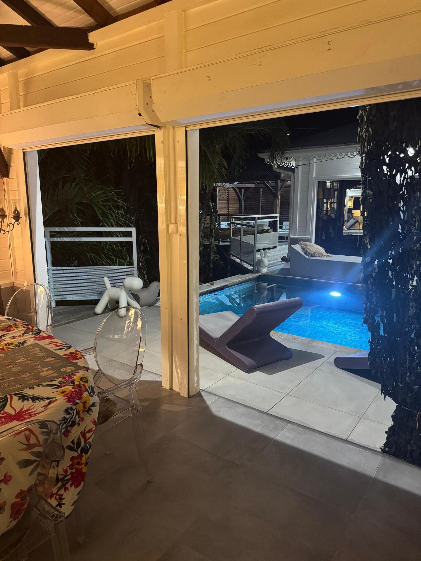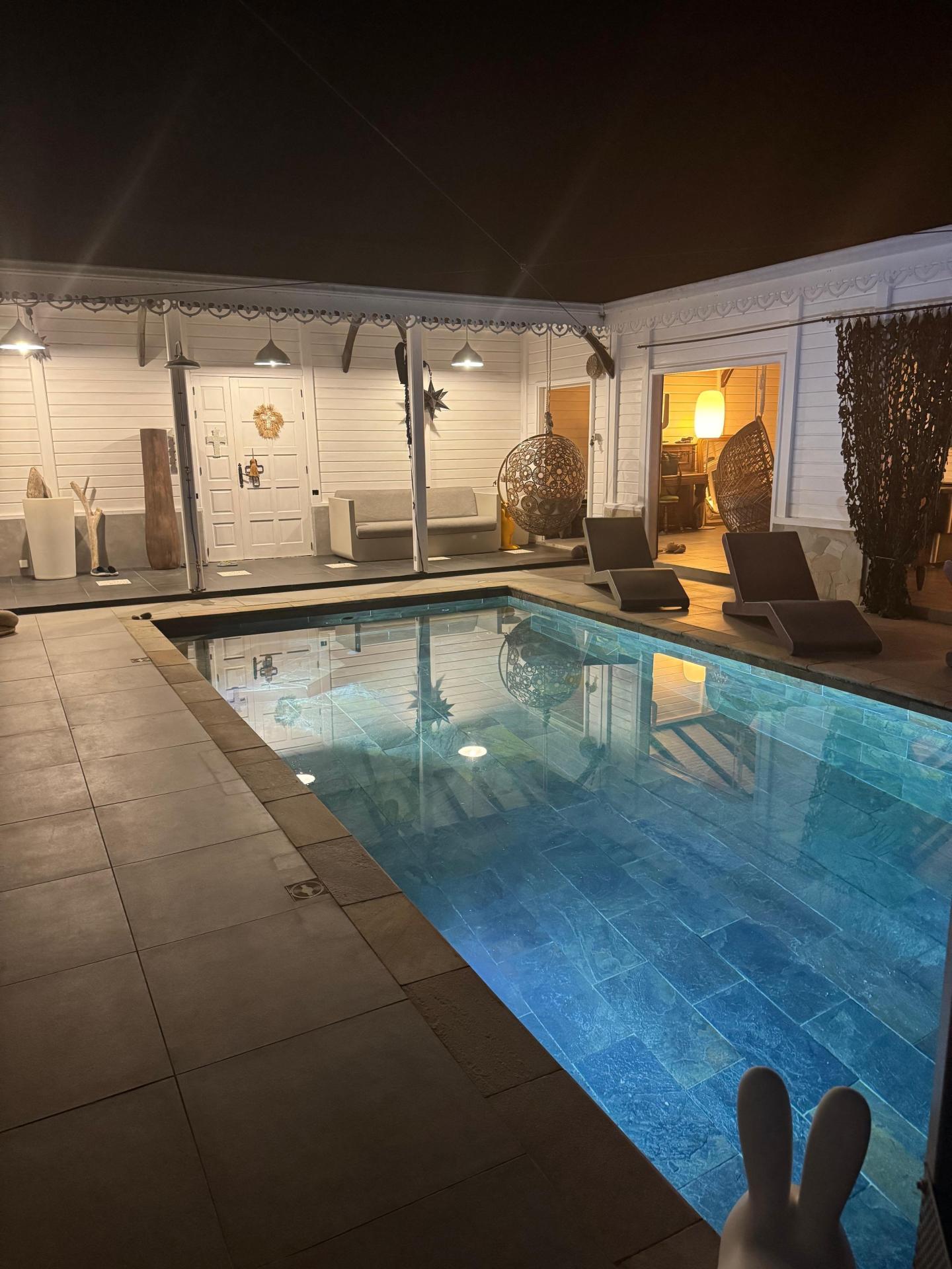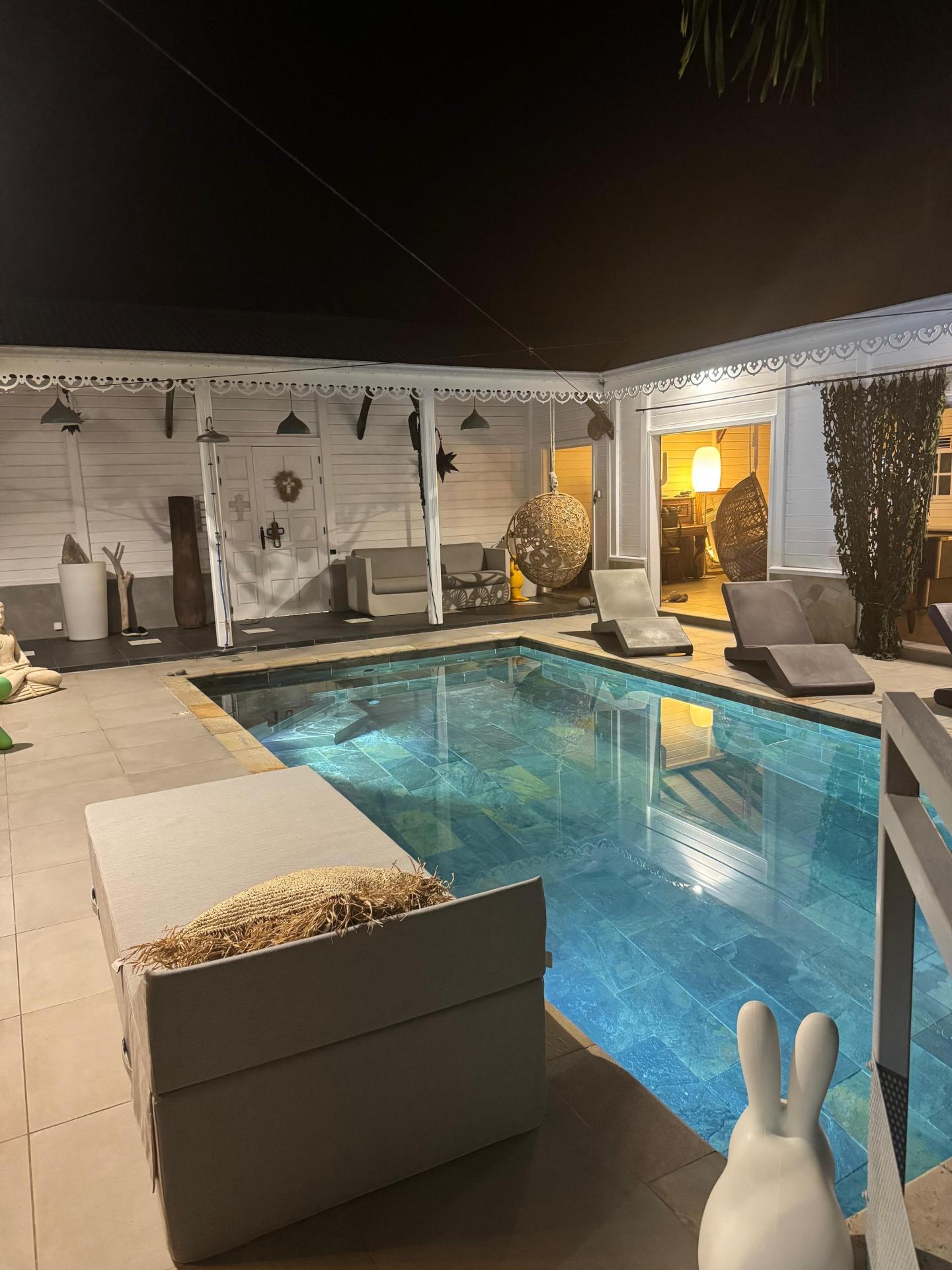 Située à Le François (97240), cette magnifique maison d'architecte de 140 m² est nichée dans un environnement paisible et verdoyant, au cœur d'une véritable palmeraie. Offrant une véritable oasis de tranquillité, cette propriété se trouve à proximité de toutes les commodités nécessaires, ainsi que de divers points d'intérêt locaux, faisant de cet emplacement un choix de vie idéal pour les amoureux de la nature. Construite en 2010 sur un vaste terrain de 1972 m², cette maison d'exception se compose de 5 pièces, dont 4 chambres dont une en duplex. Dotée de 2 toilettes, 2 salles d'eau (douche à l'italienne), d' une piscine centrale en pierre de Bali, cette demeure offre un cadre de vie luxueux et moderne. De plus, la possibilité d'agrandissement avec un appartement T2 en sous-sol ajoute une dimension supplémentaire à cette résidence unique. Vendue entièrement meublée et équipée, avec un garage clos, cette propriété allie élégance, confort, sérénité pour une expérience de vie incomparable.
