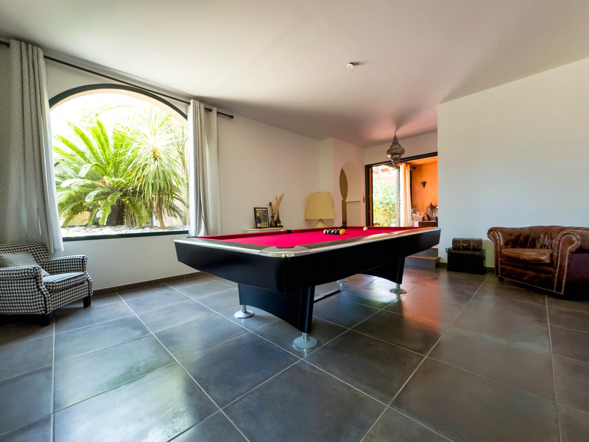 In the heart of a popular residential area of the Grau d'Agde, discover this beautiful villa on one level, combining tranquility and exotic charm. On a landscaped plot of 1000 m 2, this unique residence of 363 m2 stands out for its original architecture and generous living spaces. Sophisticated interior: • Huge bright living space including a summer lounge and a winter lounge • Fully equipped contemporary kitchen • Private office and laundry room Night area: • 4 spacious bedrooms, including a master suite • Optimized configuration for maximum privacy Relaxation and leisure areas: • Large covered terrace overlooking a beautifully maintained garden • 5x10m pool for moments of freshness in summer • Basement dedicated to wellness: gym, traditional hammam, and private cinema room High-end equipment: • Underfloor heating and reversible air conditioning • 70 m2 tiled garage with secure parking Advantages: • Unique architectural design • Peaceful and secure living environment • Spacious living spaces with natural light • Top quality services This villa is a rare pearl, perfect for those looking for a main or secondary residence in an exclusive setting close to the beach.