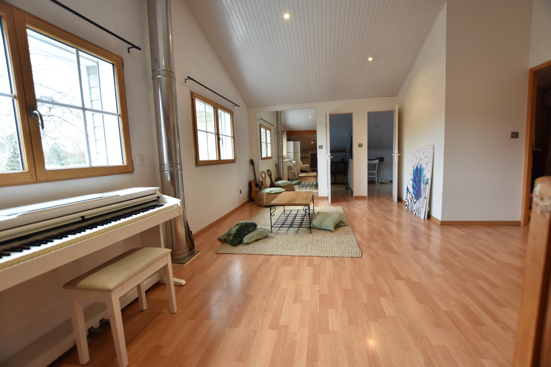Située dans environnement arboré et calme, proche de toutes les commodités, cette grande maison de 186 m² utile saura séduire les amateurs de nature et de tranquillité. Implantée sur un terrain de plus de 1100 m², cette propriété offre plusieurs terrasses, un grand atelier et une piscine chauffée, idéale pour profiter des belles journées ensoleillées. L'intérieur de cette maison se compose d'un rez de chaussée avec une entrée, un bureau, une cuisine entièrement aménagée, un cellier / buanderie, un salon / salle à manger, un wc, une suite parentale avec sa salle de bains et son wc. A l'étage, vous apprécierez l'espace nuit avec un grand espace de jeux, un espace TV, 3 chambres et une salle d'eau avec Wc, offrant ainsi de vastes espaces de vie pour toute la famille. Une opportunité à ne pas manquer pour ceux en quête d'une maison spacieuse et bien située. Les points forts : l'emplacement / la superficie de la maison / les extérieurs