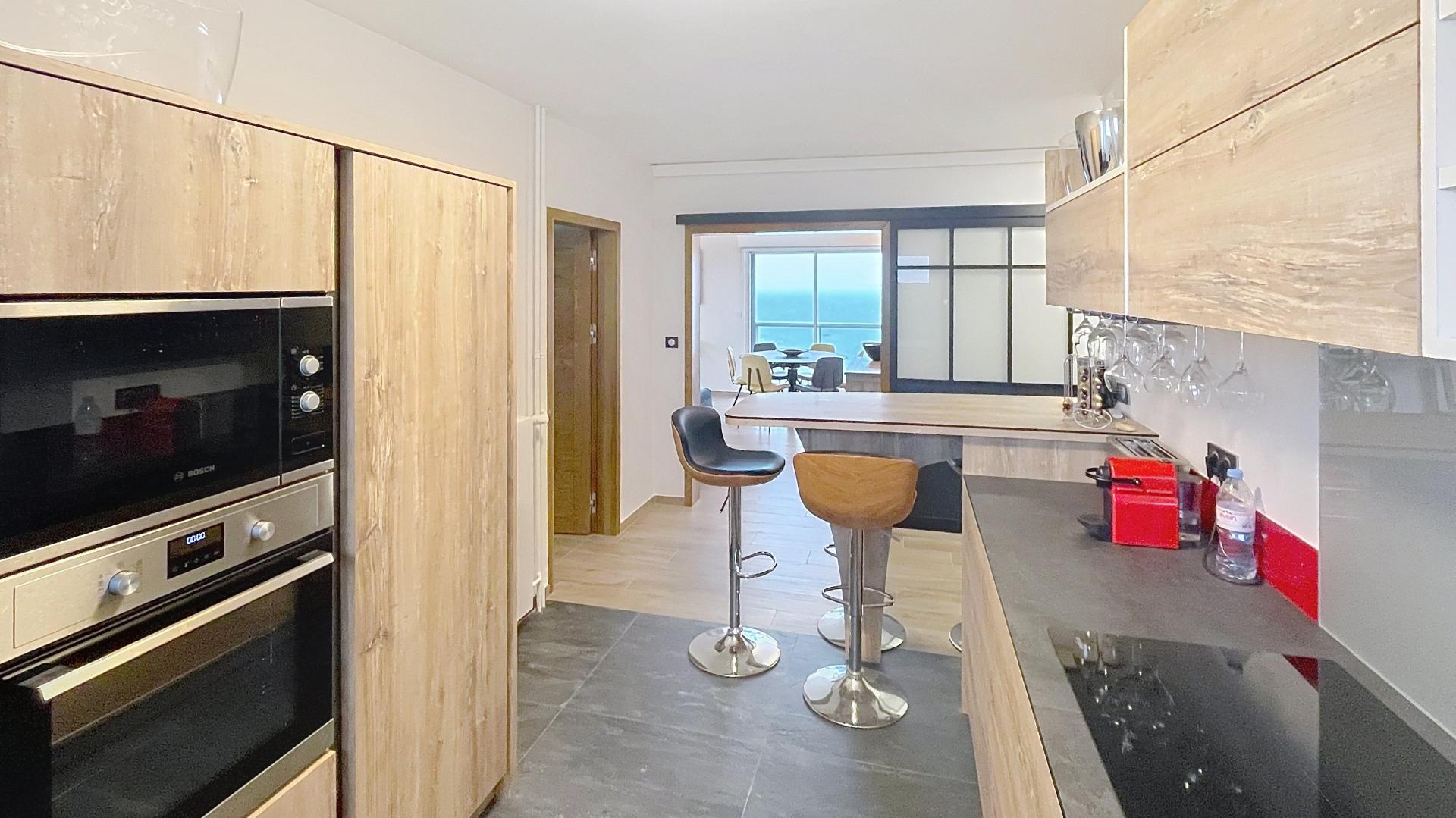 Appartement 3 pièces 73 m² Situé avec Vue Exceptionnelle Panoramique sur l'Océan et la Chaume dans une résidence robuste, sécurisée, (Vidéo + visiophone), parfaitement bien Entretenue, de 1976 version haut de gamme, avec gardien et 2 Ascenseurs. Spacieux T3 Entièrement Rénové, par des Professionnels, en 2024, en Haut de Gamme, il se démarque par sa Luminosité, son exposition, sa Vue, son agencement, et ses Nombreux Rangements. Il se compose d'une Entrée avec Placard, ouvrant sur le Salon / Séjour spacieux, avec 2 baies Alu ouvrantes sur l'océan, Exposé au Sud / Est - Balcon de 7m² !! Votre Cuisine sera Neuve et Moderne, Entièrement Aménagée et Équipée (Lave-vaisselle, machine à laver/sèche linge, Four thermique, Micro-ondes, Réfrigérateur, Congélateur, Plaques à induction, éléments Hauts et Bas + Tabourets ...). Très pratique. La Première chambre est équipée de 4 lits escamotables à souhait avec Rangements intégrés (de conception robuste pour adultes) + Bureau et Télévision. La Seconde Chambre avec Lit + Grand Dressing + Télévision donnant sur la Loggia Fermée avec Vue sur Baie. Une Salle d'eau Moderne, avec Double vasque, Douche à l'italienne, placard rangements, Séche-serviettes. L'appartement dispose d'une cave de 6m² alimentée en électricité et attenante au lot stationnement intérieur privatif. (possibilité de recharge privée d'un véhicule électrique / Hybride ). Le bien peut être vendu meublé (valeur meubles 34.000€ sur factures) => Accès direct à la plage et au bassin Dombret (Piscine à l'Eau de mer) en bas de l'immeuble sans route à traverser. Tous les commerces de la Chaume à Proximité (2min en voiture, 4min à vélo, 10mn à pied) => Un arrêt de bus en bas de l'immeuble et une piste cyclable. Taxe foncière : 1.700€ / An Charges de copropriété: 2600€ / An comprennent : - le Chauffage. - Eau chaude. - Entretien générale - Fond de Travaux - Info utile : Possibilité de 8 couchages au total. PV AG : Pas de travaux importants votés, ni prévus. A voir Absolument !! Une visite s'impose !!