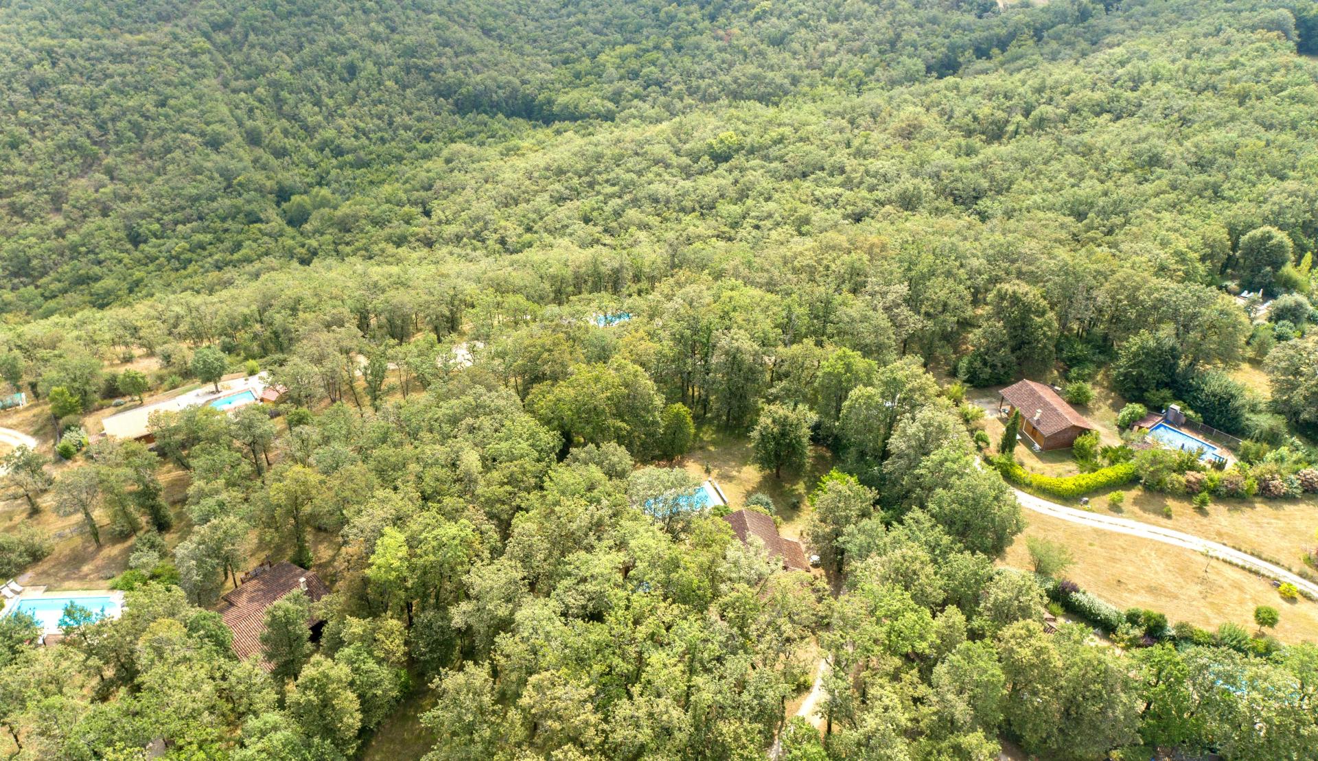 Dans le secteur de Souillac, à mi-chemin entre Sarlat et Rocamadour, entre Périgord et Quercy, je vous propose dans un cadre bucolique exceptionnel ce domaine atypique. CET ENSEMBLE IMMOBILIER lové dans un magnifique écrin de nature, véritable havre de paix, est composé de 6 maisons à ossature bois et de 2 mobil homes. Tout a été pensé et conçu afin de faire rimer confort moderne et cadre naturel authentique pour votre bien-être et votre plus grand bonheur. Si vous rêvez de vivre au quotidien au rythme des saisons au cœur d’un site naturel exceptionnel avec de magnifiques vues, ou si VOUS SOUHAITEZ DÉVELOPPER UN PROJET D’HÉBERGEMENT TOURISTIQUE COMPTE TENU DE SON GRAND POTENTIEL, ne cherchez plus, ce domaine unique en son genre est à la hauteur de vos exigences et pourra parfaitement vous combler, ainsi que tous vos proches. Au cœur des grands sites touristiques classés (Gouffre de Padirac, Rocamadour, Saint Cirq Lapopie, cité médiévale de Cahors, Vallée de la Dordogne…), au cœur du Sud-Ouest synonyme d’excellents produits du terroir et de convivialité, ce très beau domaine qui s’étend sur près de 4,2 ha entièrement clos est véritablement atypique et se distingue par la qualité de vie qu'il peut vous procurer. Lieu magique, véritable invitation à se poser sereinement, vous aurez la très agréable sensation d'y être en vacances toute l'année. Chaque chaleureuse maison de standing développant entre 50 et 100 m² habitables (Surface habitable totale d’environ 456 m²) est climatisée, entièrement meublée, dispose de ses propres équipements de grande qualité, de sa piscine privative sécurisée (dont 3 sont chauffées), de ses propres aménagements extérieurs, sur un terrain boisé de chênes d’environ 1000 m² entièrement clôturé, idéal pour les enfants et les animaux de compagnie. Aucun vis-à-vis, vous pourrez vous poser en toute quiétude et respirer à pleins poumons dans ce cadre véritablement enchanteur. Pour parfaire le tableau, à noter encore la présence d'un grand hangar de près de 130 m², actuellement utilisé pour stockage matériel, qui pourrait aisément constituer un local pour réception/banquet, ou un hébergement supplémentaire. TRÈS IMPORTANT : Possibilité d'acquérir en plus une grande maison à ossature bois de 140 m² habitables (actuelle habitation du gérant). En définitive, les superlatifs ne manquent pas pour décrire ce magnifique domaine unique au cœur de Dame Nature, site où règne un esprit de zénitude, de bien-être inégalable, alors n’attendez plus pour me contacter et venir vous en convaincre concrètement… coup de cœur garanti !