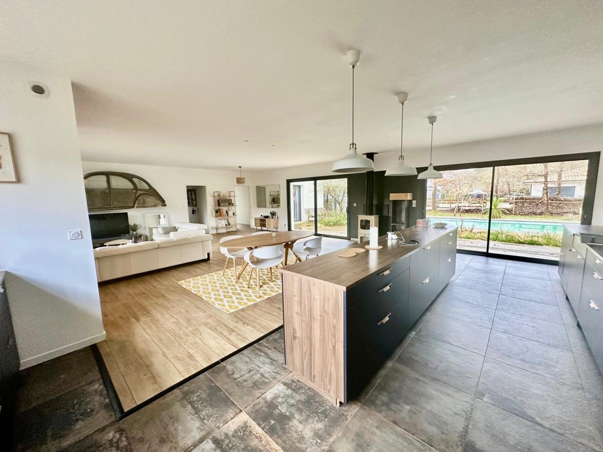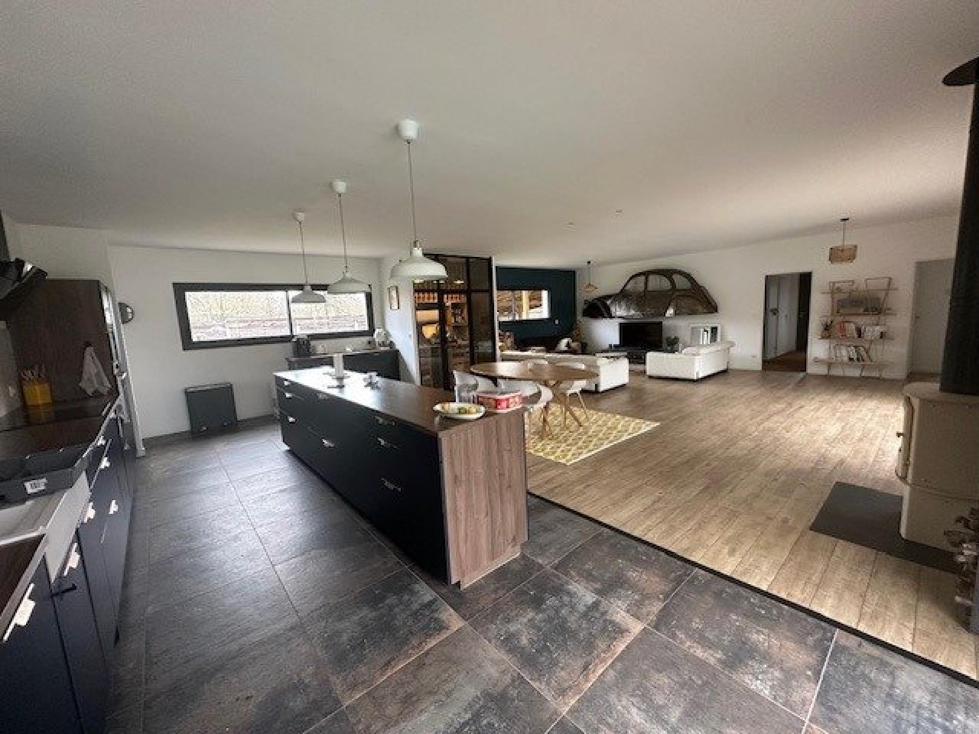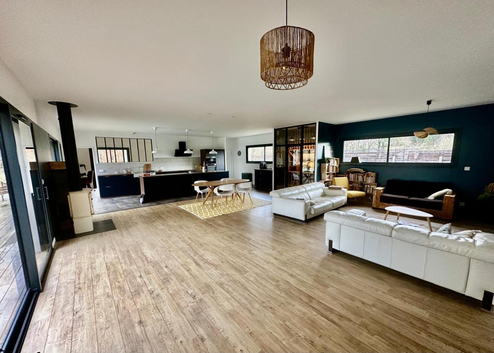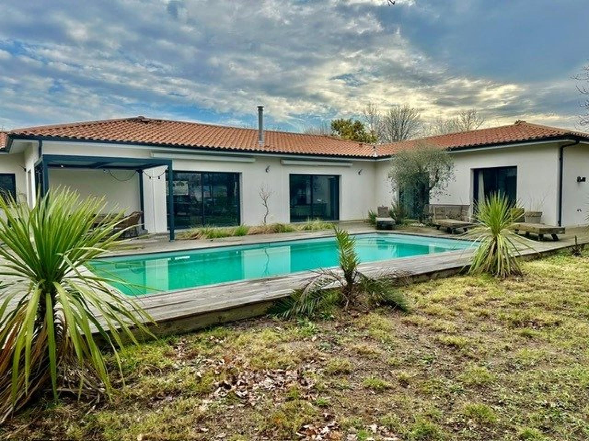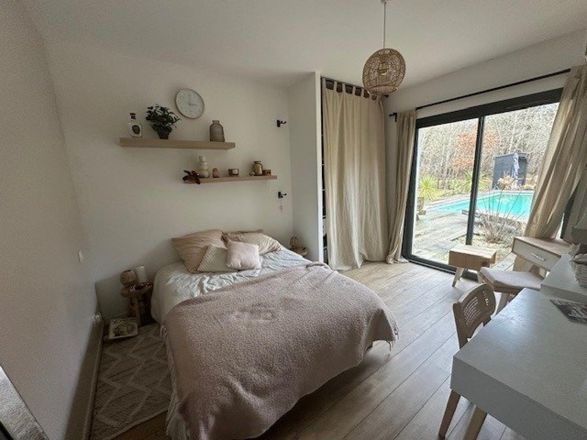 Nous vous proposons de décourvrir cette somptueuse maison nichée dans un havre de paix à l'abris de tout regard. Edifiée en 2018, cette villa de plain pied dispose d'une entrée avec dressing et WC, un bureau, un superbe sejour traversant avec cave à vins climatisée qui rendra à l'honneur vos soirées entre ami(es), une cuisine entièrement équipée avec cellier et buanderie. Deux espaces nuits s'offriront à vous : - Le coin des enfants ou des invités avec 3 chambres et salle d'eau (douche italienne, WC, sèche-serviettes, etc...). - Puis la suite parentale avec dressing, salle de bains privée avec douche italienne, baignoire et WC. Vous apprécierez les prestations de cette villa et le calme absolue qui règne dans cet écrin de verdure dûe à la chêneraie voisine. Pour visiter ou pour plus de renseignements, contactez nous vite.