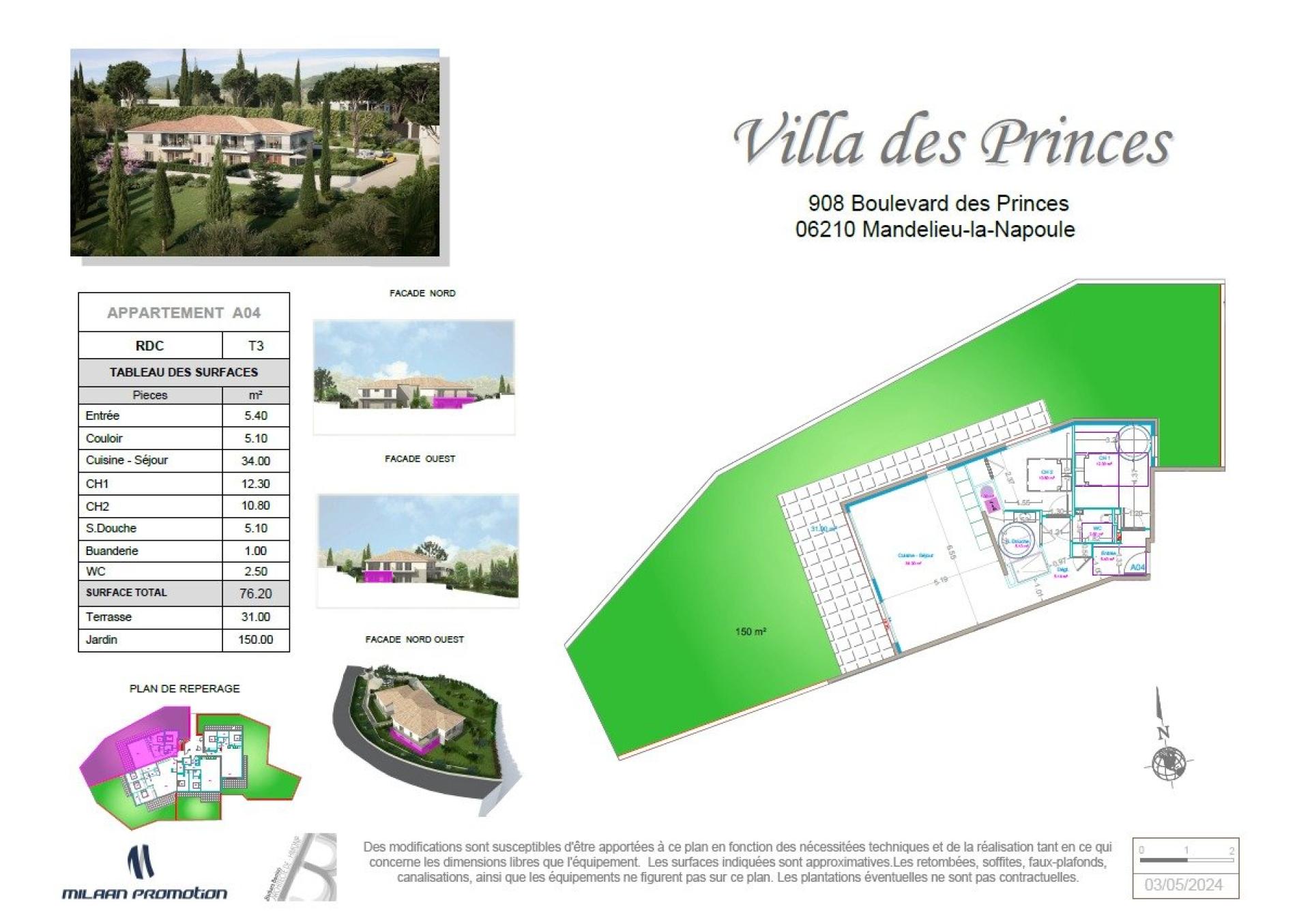 Boulevard des Princes à Mandelieu-la-Napoule. Imaginez votre vie dans un cadre idyllique où le luxe et la nature se rencontrent harmonieusement, créant un havre de paix juste à quelques minutes de la mer. Avec cet appartement T3, ou tout est conçue pour offrir une expérience de vie sans pareil, avec de grandes terrasses et jardins privés pour se détendre et admirer les vues époustouflantes des paysages verdoyants. Les intérieurs, baignés de lumière naturelle grâce à des plans ouverts et de grandes baies vitrées, sont finis avec une attention méticuleuse aux détails. Des équipements modernes s'intègrent parfaitement dans chaque espace, assurant confort et fonctionnalité. Le calme de Villa des Princes est préservé par une isolation acoustique de pointe, conforme aux normes RE2020 et NRA, garantissant ainsi votre tranquillité au quotidien. La sécurité n'est pas en reste avec un accès contrôlé et un parking souterrain privé pour vous et vos visiteurs. Située à quelques minutes de la mer, des terrains de golf et des plages de la Riviera, et proche des commerces, écoles et toutes les commodités, Villa des Princes est idéale pour ceux cherchant tranquillité et accessibilité, offrant le parfait équilibre entre vie privée et proximité urbaine. Livraison Q4 2025. Pour plus d'informations et pour découvrir votre futur chez-vous, contactez moï dès aujourd'hui.