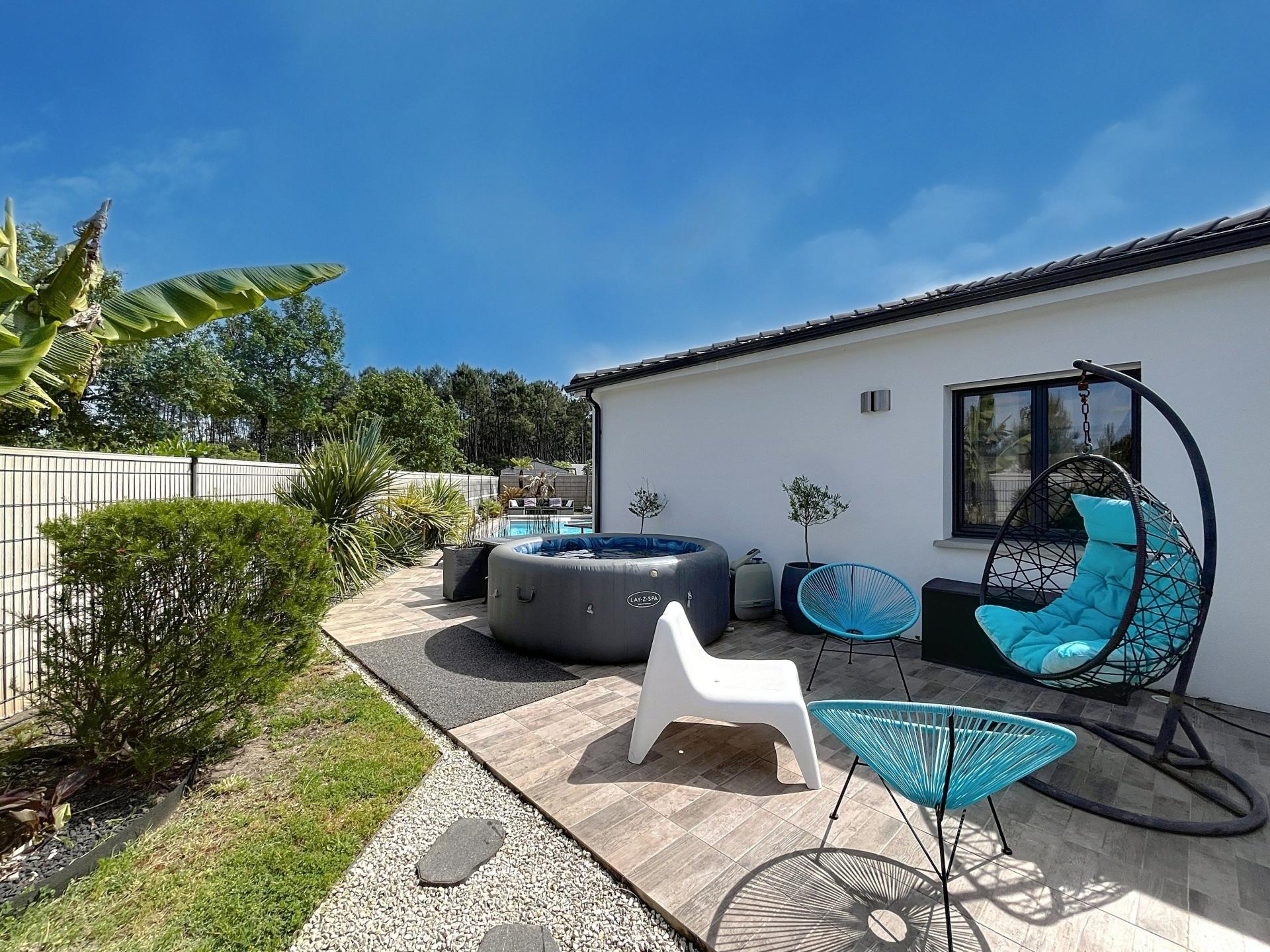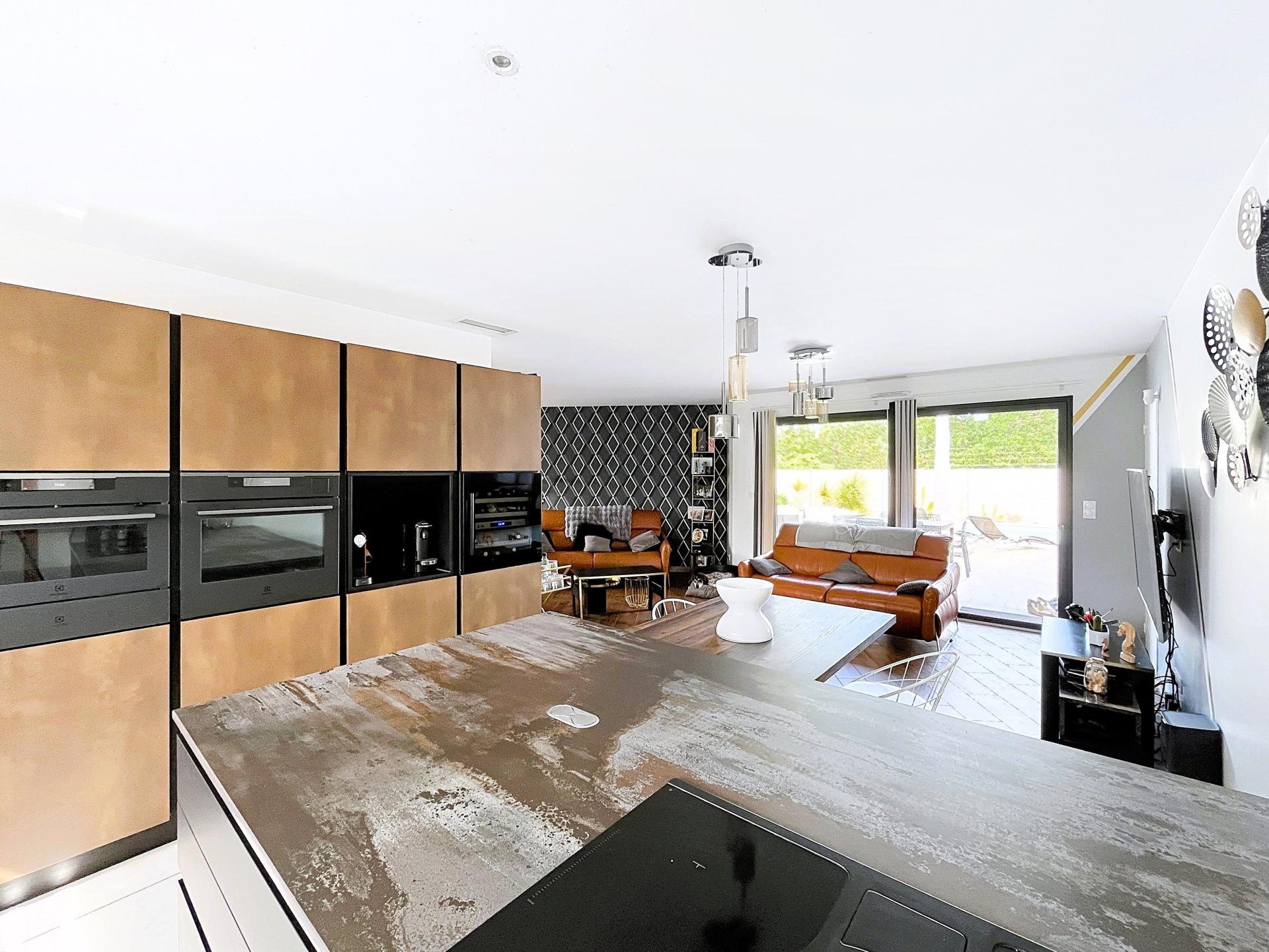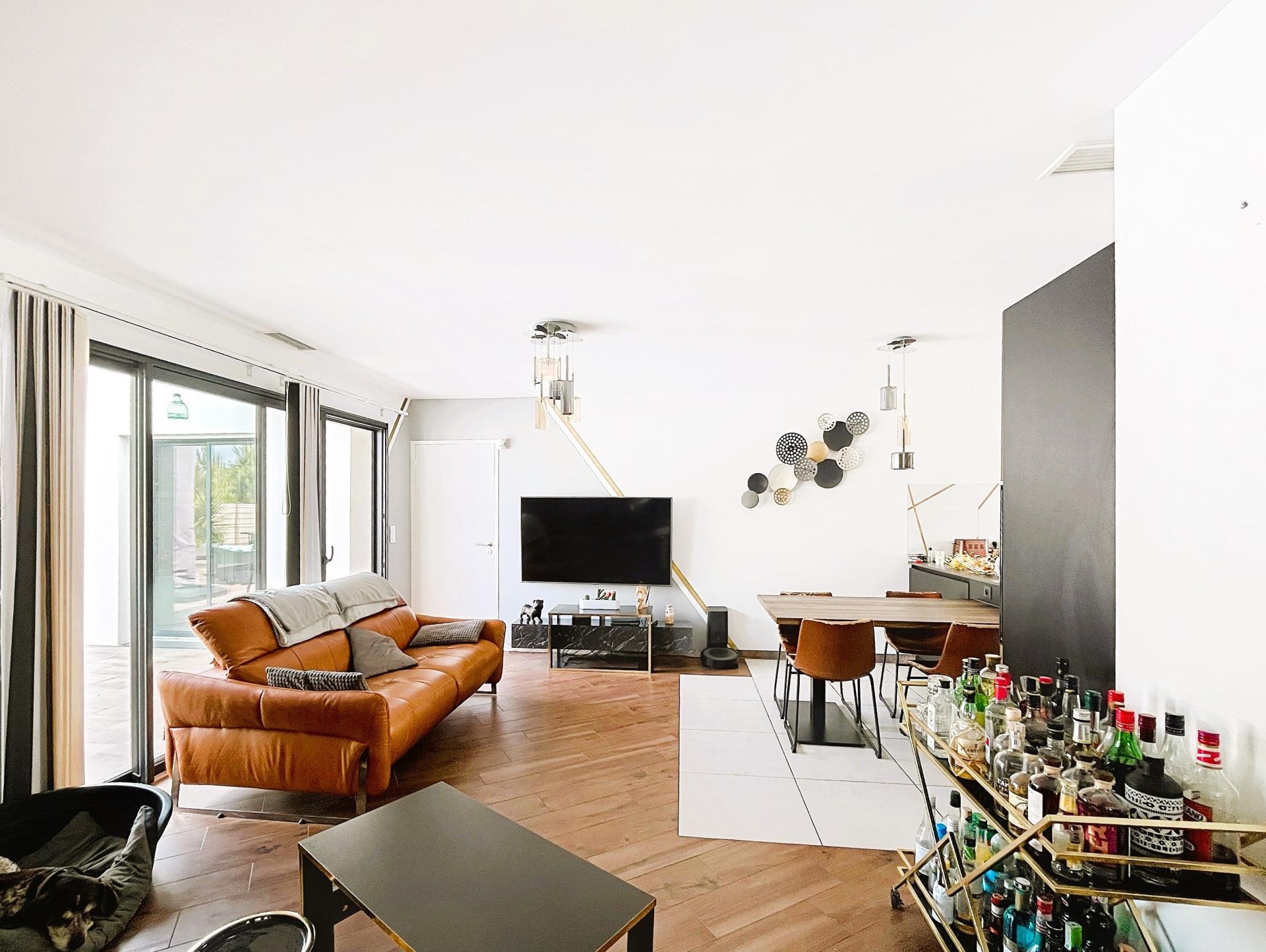 Entre Bordeaux et le Bassin d’Arcachon, sur la commune de Martignas-sur-Jalle, découvrez cette belle contemporaine de 2020. Implantée dans un environnement calme sur une parcelle en bordure de forêt, elle offre un cadre de vie privilégié tout en étant à proximité immédiate de toutes les commodités. A seulement quelques minutes des grandes entreprises du secteur aéronautique, cette maison coche toutes les cases pour les personnes qui recherchent confort, prestations de qualité, sérénité et intimité. De plain-pied sur une surface habitable de 159 m2 environ, elle propose une entrée donnant sur une pièce de vie de plus de 56 m2 avec triple exposition, une cuisine ouverte bénéficiant d’équipements haut de gamme pour cuisiniers accomplis, complétée par un cellier/buanderie avec point d’eau et accès vers l’extérieur. Rare sur le secteur, la maison propose non moins de cinq chambres, dont une spacieuse suite parentale à l'écart ouvrant sur la terrasse et la piscine. Avec sa salle de bain complète, un grand dressing et des toilettes séparées, elle constitue un espace privatif très appréciable. L’autre aile de la maison abrite un second espace nuit composé d'une chambre avec salle d'eau privative, deux chambres avec dressing, reliées par une salle d'eau commune de type "Jack and Jill", offrant un accès direct depuis chacune des chambres et une dernière chambre pouvant également servir de bureau. Chauffage gainable, climatisation, 14 panneaux photovoltaïques pour une puissance de 7kg et excellente performance énergétique. Les matériaux et équipements sont de très belle facture et ont été choisis avec soin par les propriétaires pour allier esthétique et durabilité. L’ensemble est extrêmement fonctionnel avec de l’espace pour chacun, garantissant une maison très agréable à vivre au quotidien. A l’extérieur, 160 m2 de terrasse face à la forêt invitent à la détente et aux soirées entre amis. Piscine chauffée, cuisine d’été équipée, terrain de pétanque, abri de jardin, arrosage automatique et Wallbox extérieure pour la recharge des voitures électriques : tout y est pour cette maison résolument dans l’air du temps. N’hésitez pas à me contacter pour en savoir plus sur ce bien de grande qualité.