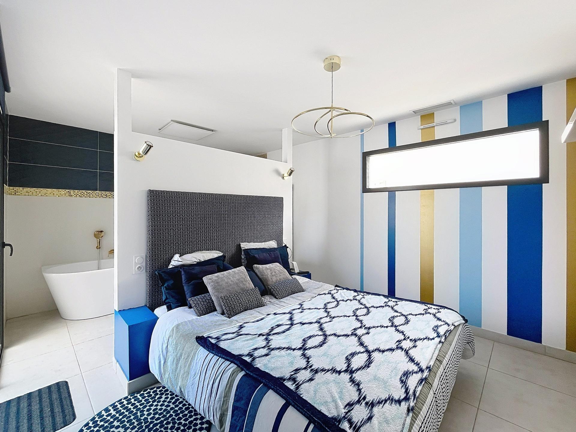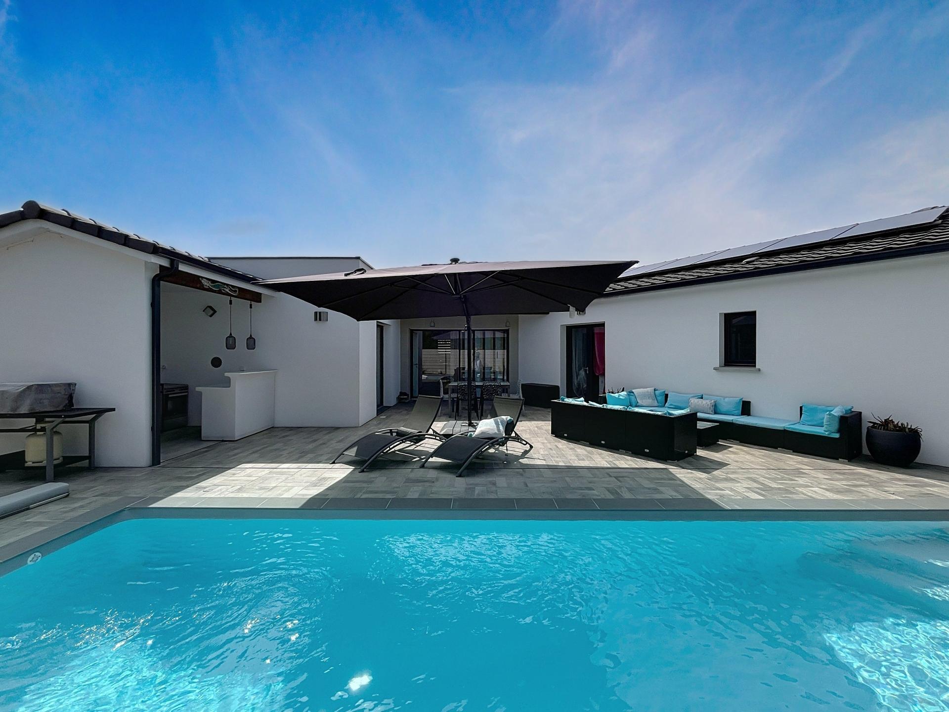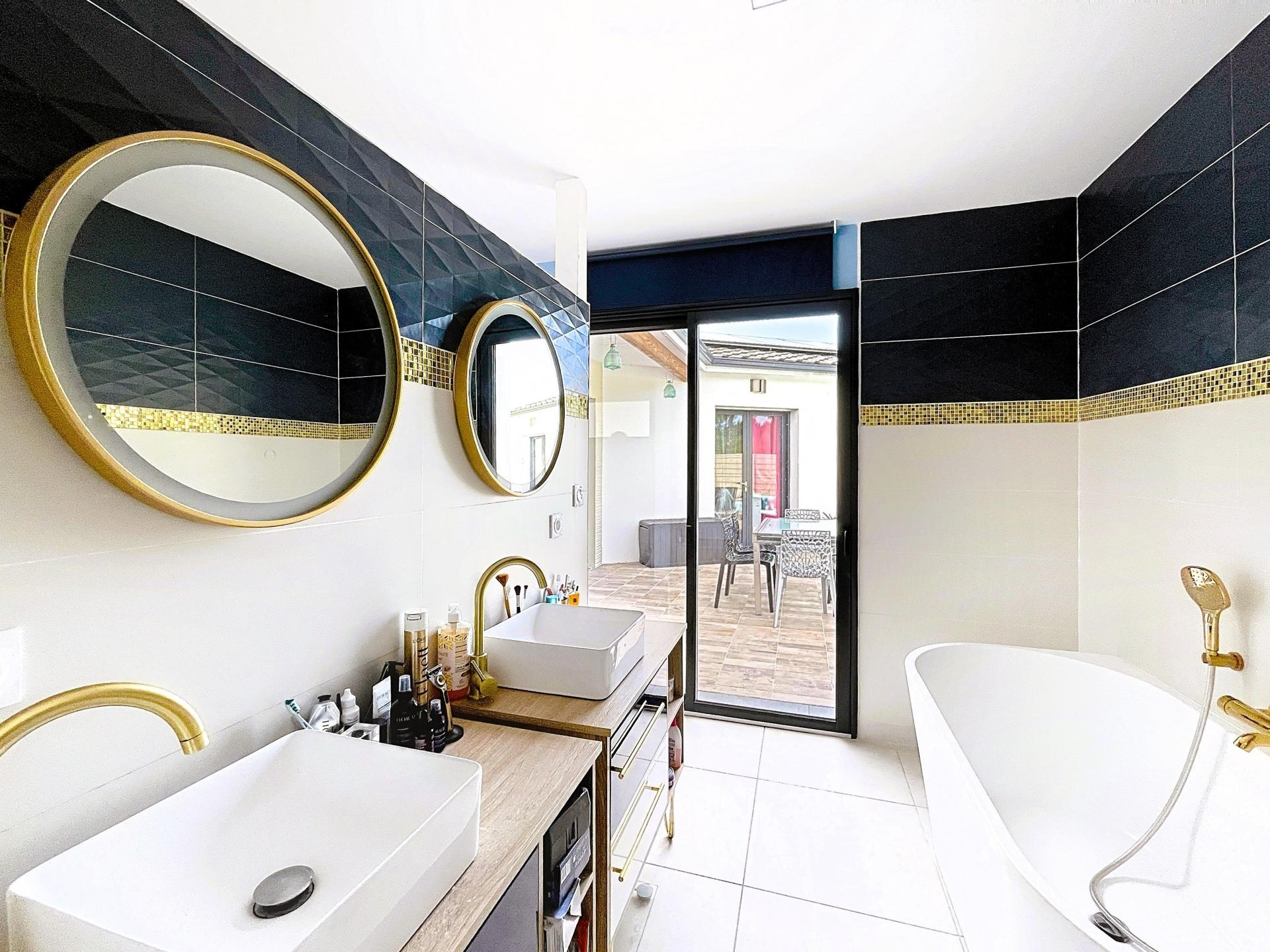 Entre Bordeaux et le Bassin d’Arcachon, sur la commune de Martignas-sur-Jalle, découvrez cette belle contemporaine de 2020. Implantée dans un environnement calme sur une parcelle en bordure de forêt, elle offre un cadre de vie privilégié tout en étant à proximité immédiate de toutes les commodités. A seulement quelques minutes des grandes entreprises du secteur aéronautique, cette maison coche toutes les cases pour les personnes qui recherchent confort, prestations de qualité, sérénité et intimité. De plain-pied sur une surface habitable de 159 m2 environ, elle propose une entrée donnant sur une pièce de vie de plus de 56 m2 avec triple exposition, une cuisine ouverte bénéficiant d’équipements haut de gamme pour cuisiniers accomplis, complétée par un cellier/buanderie avec point d’eau et accès vers l’extérieur. Rare sur le secteur, la maison propose non moins de cinq chambres, dont une spacieuse suite parentale à l'écart ouvrant sur la terrasse et la piscine. Avec sa salle de bain complète, un grand dressing et des toilettes séparées, elle constitue un espace privatif très appréciable. L’autre aile de la maison abrite un second espace nuit composé d'une chambre avec salle d'eau privative, deux chambres avec dressing, reliées par une salle d'eau commune de type "Jack and Jill", offrant un accès direct depuis chacune des chambres et une dernière chambre pouvant également servir de bureau. Chauffage gainable, climatisation, 14 panneaux photovoltaïques pour une puissance de 7kg et excellente performance énergétique. Les matériaux et équipements sont de très belle facture et ont été choisis avec soin par les propriétaires pour allier esthétique et durabilité. L’ensemble est extrêmement fonctionnel avec de l’espace pour chacun, garantissant une maison très agréable à vivre au quotidien. A l’extérieur, 160 m2 de terrasse face à la forêt invitent à la détente et aux soirées entre amis. Piscine chauffée, cuisine d’été équipée, terrain de pétanque, abri de jardin, arrosage automatique et Wallbox extérieure pour la recharge des voitures électriques : tout y est pour cette maison résolument dans l’air du temps. N’hésitez pas à me contacter pour en savoir plus sur ce bien de grande qualité.
