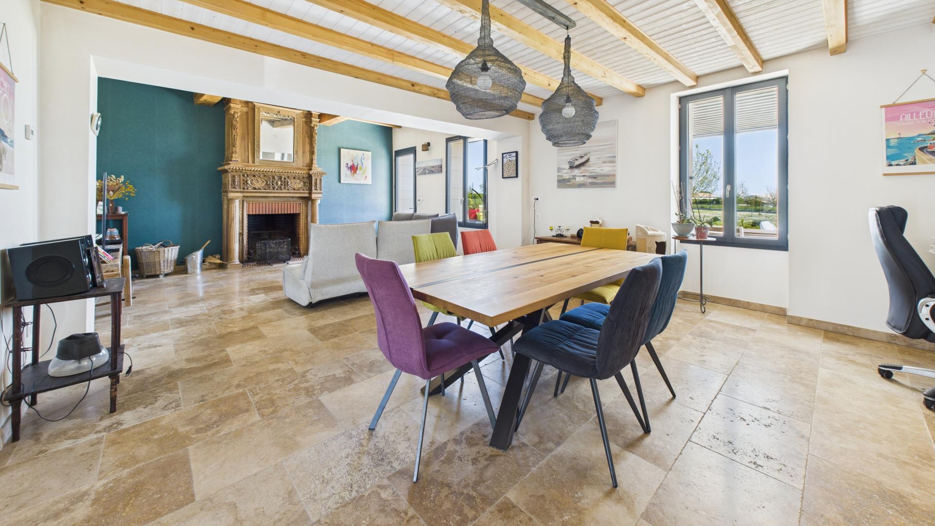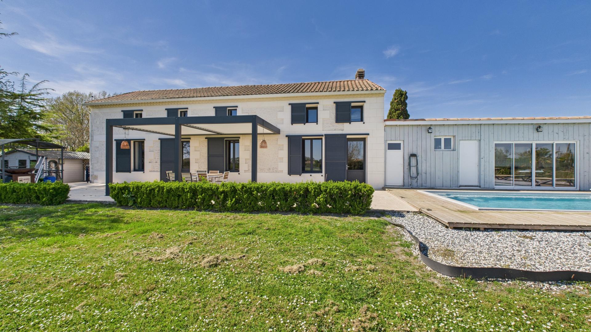 Virtual tour and floor plans available upon request. Located in Meschers-sur-Gironde (17132), this property offers a peaceful setting between land and sea. Renowned for its fine sandy beaches and marina, this charming town offers local shops and gourmet restaurants just 5 minutes away. Nature lovers will be captivated by the breathtaking view of the Gironde estuary. A 265 m² property complex on a 5000 m² plot of land with no overlooked views, featuring a large swimming pool, a jacuzzi, and a terrace with a bioclimatic pergola. The house combines tradition and modernity thanks to quality materials, such as the travertine flooring that extends into the living room with its magnificent fireplace. It includes a fitted and equipped kitchen, a laundry room, a dining room, and a living room. The ground floor houses a master bedroom with a dressing room and a shower room. Upstairs, a spacious landing houses an office leading to two bedrooms, each with its own en-suite bathroom and toilet. A 73 m² second home with two bedrooms completes this property, providing an ideal space for entertaining family and friends or for rental accommodation. I'll be back soon for a viewing!