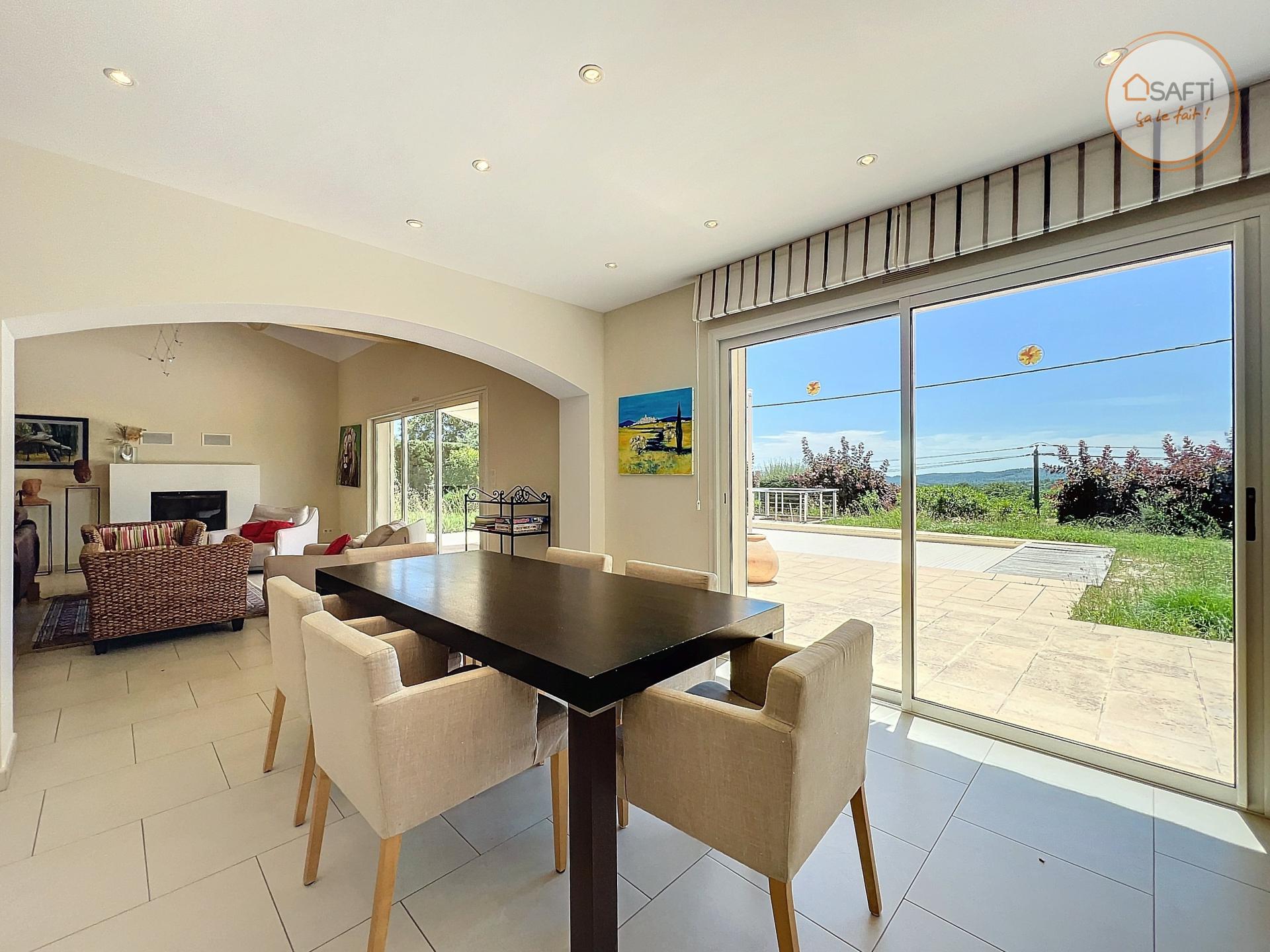 EXCLUSIVITÉ SAFTI : Nichée au cœur du parc naturel du Verdon, dans un cadre exceptionnel avec une vue panoramique époustouflante, découvrez cette somptueuse villa de 170 m² construite en 2009, sur un magnifique terrain de 2284 m². La villa vous accueille avec un vaste séjour baigné de lumière, doté d'un plafond cathédrale, et d'une cuisine ouverte entièrement équipée. Vous y trouverez trois grandes chambres, dont une suite parentale, ainsi qu'une seconde salle d'eau. Cette propriété est une véritable pépite immobilière, offrant des volumes impressionnants et des prestations haut de gamme. LES PLUS : Un double garage, un sous-sol spacieux, et une piscine de 10 x 5 m, le tout dans un état impeccable. Ne laissez pas passer cette opportunité unique de vivre dans un cadre idyllique et raffiné.