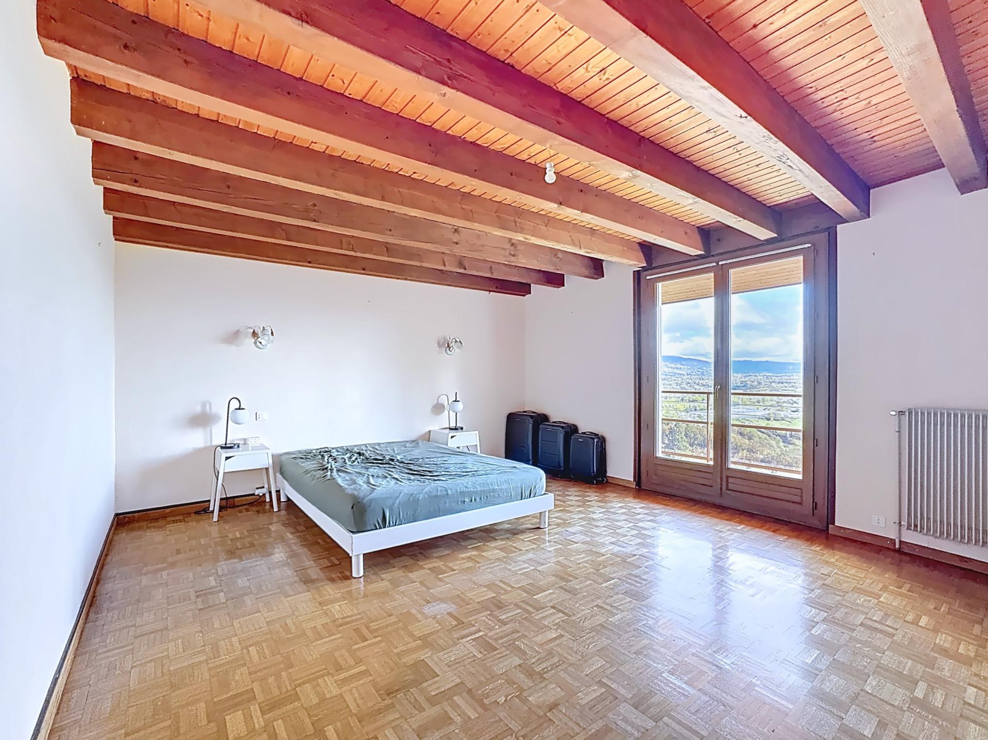 Monnetier-Mornex : maison à l’architecture unique à 5 minutes de la Suisse et de la douane de Thonex Découvrez cette superbe maison d'architecte construite avec des matériaux haut de gamme (construction béton) nichée au bout d'une impasse, avec une vue panoramique saisissante sur la chaîne du Mont-Blanc. Construite en 1977 sur un terrain de plus de 1500 m², cette propriété offre une surface au sol de 255 m², dont 218 m² en loi Carrez. Les points forts du bien : • Emplacement de premier choix : Située à proximité immédiate de la frontière suisse, cette maison bénéficie d'un environnement calme et d'une vue imprenable. • Grande luminosité : La pièce de vie spacieuse et lumineuse, dotée de grandes baies vitrées, donne directement sur la terrasse et le balcon, offrant un cadre de vie exceptionnel. • Équipements modernes et économiques : Équipée d'une pompe à chaleur, d'une cheminée et de menuiseries récentes avec volets roulants motorisés, cette maison est conçue pour être économe en énergie. • Excellent état : Construction en béton, toiture récente, façade et dessous de toiture en parfait état. • Espaces extérieurs aménagés : Profitez de deux terrasses, d'un coin barbecue, de deux abris de jardin, d'un parking goudronné et d'un garage pour un confort optimal. Description détaillée : • Rez-de-chaussée : Une pièce de vie très lumineuse (salon, salle à manger) avec de grandes baies vitrées et accès direct à la terrasse et au balcon, une cuisine séparée avec cellier, une chambre parentale avec dressing et salle de bains, WC séparés, vestiaire et hall d'entrée. • Rez inférieur : Quatre chambres, une salle d'eau avec WC, une cave, buanderie et chaufferie. • Rez supérieur : Un bureau et accès au garage de 30 m². A visiter rapidement !