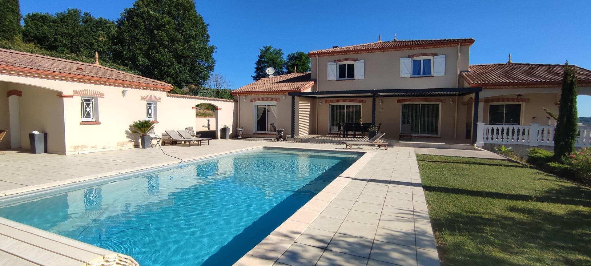 Nichée sur les hauteurs des coteaux prisés de Montauban,venez découvrir cette belle propriété de 220 m² et laissez-vous séduire par le calme et l'apaisement que procurent ces lieux. Vous serez sous le charme des volumes et de la luminosité qu'offrent chacune des pièces ainsi que par le choix et la qualité des matériaux utilisés créant un ensemble très harmonieux ! Une chaleureuse entrée sous porche vous invite dans la spacieuse pièce de vie, avec cuisine ouverte et une arrière cuisine, dotée de plusieurs ouvertures donnant accès à la terrasse de 80 m² avec pergola bioclimatique. Au même niveau, retrouvez deux grandes chambres ( entre 12 et 20 m² ), dont une ayant une baie vitrée accédant à la piscine, une salle d'eau, un dressing et un toilette. Un bel escalier vous dirige vers l'étage où un agréable palier dessert 3 belles chambres ( entre 16 et 19 m² ) dotées de placards, une salle d'eau ainsi qu'un toilette. Au sous-sol, un garage attenant de 165 m² permet de stationner plusieurs véhicules, de stocker ou bien d'installer son activité professionnelle. A l'extérieur, laissez vous inspirer par le plaisir de recevoir vos amis ou votre famille autour de l'agréable piscine au sel, orientée Sud, et de partager de bons moments grâce au confort qu'offre le Pool House de 35 m² disposant d'une salle d'eau avec toilette et d'un espace aménageable en cuisine d'été. Profitez également du jardin paysagé créant une ambiance reposante sur cette belle parcelle de 2200 m². Bienvenue dans cette séduisante propriété et déposez vos valises car ici le mot " vacances " n'existe plus; vous y êtes déjà !!! Commerces et accès rocade à 2 minutes. Péage Montauban Bressols à 15 minutes. Aéroport de Blagnac à moins de 40 minutes. Agences et mandataires bienvenue ! Afin de satisfaire mes clients, j'accepte l'inter-agence.