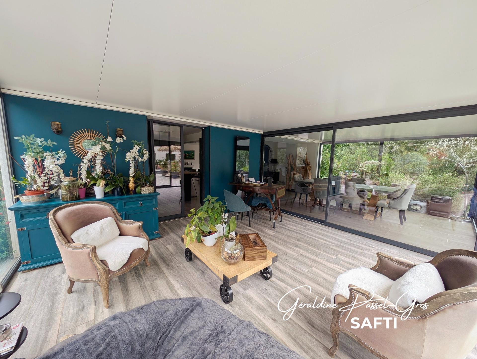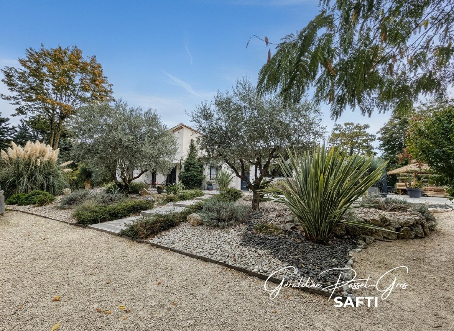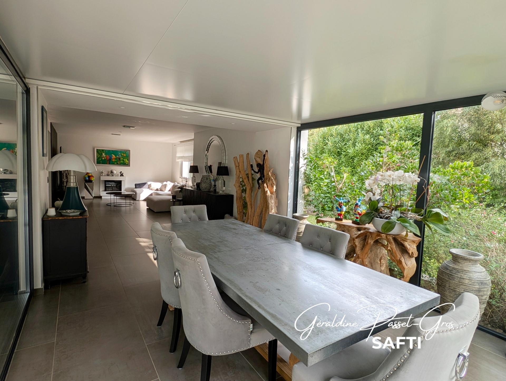 Dans un secteur résidentiel recherché de Montélier, à seulement quelques minutes de Valence, cette maison contemporaine de plain-pied d’environ 200 m² se niche au cœur d’un parc paysager de 3 550 m², à l’abri des regards et dans un environnement verdoyant. Dès l’entrée, le ton est donné. Le portail s’ouvre sur une allée bordée d’arbres qui conduit à une demeure élégante, où chaque détail a été pensé pour offrir confort, modernité et douceur de vivre. La vaste pièce de vie, baignée de lumière, s’ouvre sur le jardin et offre une atmosphère à la fois chaleureuse et raffinée. La cuisine aménagée et équipée, au design contemporain, s’intègre harmonieusement à l’ensemble. Une belle véranda, véritable transition entre intérieur et extérieur, permet de profiter du cadre verdoyant tout au long de l’année. Côté nuit, vous découvrirez une suite parentale spacieuse avec salle d’eau et WC privatifs, deux chambres lumineuses dotées de rangements intégrés, ainsi qu’une belle salle de bains indépendante. Un studio indépendant complète l’ensemble : kitchenette, salle d’eau et WC, parfait pour accueillir famille, amis ou imaginer un espace de travail autonome. À l’extérieur, la propriété déploie tout son charme : 280 m² de terrasse carrelée prolongeant les espaces de vie, 1 piscine chauffée avec son espace détente et sanitaires attenants, 1jacuzzi couvert entouré de plantes exotiques et d’un gazebo invitant à la détente, 1 terrain de pétanque et 1 bar pour des moments conviviaux, Une belle mare apporte une touche de sérénité à ce cadre verdoyant. Les prestations sont à la hauteur du lieu : chauffage au sol par pompe à chaleur, climatisation gainable, adoucisseur d’eau, arrosage automatique alimenté par forage, connexion fibre, et sous-sol de 70 m² pour stationnement et rangements. Aucun vis-à-vis, aucun travaux à prévoir : ici, tout est prêt pour une vie paisible et confortable. Une propriété rare, où élégance, nature et modernité se rencontrent harmonieusement. Un bien d’exception, pensé pour ceux qui recherchent un cadre de vie privilégié aux portes de la ville.