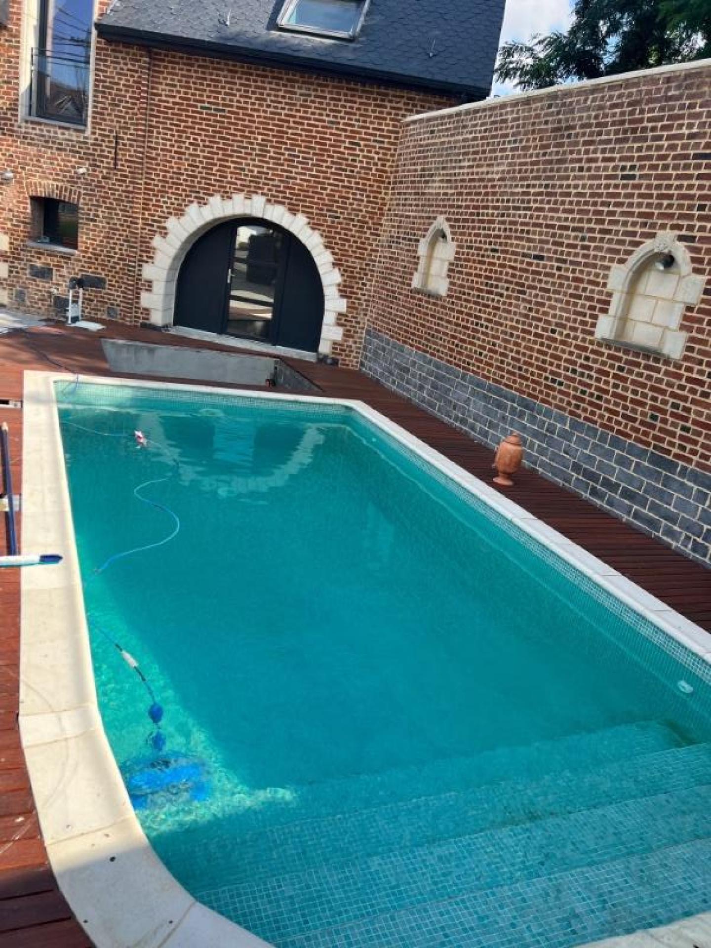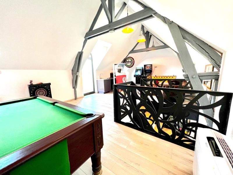Découvrez cette somptueuse maison qui allie confort, élégance et loisirs au centre du village, un véritable paradis pour les amateurs de style. Au coeur de cet oasis, une magnifique piscine vous invite à vous détendre et à profiter des journées ensoleillées. L'annexe de cette résidence est un espace dédié au bien-être. Vous y trouverez une salle de sport entièrement équipée, un hammam pour vous ressourcer, ainsi qu'une belle douche à l'italienne pour vous rafraichir après une séance de sport ou piscine. De plus l'étage de cette annexe est transformée en salle de jeux qui saura divertir toute la famille. La maison principale offre un design intérieur raffiné. La cuisine est entièrement équipée avec espace de repas décontracté. Le salon-séjour est spacieux et lumineux avec baie vitrée donnant sur l'autre partie du terrain. Un bureau privé offre un espace de travail à domicile, tandis que la buanderie et le local technique ajoutent une grande commodité à la vie quotidienne. A l'étage, 3 belles chambres, chacune offrant un espace généreux. La salle de bain propose une baignoire et une douche séparée De plus, la maison comprend une cave et une domotique incroyable pour le système de chauffage, eaux, piscine, sono et autre. Elle bénéficie également d'un garage avec grenier. Cette maison unique est une opportunité rare, offrant une combinaison parfaite de style, de confort, et de divertissement Les équipements, options et sécurité seront communiqués lors des visites