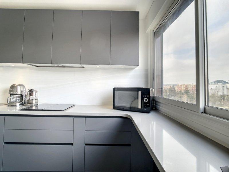15th arrondissement (75015), in a luxury residence, 5-room apartment crossing on 6th floor with elevators. Very pleasant, bright, 106m² with balcony-loggia of 14m², this property is in perfect condition, made of quality materials. Cellar, optional parking and bicycle storage. Composition: Large living room 36m² - 3 bedrooms (possibility 4) - Equipped kitchen - 1 bathroom - 1 shower room with WC - 1 WC separated. Presence of a guard. Close to shops, schools and transport: metro stations Balard and Lourmel line 8, and tramway T3a. A few minutes walk from the Ministry of the Armed Forces, the Porte de Versailles, the Parc André Citroën, the Coulée verte, etc. Access to the top floor terrace with 360° view of all of Paris