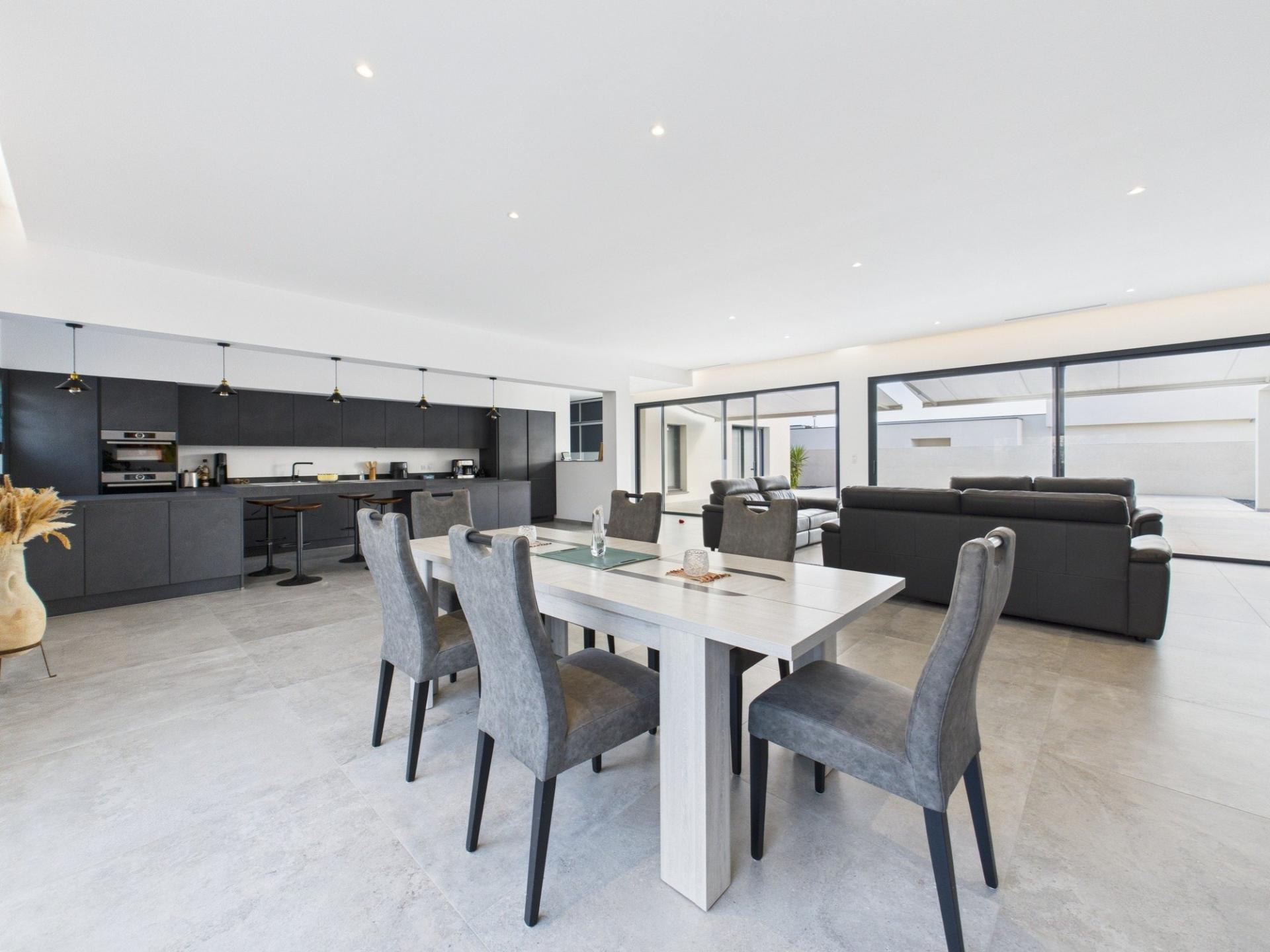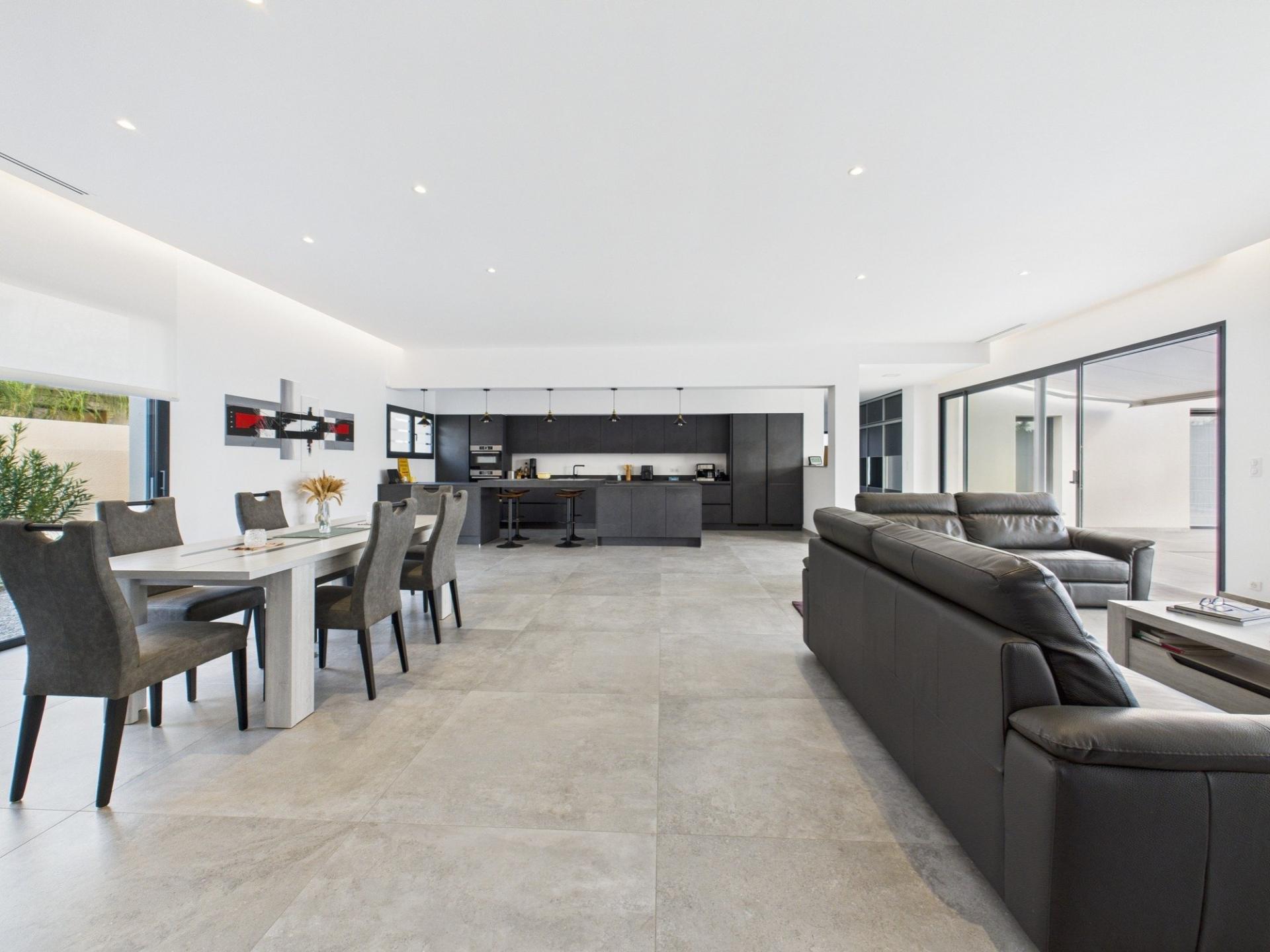 Located in the prestigious Parc Ducup district, within a private and secure estate consisting of only 11 villas, this contemporary single-story villa, built in 2021, offers 250 m² of living space with high-end features. From the entrance, you will be captivated by the spaciousness and brightness of the large 97 m² living area, bathed in light thanks to its wide glass doors, and a fully equipped high-end open kitchen. The sleeping area features a sumptuous master suite with custom dressing room and private bathroom, a second suite with bathroom and bathtub, as well as two additional large bedrooms with built-in closets. Two additional bathrooms complete this harmonious space. Outdoors, enjoy relaxation: a 100 m² terrace, a beautiful summer kitchen, and a 4×8 m swimming pool equipped with a jacuzzi and counter-current swimming. A double garage perfects this exceptional property. In terms of comfort and performance, The villa is self-sufficient in electricity thanks to its photovoltaic panels, equipped with a thermodynamic water heater and a water softener. It is sold fully furnished and equipped, ready to move in. A rare property in a sought-after environment, combining contemporary elegance, absolute comfort, and high energy performance.