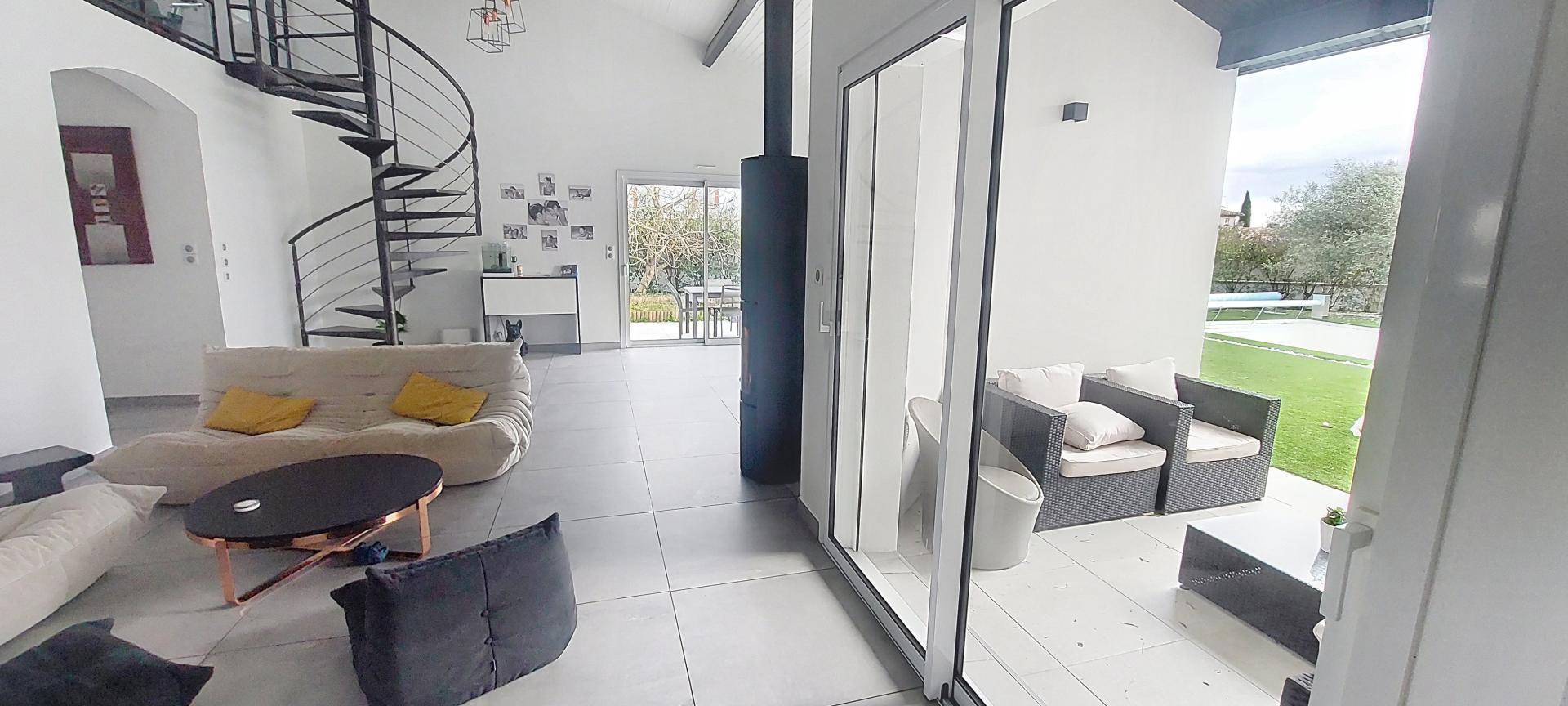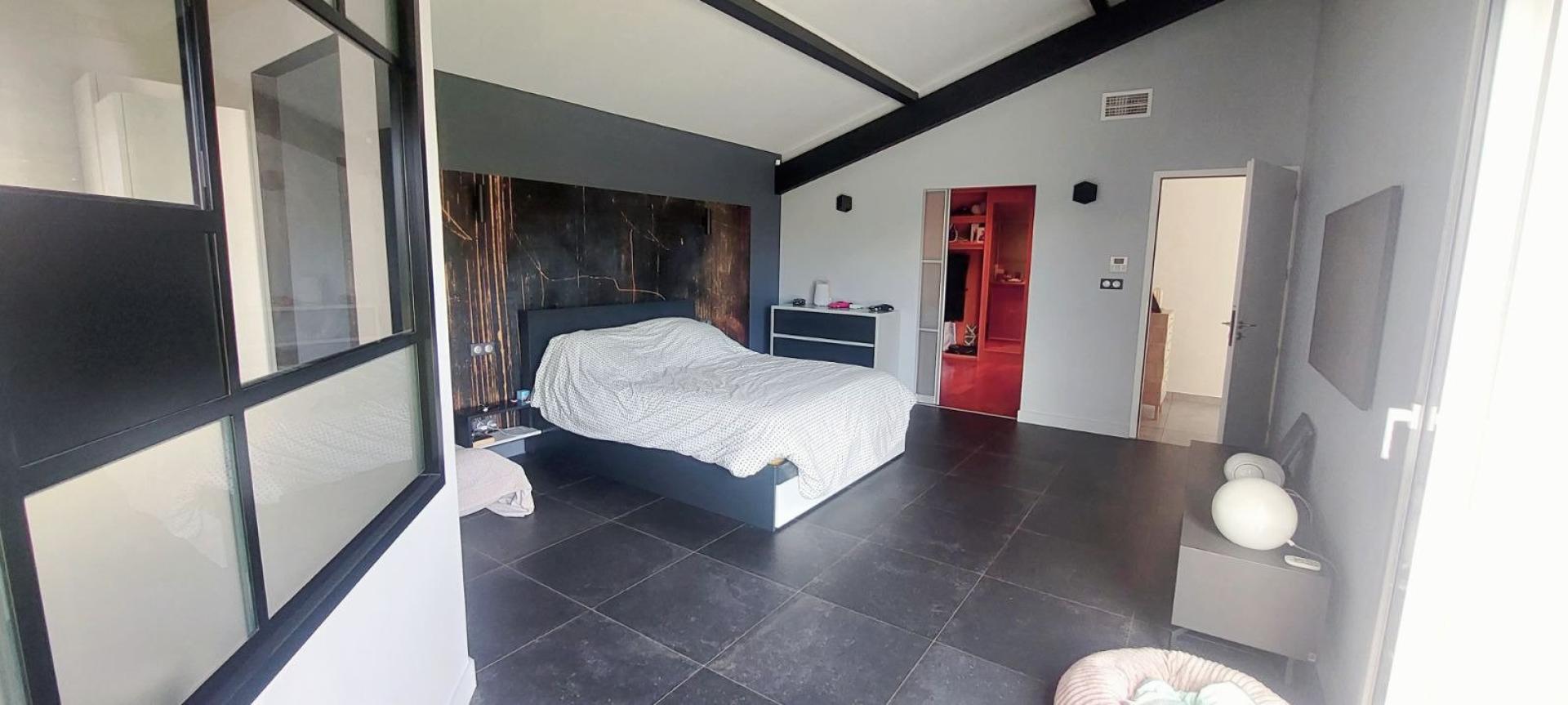 Je vous présente ici une belle maison, située dans une impasse paisible, rénovée en 2022 alliant modernité et élégance. Cette propriété, d’une surface habitable de 192m², offre un confort optimal pour ses résidents avec un espace de vie lumineux de plus de 65m², agrémenté d’un joli poêle à bois, s’ouvrant sur une terrasse couverte pour organiser vos apéritifs avec vue sur une belle piscine. La cuisine, de belle facture, équipée d'électroménager de qualité vous attend pour exprimer vos talents de grand chef. Cette magnifique villa est l’endroit parfait pour recevoir amis et famille, et a été conçue pour que chacun trouve son espace avec un agencement optimal : la suite parentale très spacieuse 48 m², avec sa salle de bain, dressing, occupe une aile de la maison tandis que 3 autres chambres de 12m² avec placard et une salle de bain, douche et baignoire, se découvrent dans l’aile opposée. Une mezzanine, idéale pour créer votre espace bureau ou un coin détente présente un volume généreux. Un garage de 30m², un cellier, 2 dépendances dont l’une peut être aménagée en pool house ou studio complètent les prestations de ce beau bien. La parcelle de plus de 1300m² accueille une piscine au sel offrant un lieu de détente idéal pour se ressourcer en toute tranquillité. Les plus de ce bien : climatisation gainable, chauffage au sol, panneaux solaires pour réduire considérablement vos factures d’électricité, places de parking sur la parcelle, cadre de vie privilégié. Un merveilleux coup de cœur vous y attend. Contactez-moi dès aujourd’hui pour organiser une visite de cette somptueuse villa.