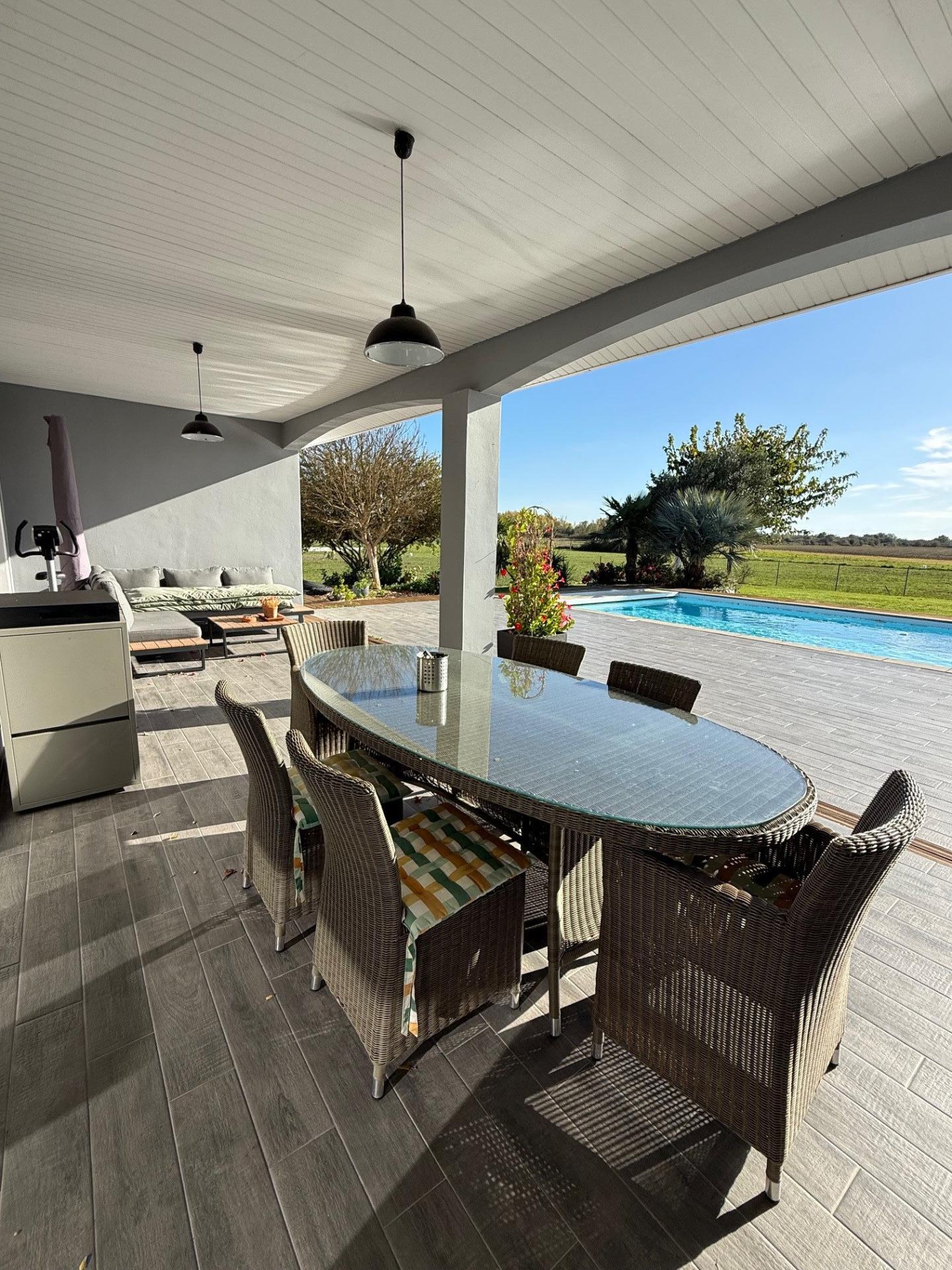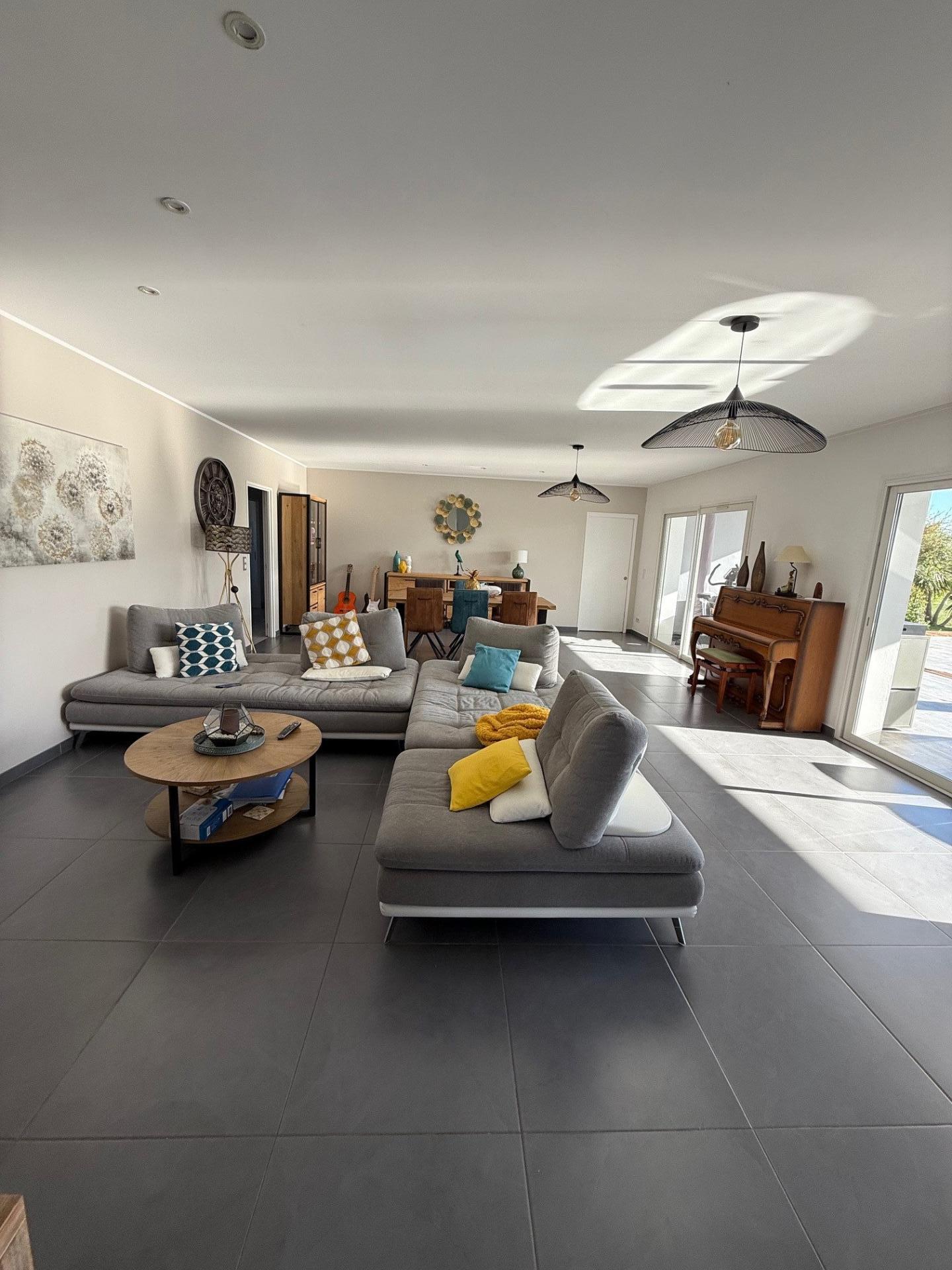 À la recherche d’un lieu unique conjuguant confort, espace et panorama d’exception ? Laissez-vous séduire par cette charmante villa de plain-pied de 170 m², dotée d’une vue imprenable sur les Pyrénées, où chaque détail a été pensé pour vous offrir une vraie qualité de vie. Dès l’entrée, vous serez immédiatement conquis par l’ampleur et la luminosité de la pièce de vie de 80m². Le vaste salon-séjour-cuisine, baigné de soleil grâce à de grandes baies vitrées, s’ouvre généreusement sur une terrasse couverte de 28m², idéale pour organiser de belles réceptions entre amis ou en famille. L’ambiance fluide et chaleureuse, soulignée par un poêle à bois, invite à recevoir, partager et profiter du confort moderne dans un cadre élégant. Dans le prolongement de la pièce de vie, la suite parentale dispose de son propre dressing et d’une salle d’eau privative, garantissant intimité et tranquillité. Le coin nuit accueille trois autres chambres, ainsi qu’une salle d’eau/bain indépendante. Une grande lingerie et un garage carrelé attenant 42m² viennent compléter cet intérieur, alliant praticité et fonctionnalité au quotidien. À l’extérieur, la parcelle paysagée d’environ 1 500 m² offre un véritable havre de paix, agrémenté d’une jolie piscine. Profitez d’un environnement verdoyant, sans vis-à-vis, avec vue sur la chaîne des Pyrénées par temps dégagé et la nature environnante. Un cadre rare, propice à la détente et à l’évasion. Une dépendance de 40m², joliment aménagée pour recevoir ou travailler ajoute encore plus de confort pour ce bien. Contactez-moi dès aujourd’hui pour organiser une visite et préparez-vous au coup de cœur de cette maison à l’état impeccable qui n’attend plus que vous ! Point fort : Classée A, pour sa bonne performance énergétique ! Chauffage au sol par pompe à chaleur.